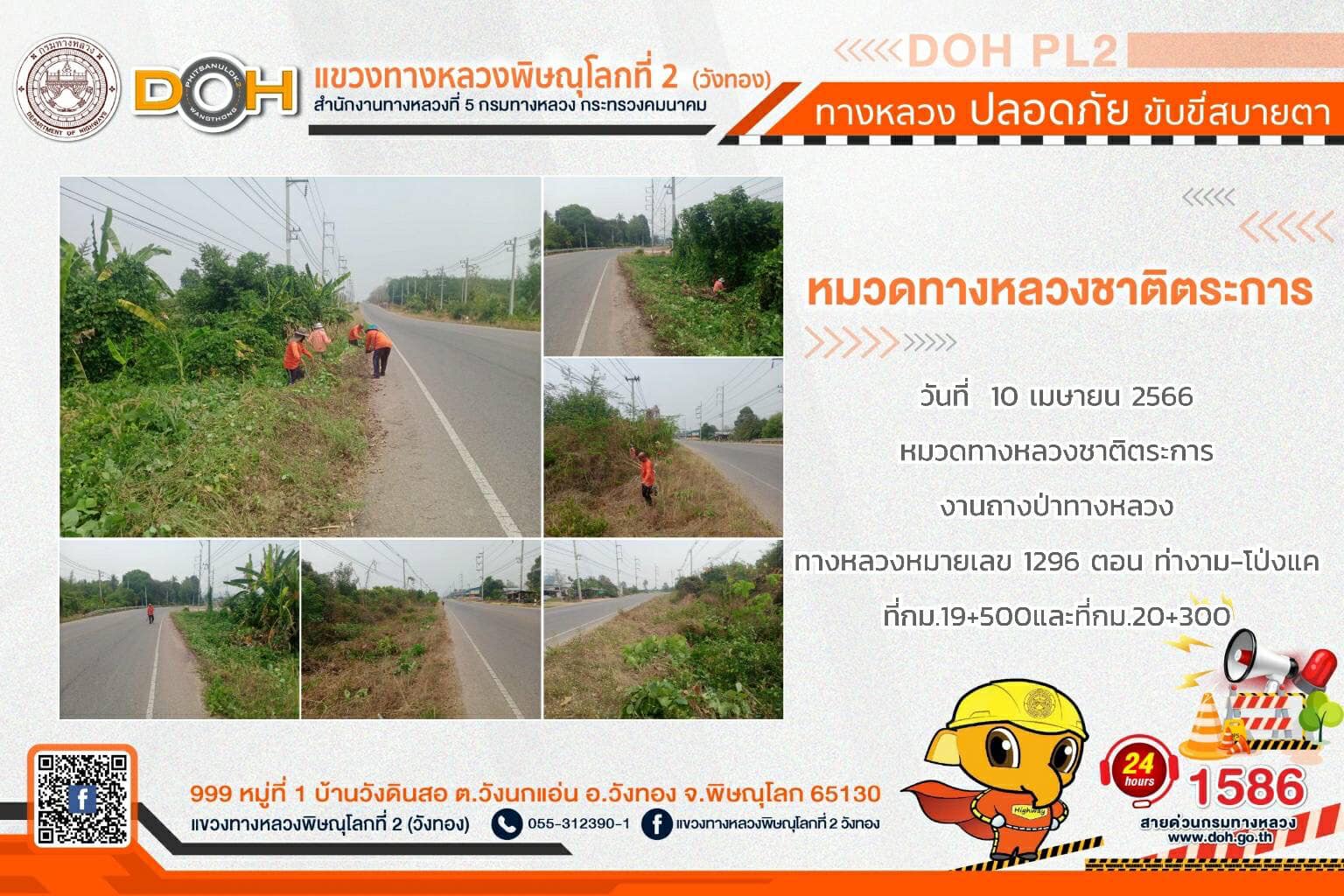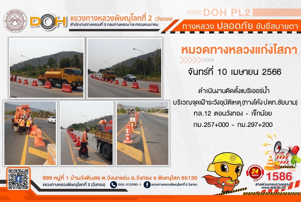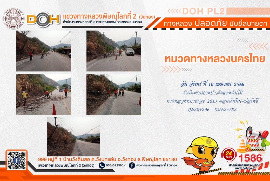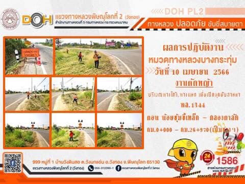 การปฏิบัติงานของ หมวดทางหลวง และ หน่วยงานในสังกัด เพื่ออำนวยความสะดวก และปลอดภัยให้กับประชาชนผู้ใช้เส้นทาง ประจำ วันจันทร์ที่ 10 เมษายน 2566