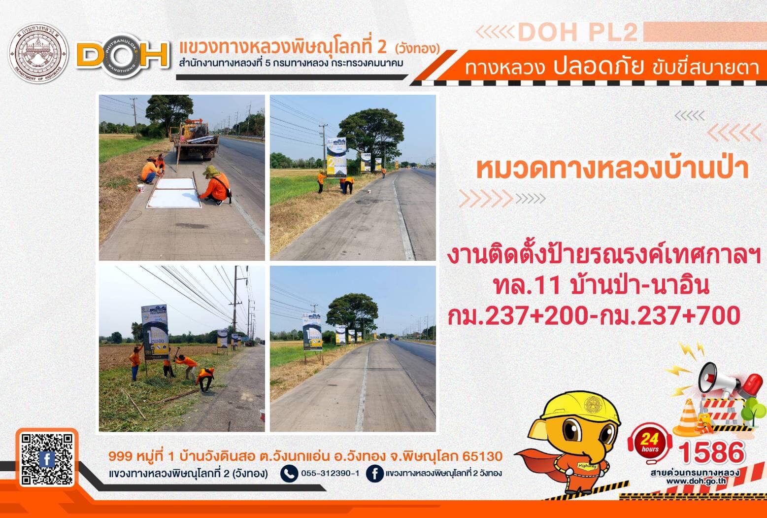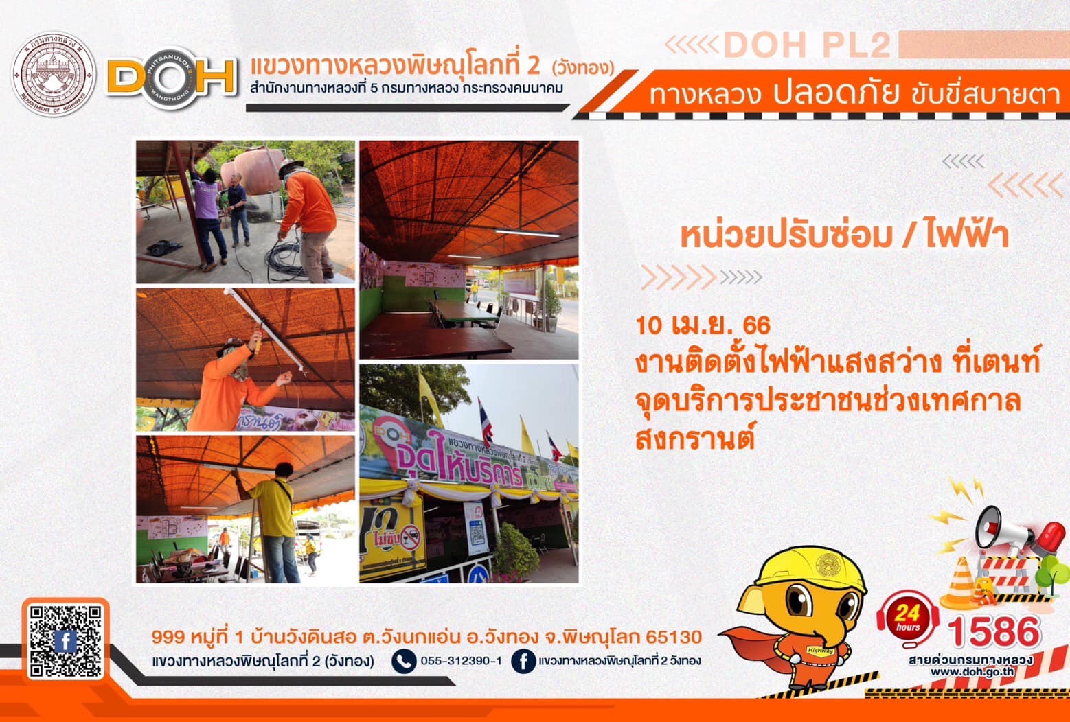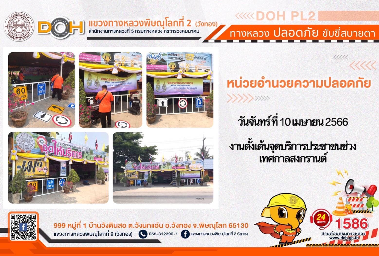 การปฏิบัติงานของ หมวดทางหลวง และ หน่วยงานในสังกัด เพื่ออำนวยความสะดวก และปลอดภัยให้กับประชาชนผู้ใช้เส้นทาง ประจำ วันจันทร์ที่ 10 เมษายน 2566