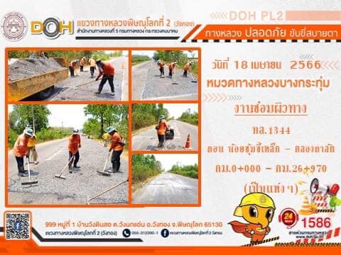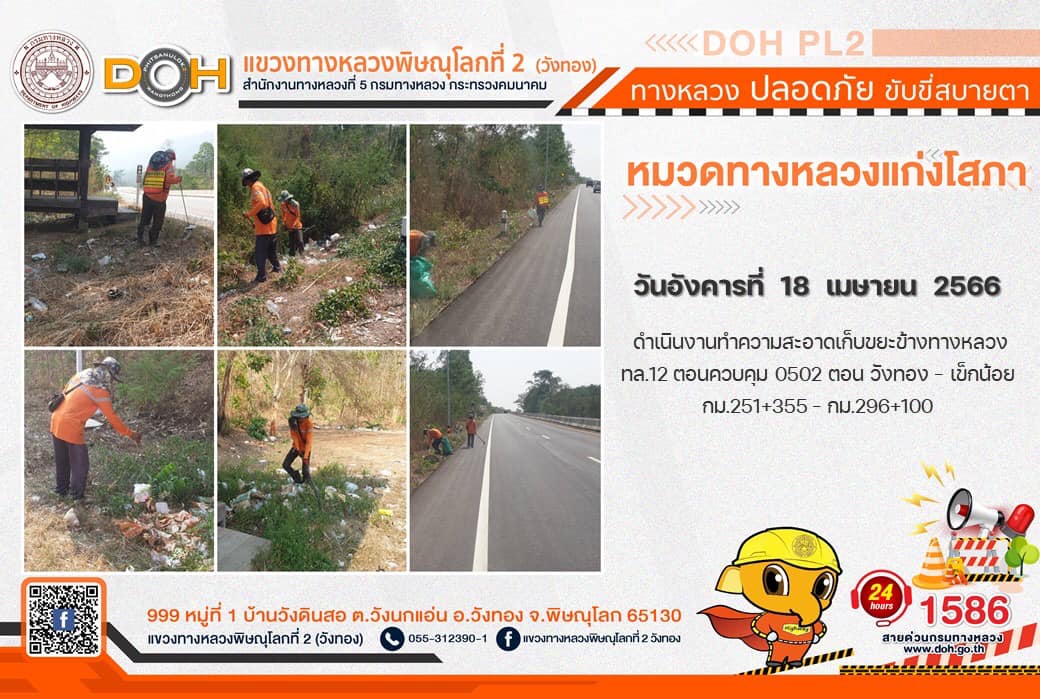 การปฏิบัติงานของ หมวดทางหลวง และ หน่วยงานในสังกัด เพื่ออำนวยความสะดวก และปลอดภัยให้กับประชาชนผู้ใช้เส้นทาง ประจำ วันอังคารที่ 18 เมษายน 2566
