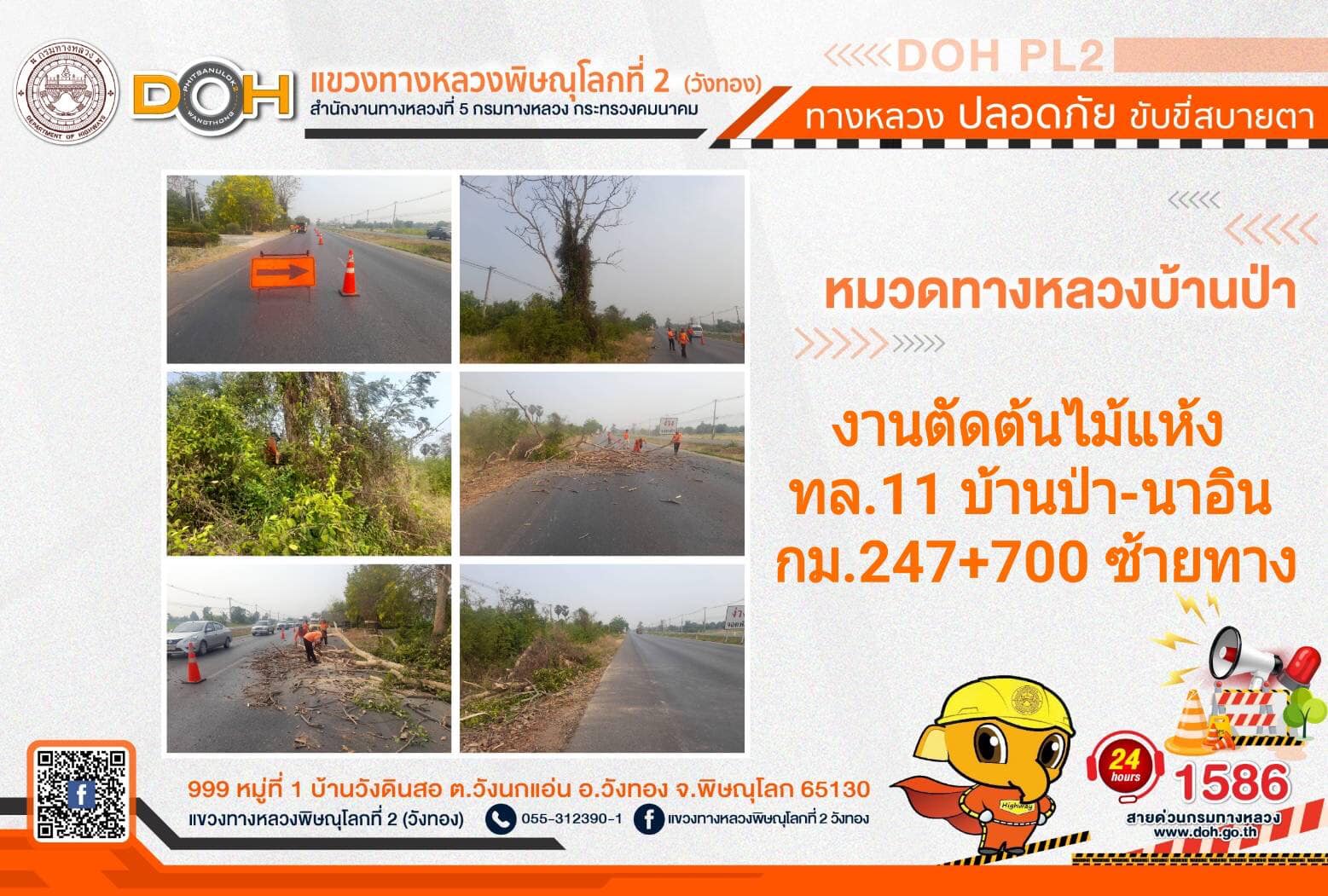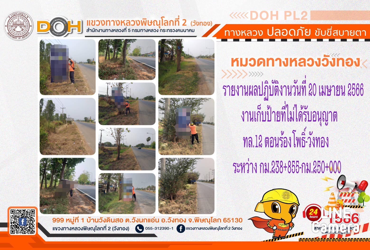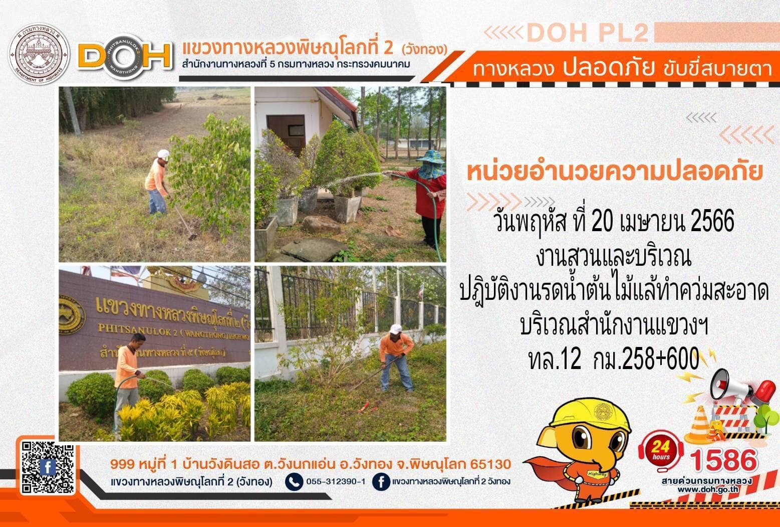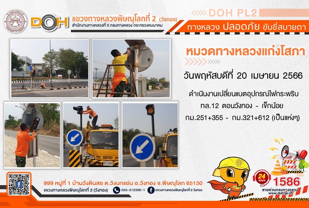 การปฏิบัติงานของ หมวดทางหลวง และ หน่วยงานในสังกัด เพื่ออำนวยความสะดวก และปลอดภัยให้กับประชาชนผู้ใช้เส้นทาง ประจำ วันพฤหัสบดีที่ 20 เมษายน 2566