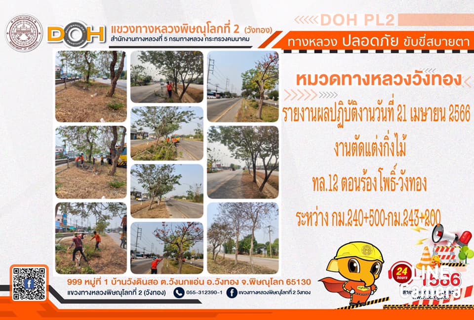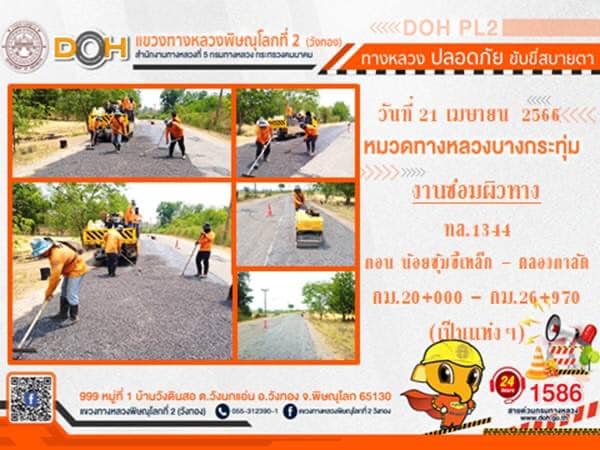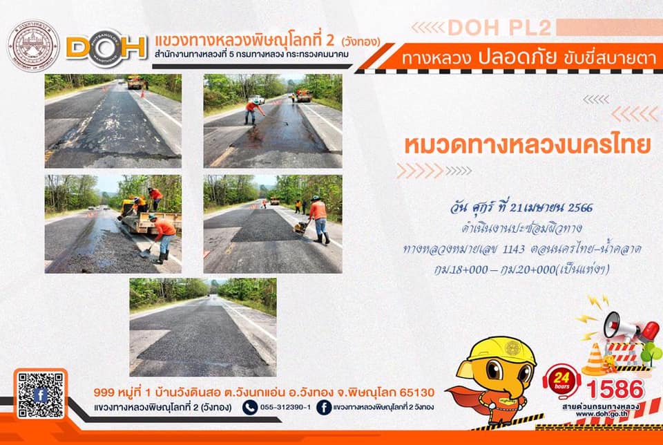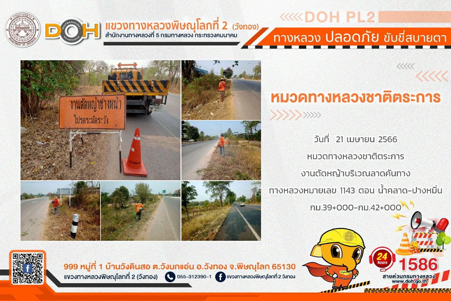 การปฏิบัติงานของ หมวดทางหลวง และ หน่วยงานในสังกัด เพื่ออำนวยความสะดวก และปลอดภัยให้กับประชาชนผู้ใช้เส้นทาง ประจำ วันศุกร์ที่ 21 เมษายน 2566