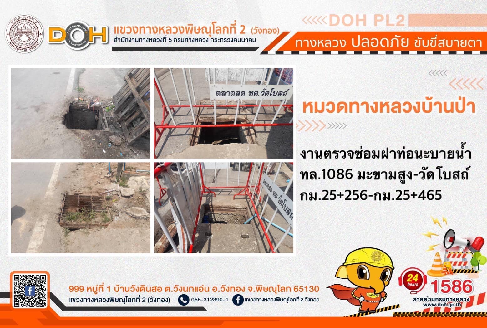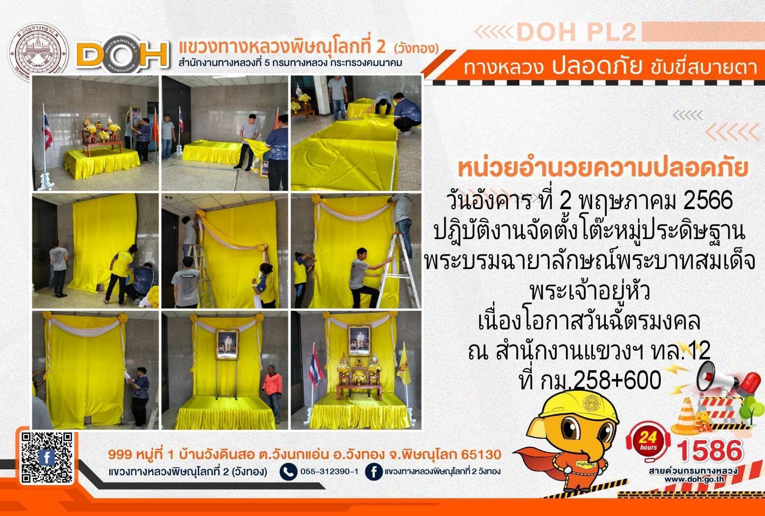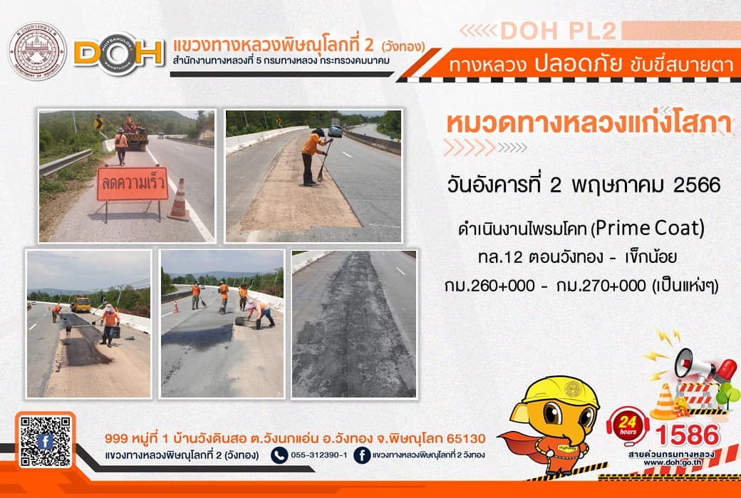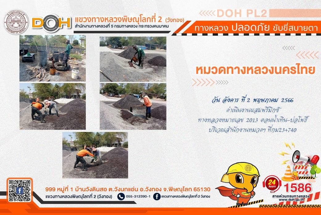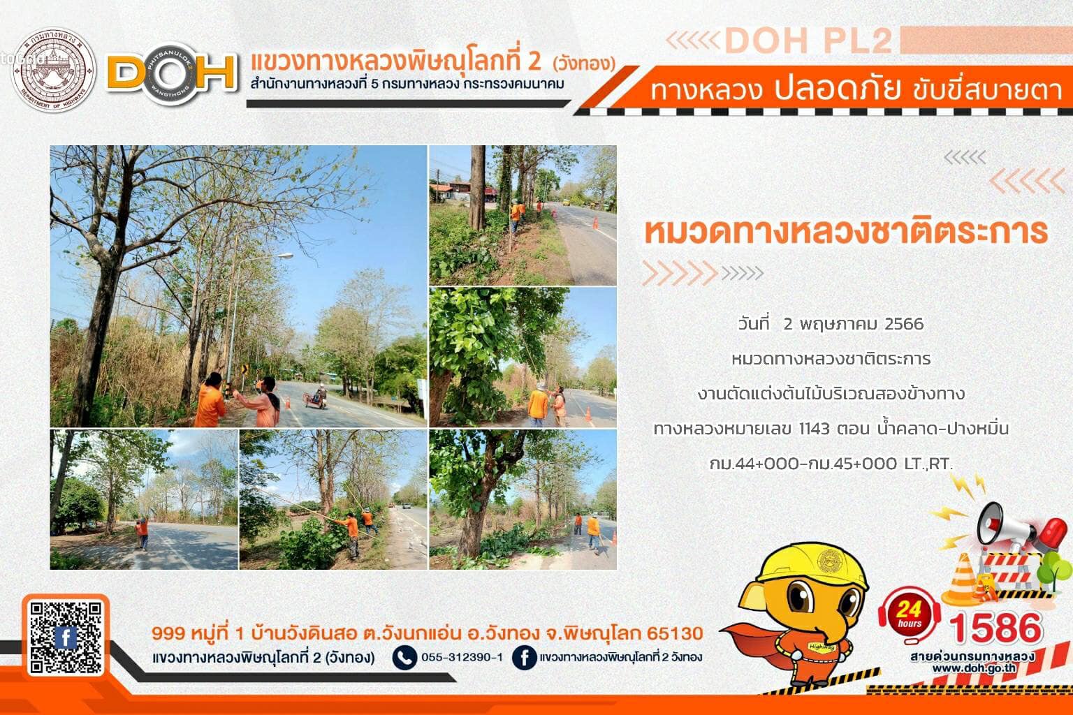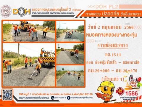 การปฏิบัติงานของ หมวดทางหลวง และ หน่วยงานในสังกัด เพื่ออำนวยความสะดวก และปลอดภัยให้กับประชาชนผู้ใช้เส้นทาง ประจำ วันอังคารที่ 2 พฤษภาคม 2566
