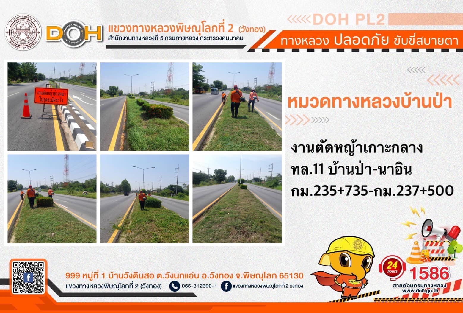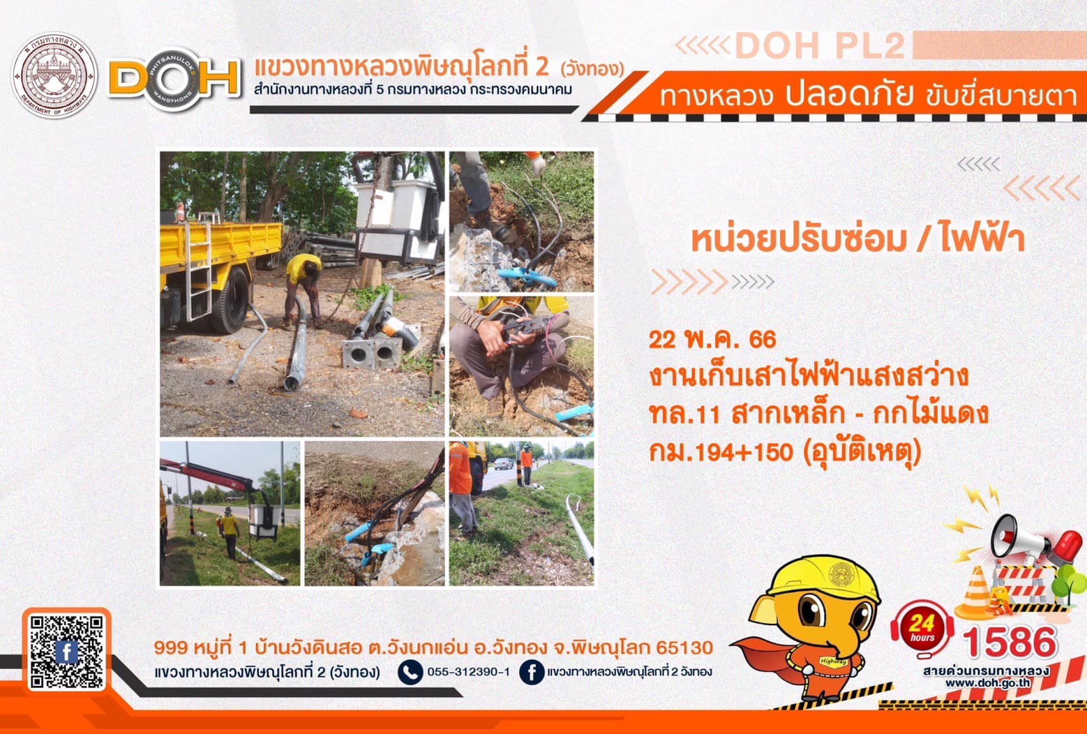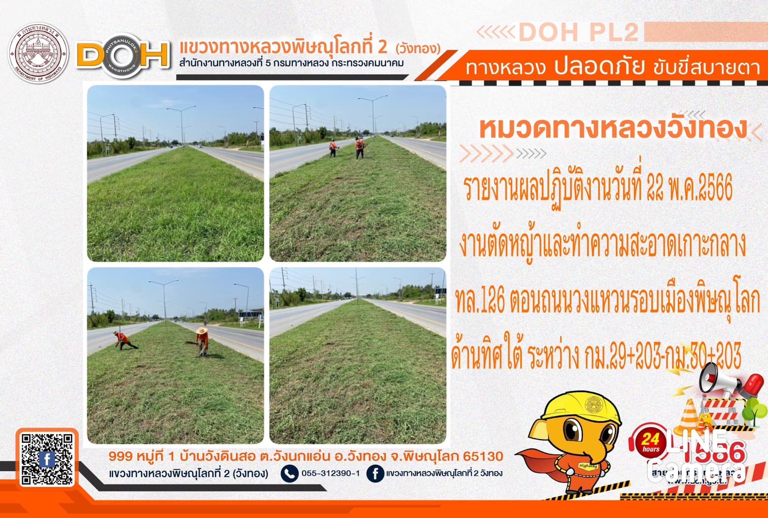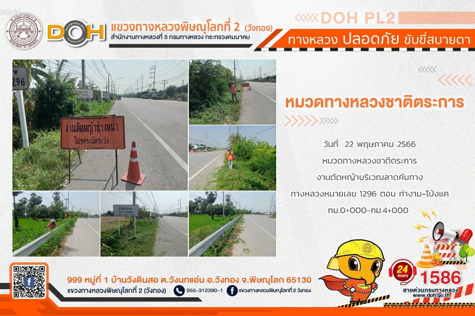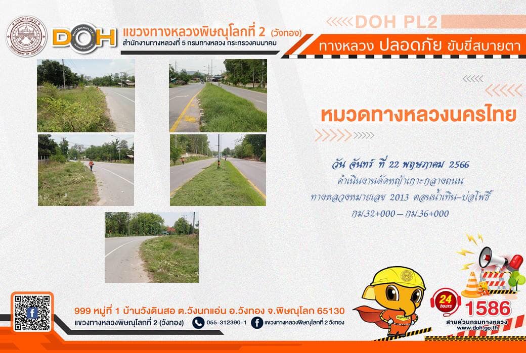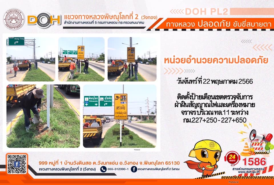 การปฏิบัติงานของ หมวดทางหลวง และ หน่วยงานในสังกัด เพื่ออำนวยความสะดวก และปลอดภัยให้กับประชาชนผู้ใช้เส้นทาง ประจำ วันจันทร์ที่ 22 พฤษภาคม 2566