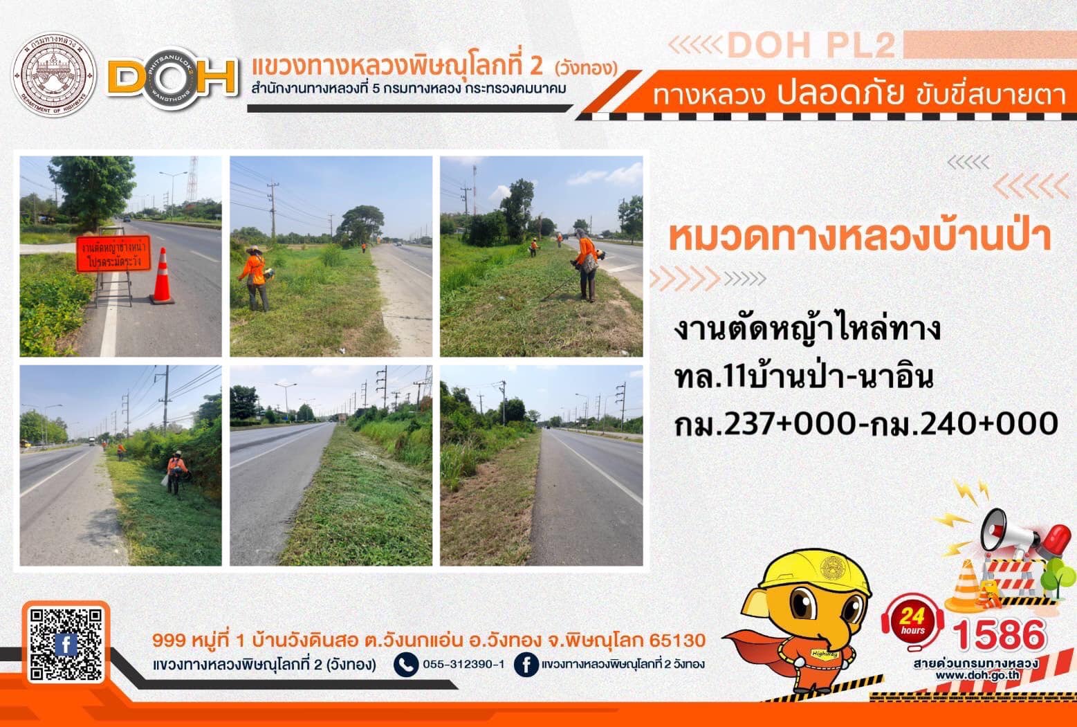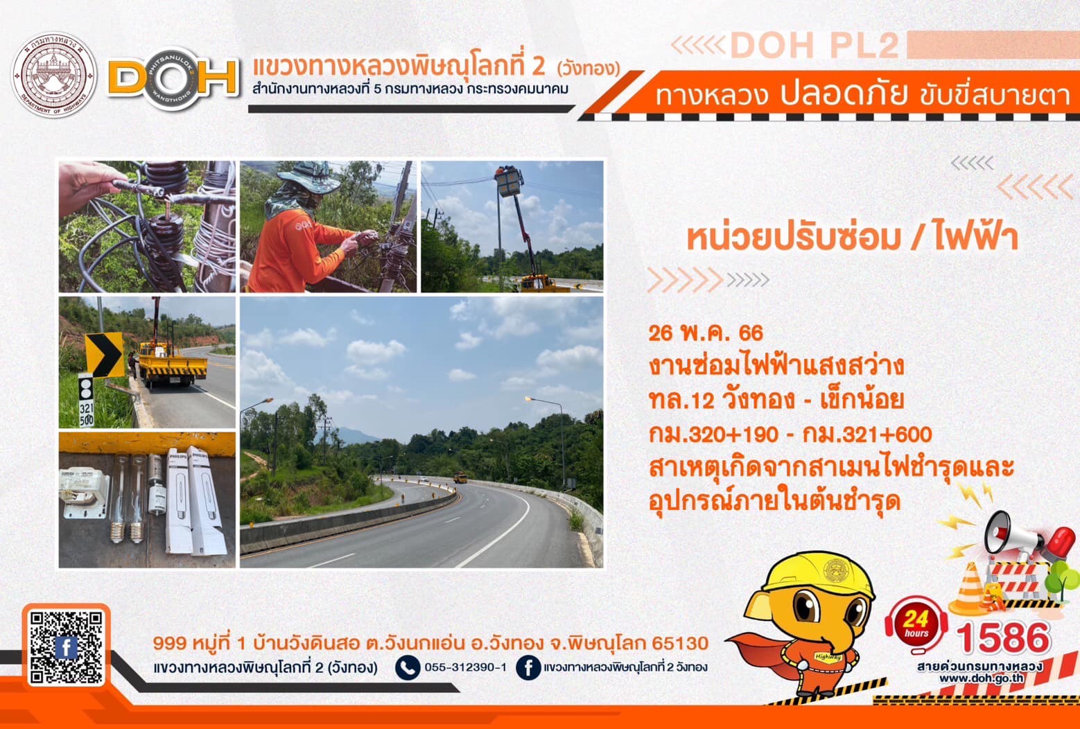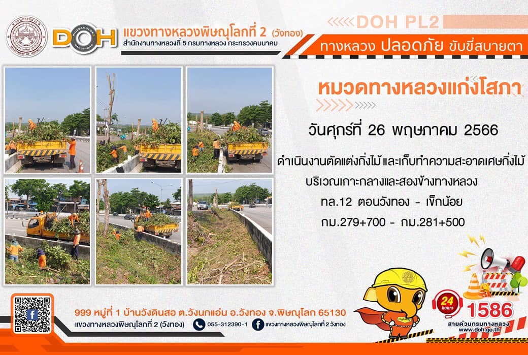 การปฏิบัติงานของ หมวดทางหลวง และ หน่วยงานในสังกัด เพื่ออำนวยความสะดวก และปลอดภัยให้กับประชาชนผู้ใช้เส้นทาง ประจำ วันศุกร์ที่ 26 พฤษภาคม 2566