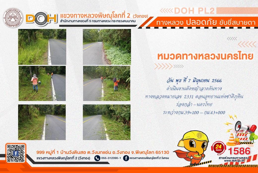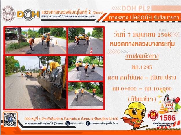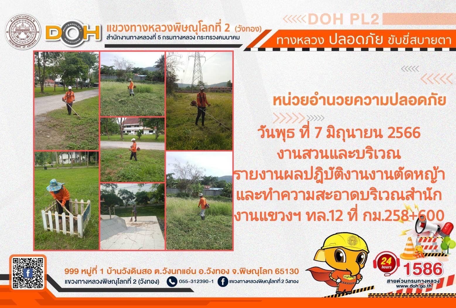 การปฏิบัติงานของ หมวดทางหลวง และ หน่วยงานในสังกัด เพื่ออำนวยความสะดวก และปลอดภัยให้กับประชาชนผู้ใช้เส้นทาง ประจำ วันพุธที่ 7 มิถุนายน 2566