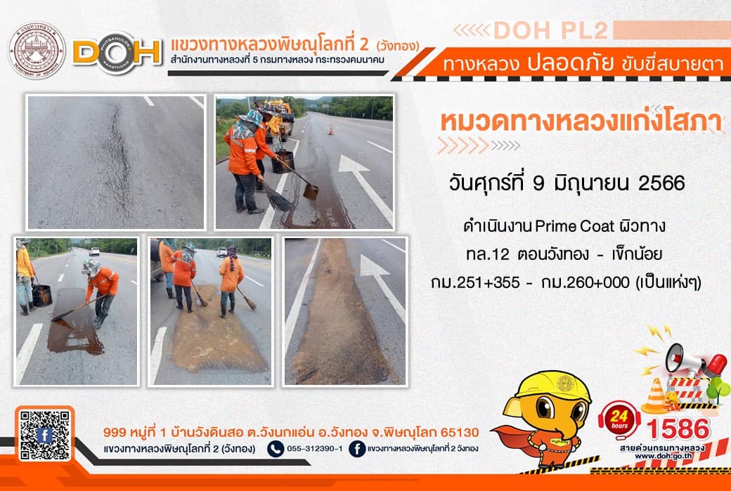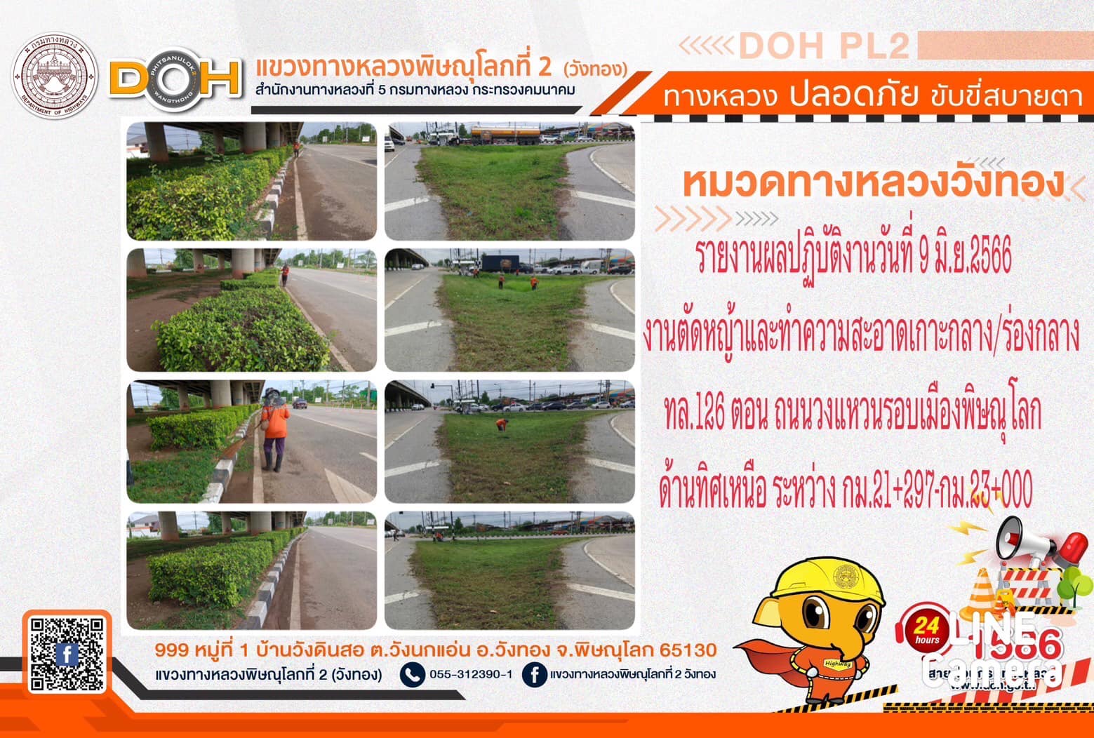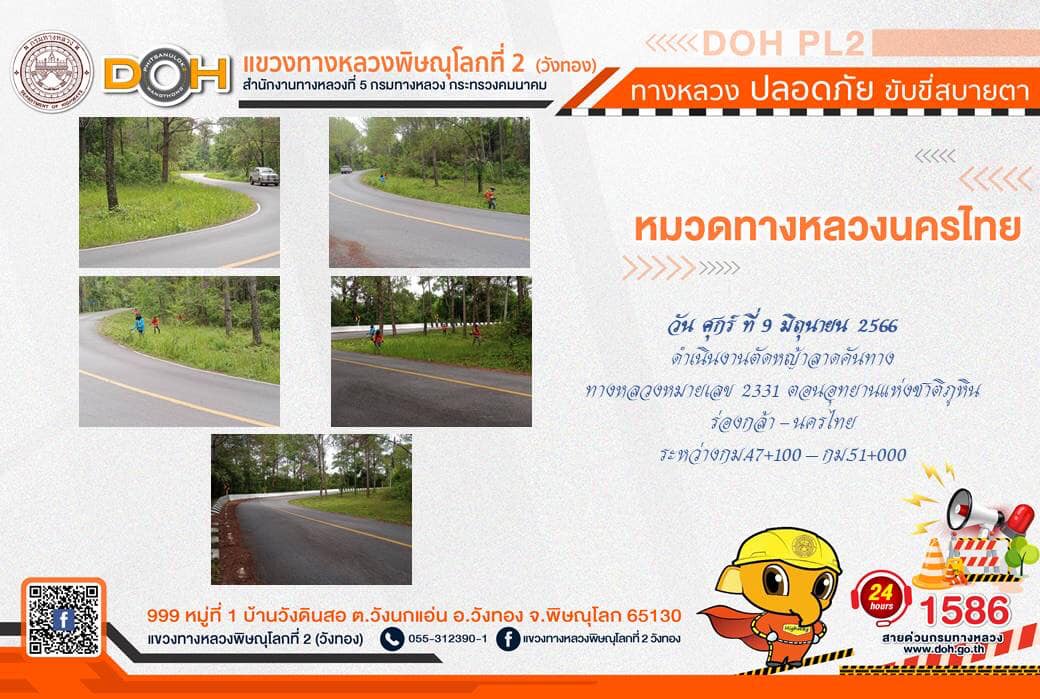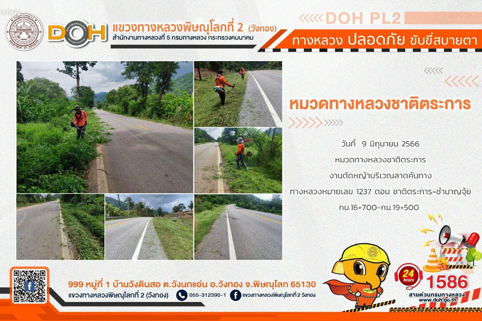 การปฏิบัติงานของ หมวดทางหลวง และ หน่วยงานในสังกัด เพื่ออำนวยความสะดวก และปลอดภัยให้กับประชาชนผู้ใช้เส้นทาง ประจำ วันศุกร์ที่ 9 มิถุนายน 2566