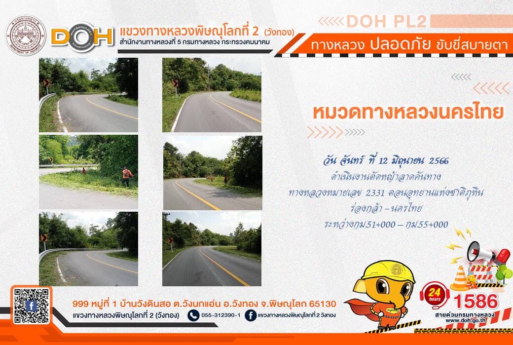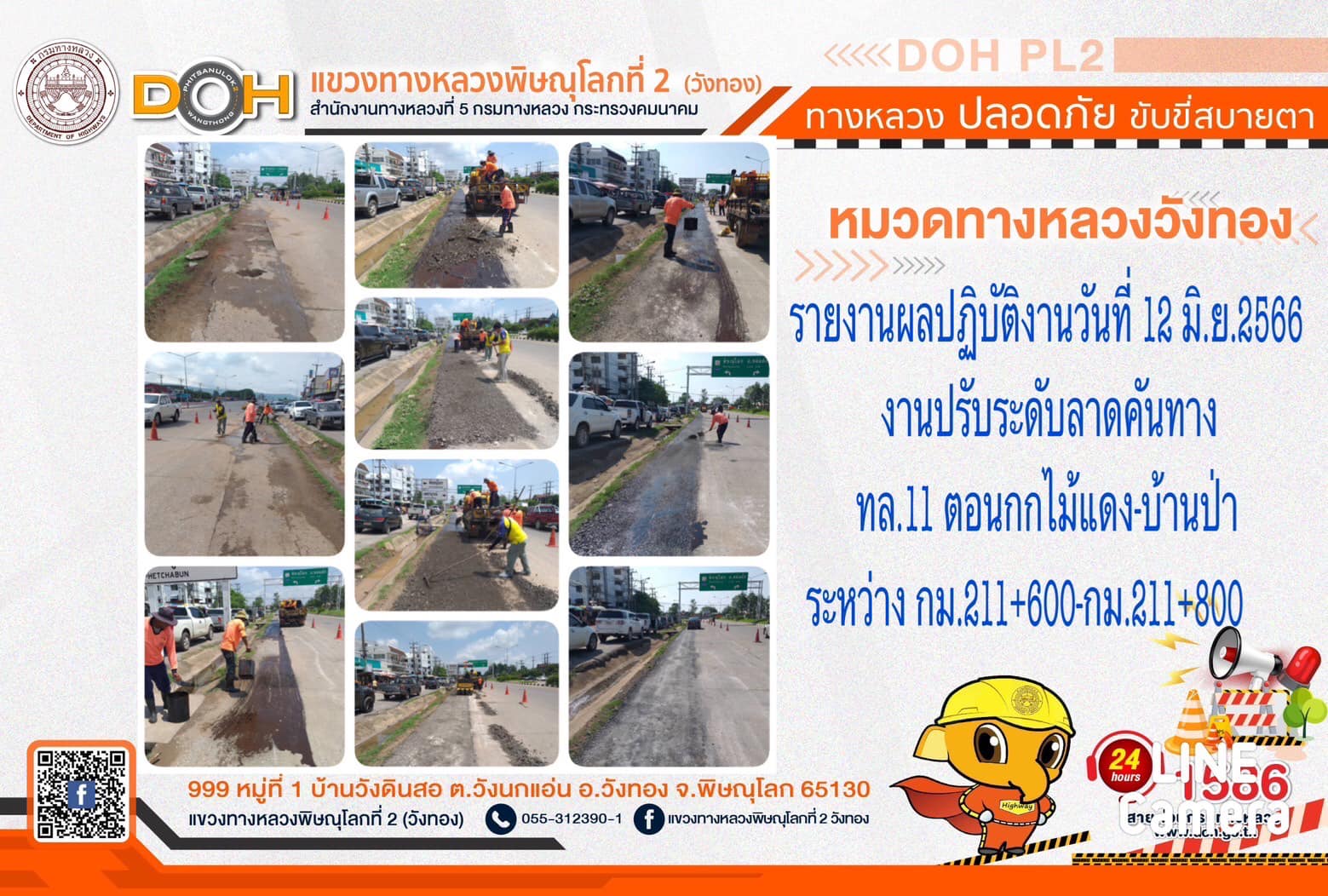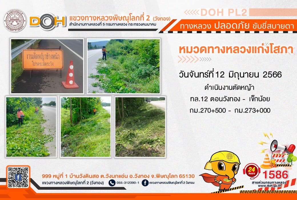 การปฏิบัติงานของ หมวดทางหลวง และ หน่วยงานในสังกัด เพื่ออำนวยความสะดวก และปลอดภัยให้กับประชาชนผู้ใช้เส้นทาง ประจำ วันจันทร์ที่ 12 มิถุนายน 2566