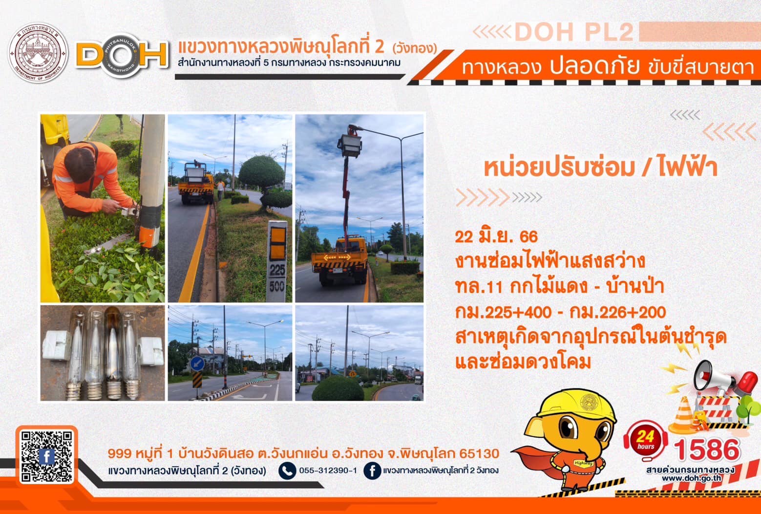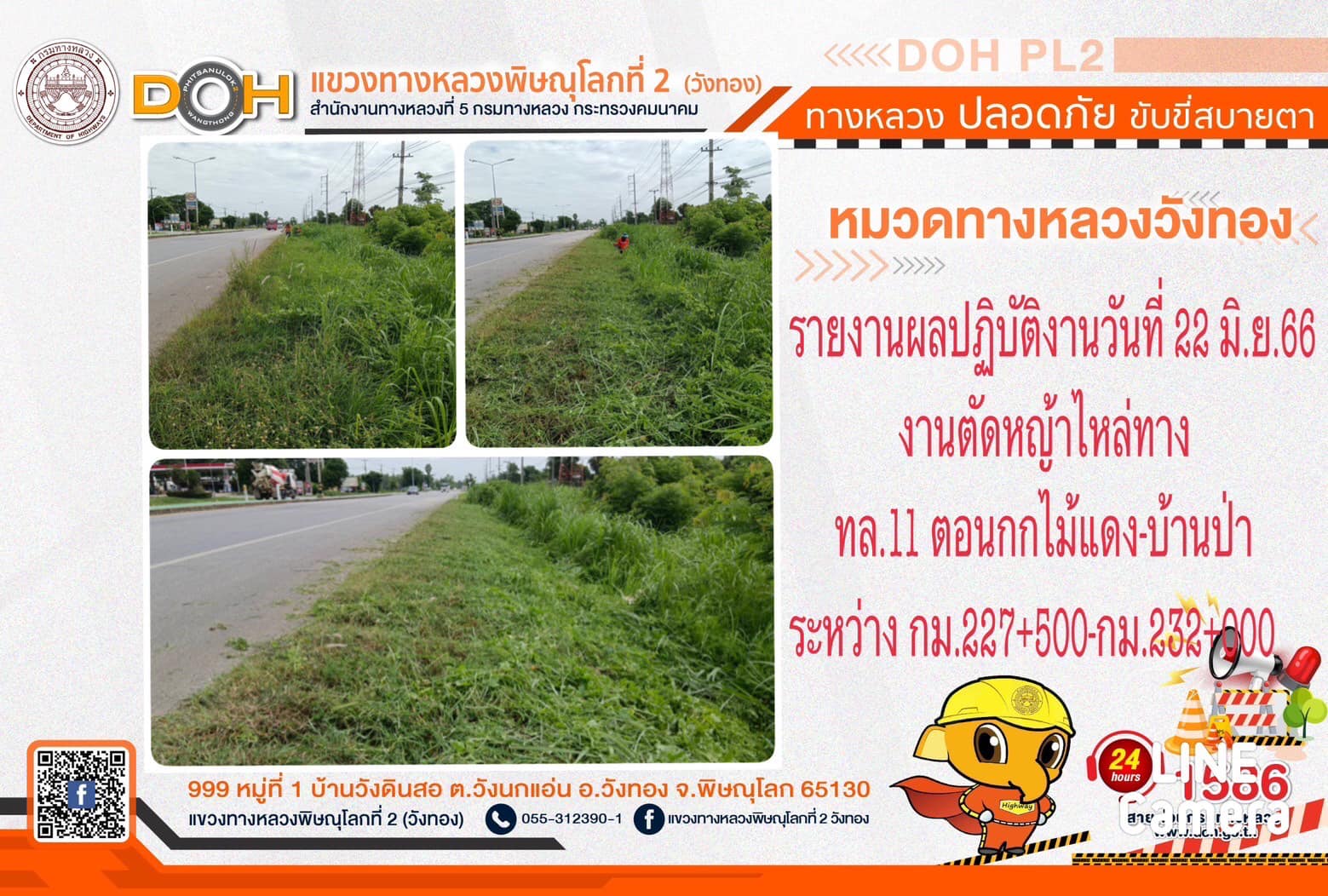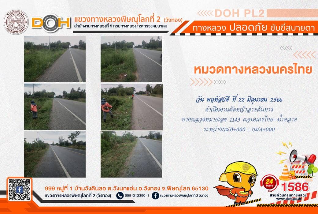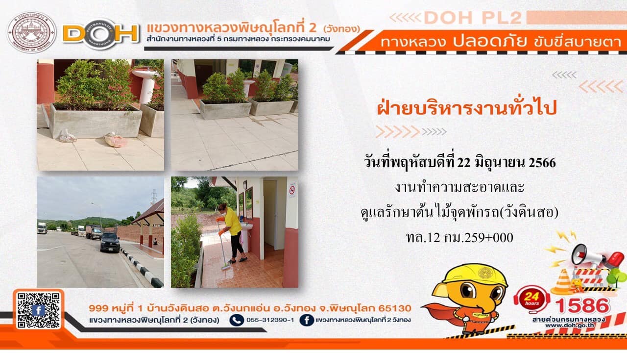 การปฏิบัติงานของ หมวดทางหลวง และ หน่วยงานในสังกัด เพื่ออำนวยความสะดวก และปลอดภัยให้กับประชาชนผู้ใช้เส้นทาง ประจำ วันพฤหัสบดีที่ 22 มิถุนายน 2566