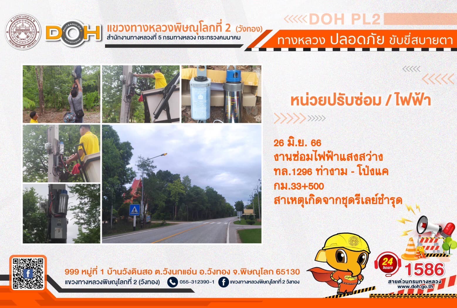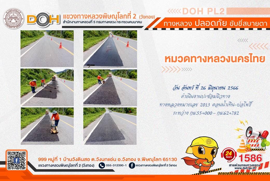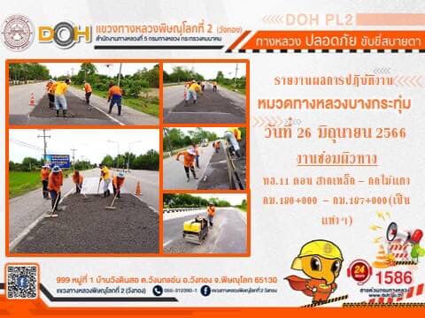 การปฏิบัติงานของ หมวดทางหลวง และ หน่วยงานในสังกัด เพื่ออำนวยความสะดวก และปลอดภัยให้กับประชาชนผู้ใช้เส้นทาง ประจำ วันจันทร์ที่ 26 มิถุนายน 2566