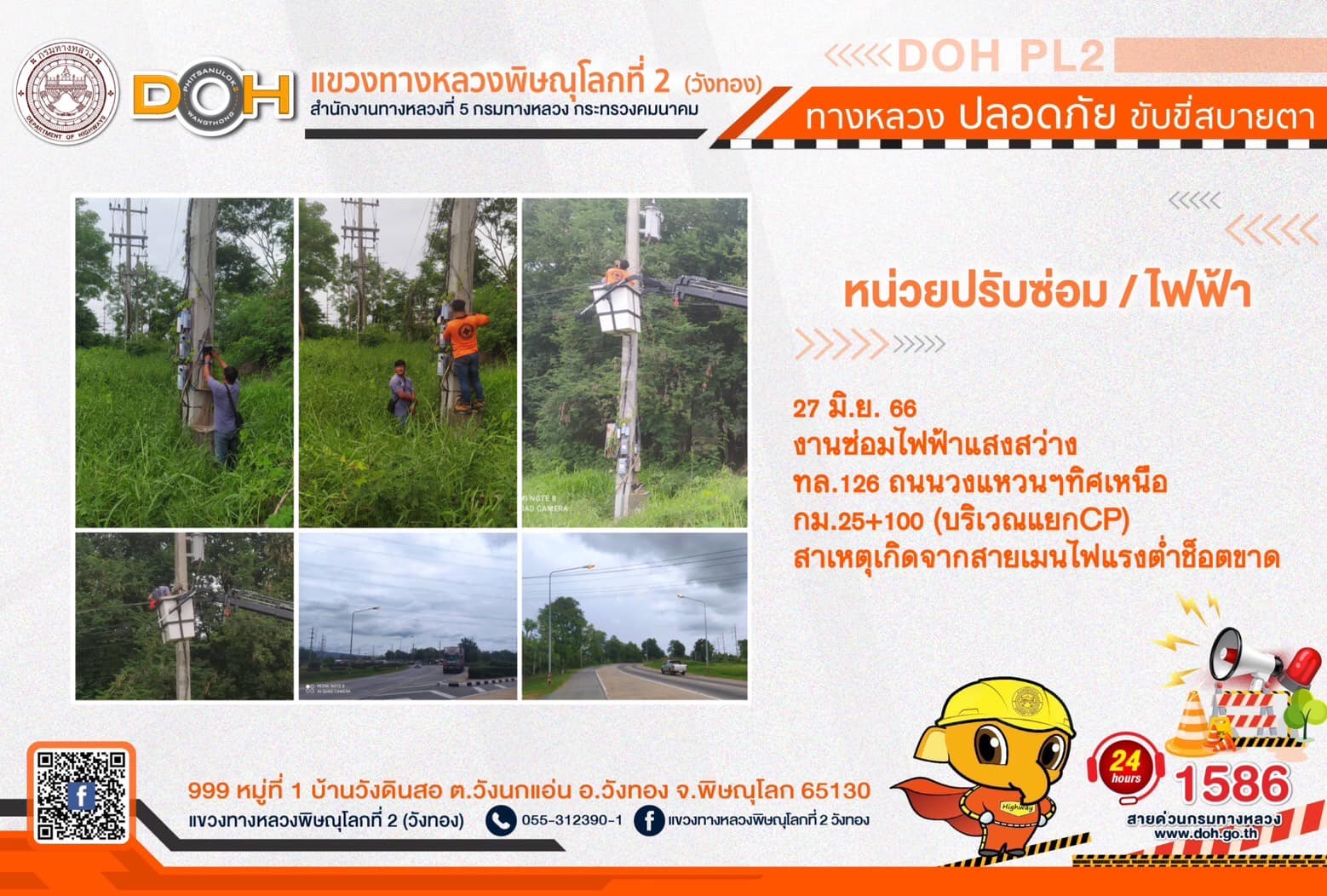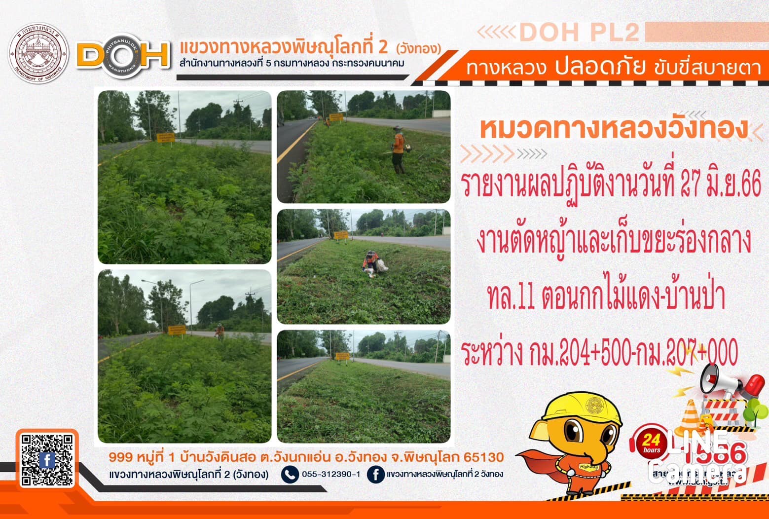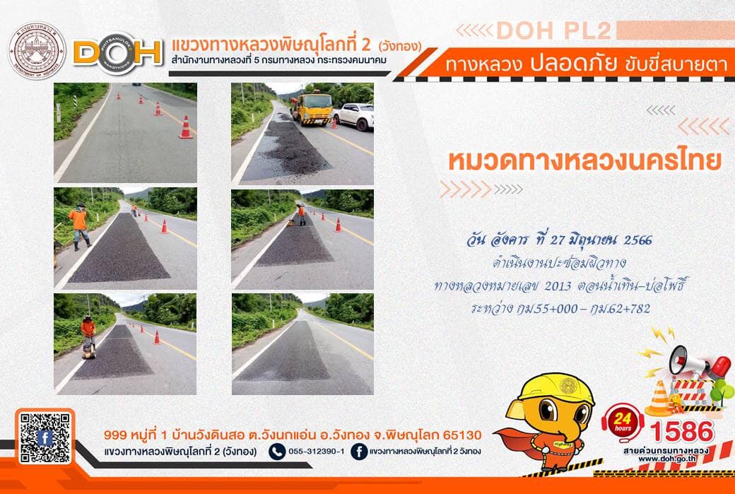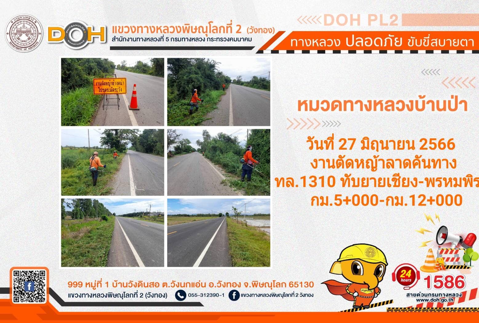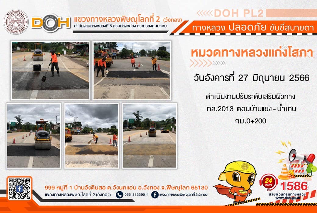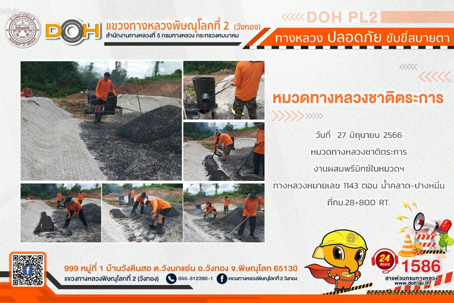 การปฏิบัติงานของ หมวดทางหลวง และ หน่วยงานในสังกัด เพื่ออำนวยความสะดวก และปลอดภัยให้กับประชาชนผู้ใช้เส้นทาง ประจำ วันอังคารที่ 27 มิถุนายน 2566