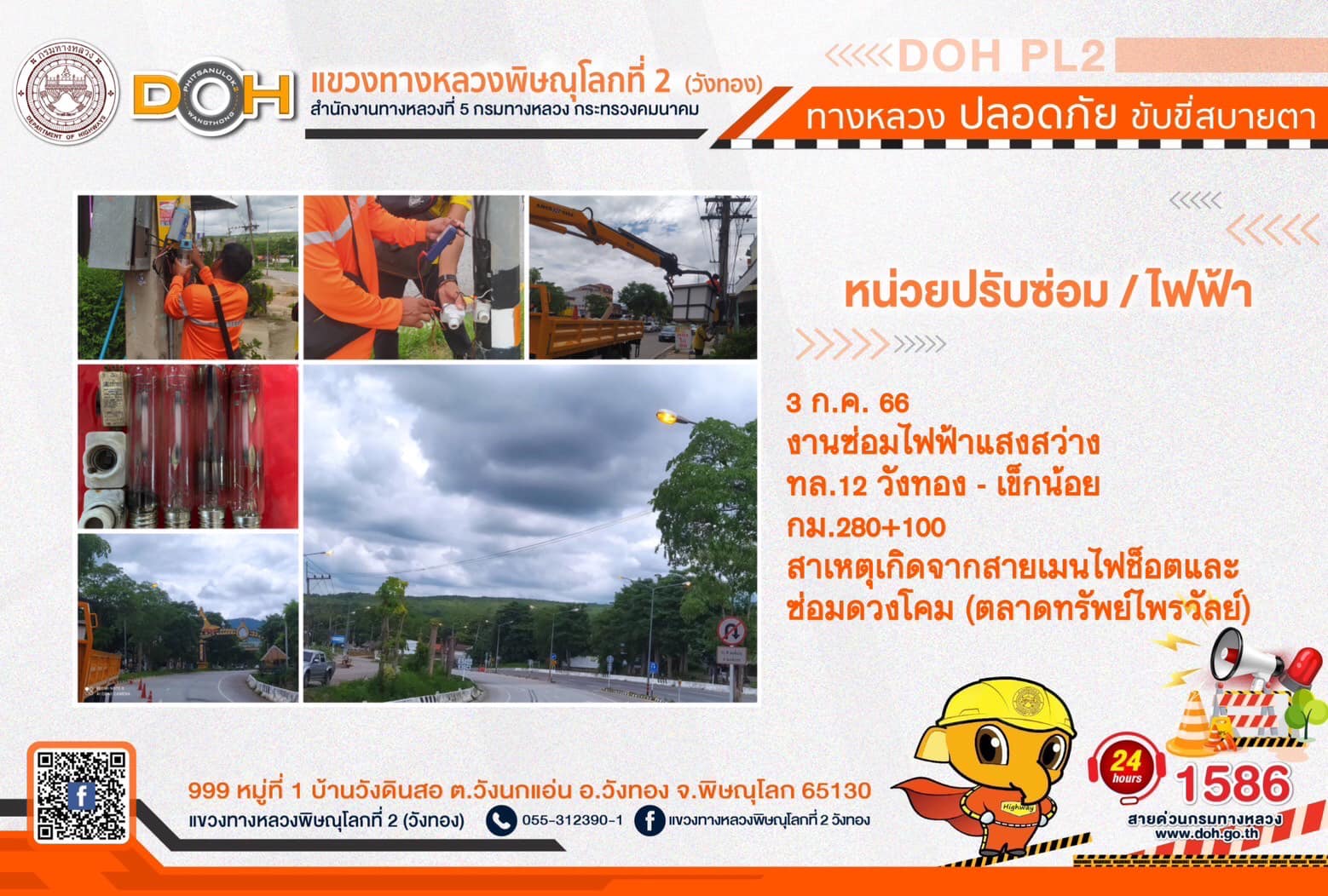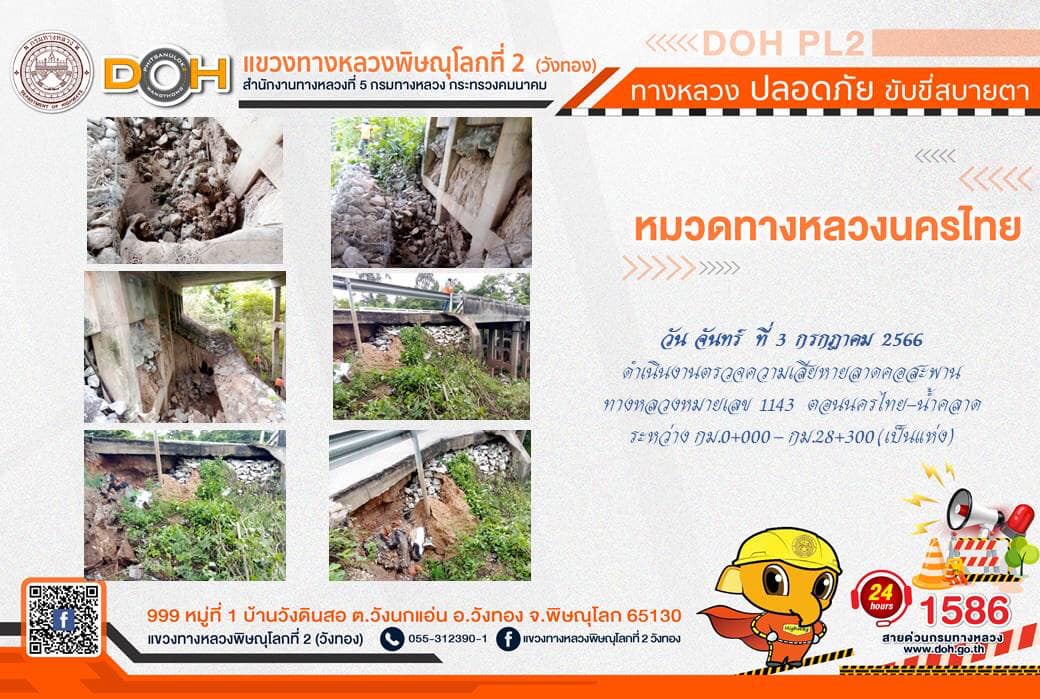 การปฏิบัติงานของ หมวดทางหลวง และ หน่วยงานในสังกัด เพื่ออำนวยความสะดวก และปลอดภัยให้กับประชาชนผู้ใช้เส้นทาง ประจำ วันจันทร์ที่ 3 กรกฎาคม 2566