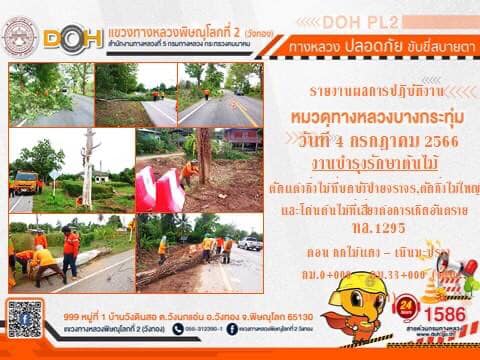 การปฏิบัติงานของ หมวดทางหลวง และ หน่วยงานในสังกัด เพื่ออำนวยความสะดวก และปลอดภัยให้กับประชาชนผู้ใช้เส้นทาง ประจำ วันอังคารที่ 4 กรกฎาคม 2566