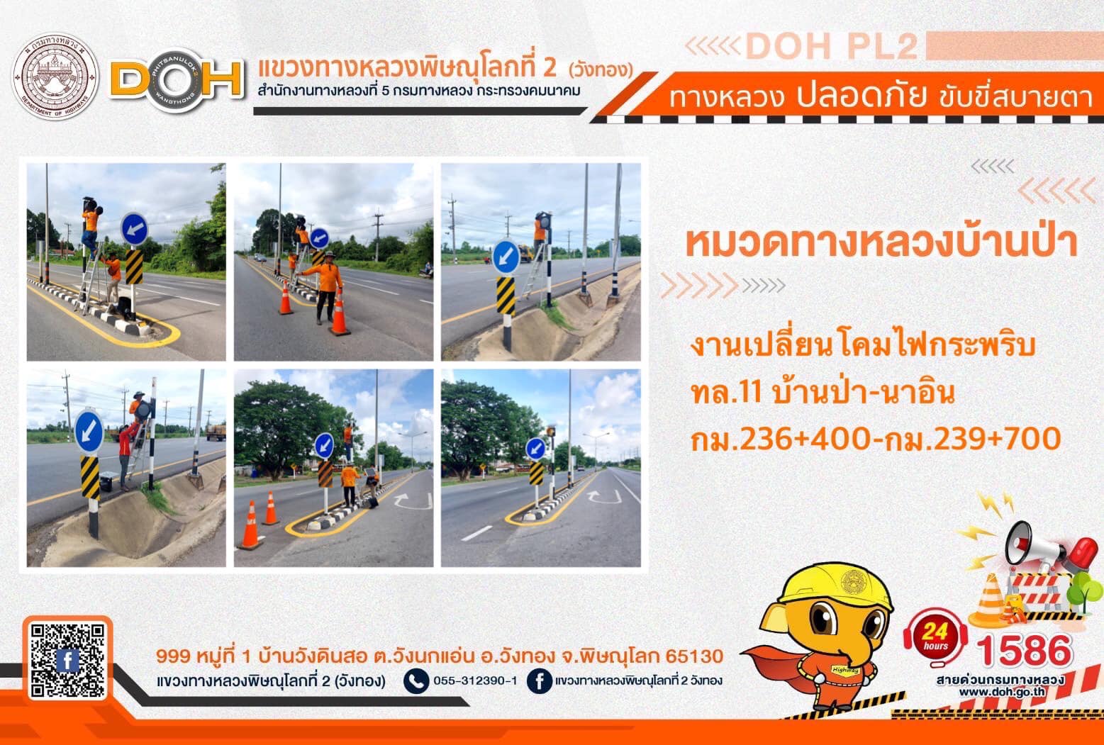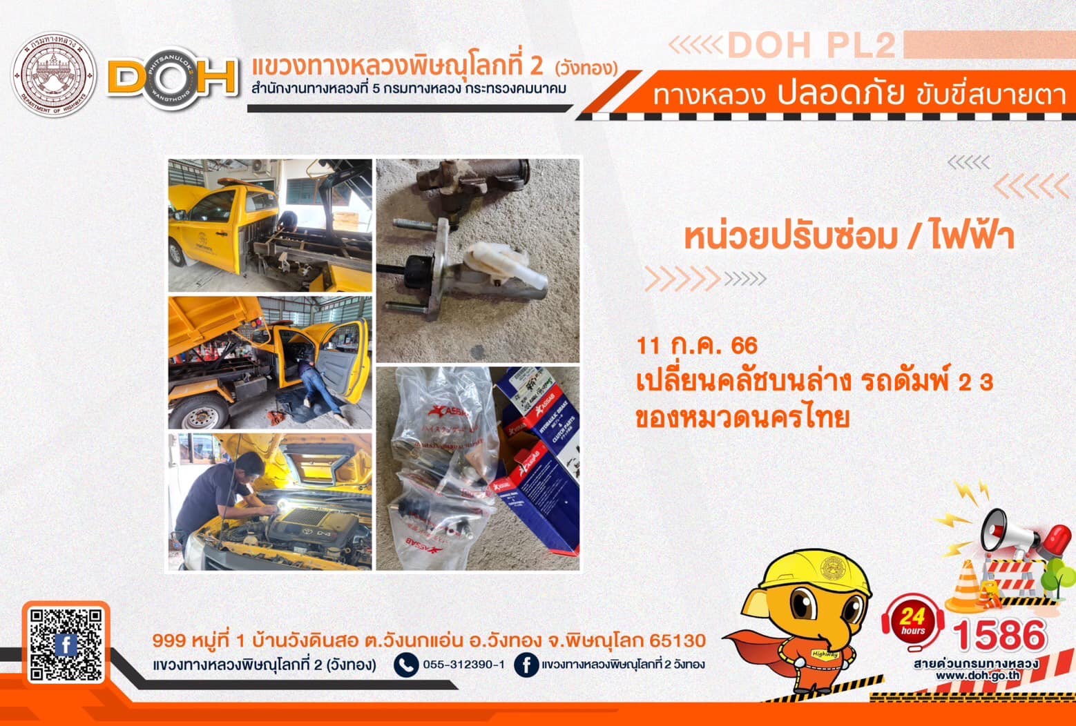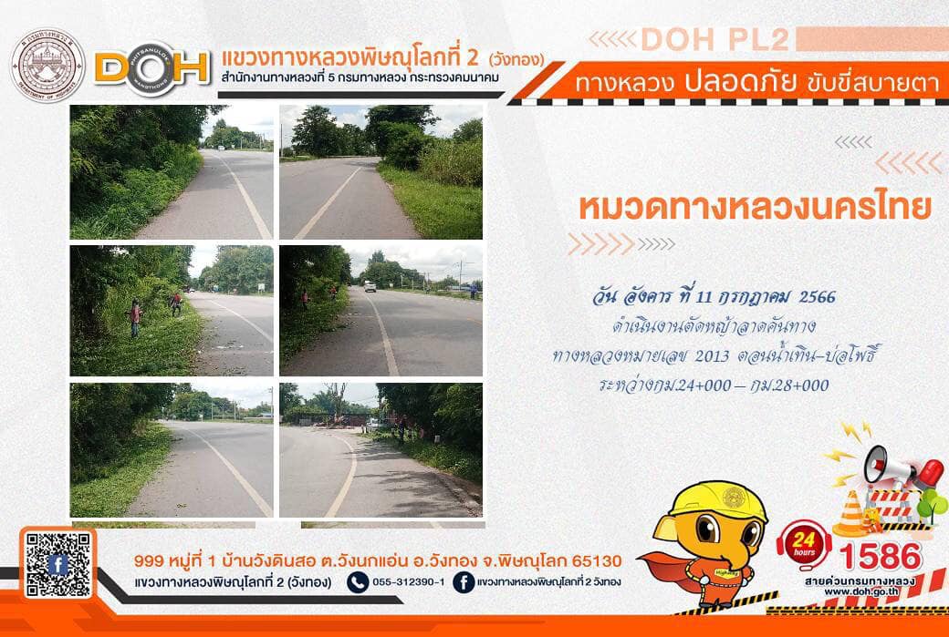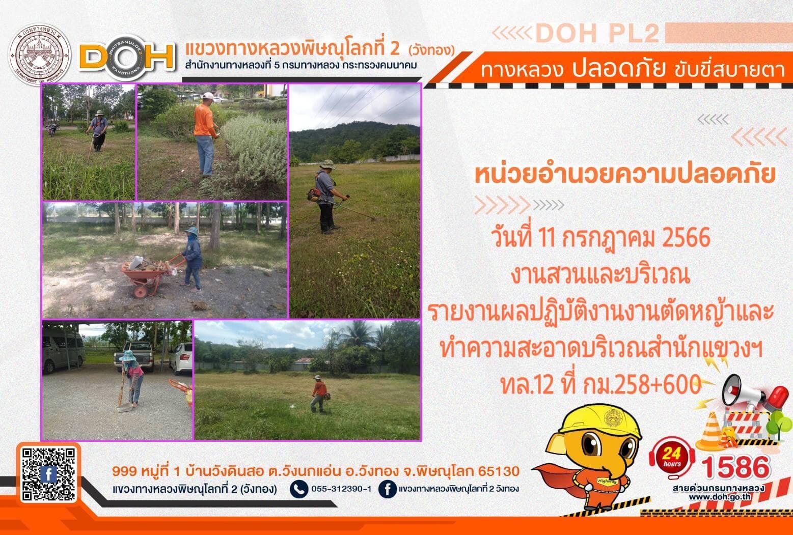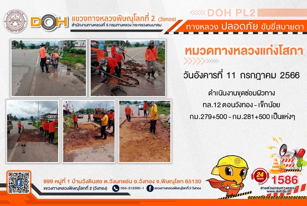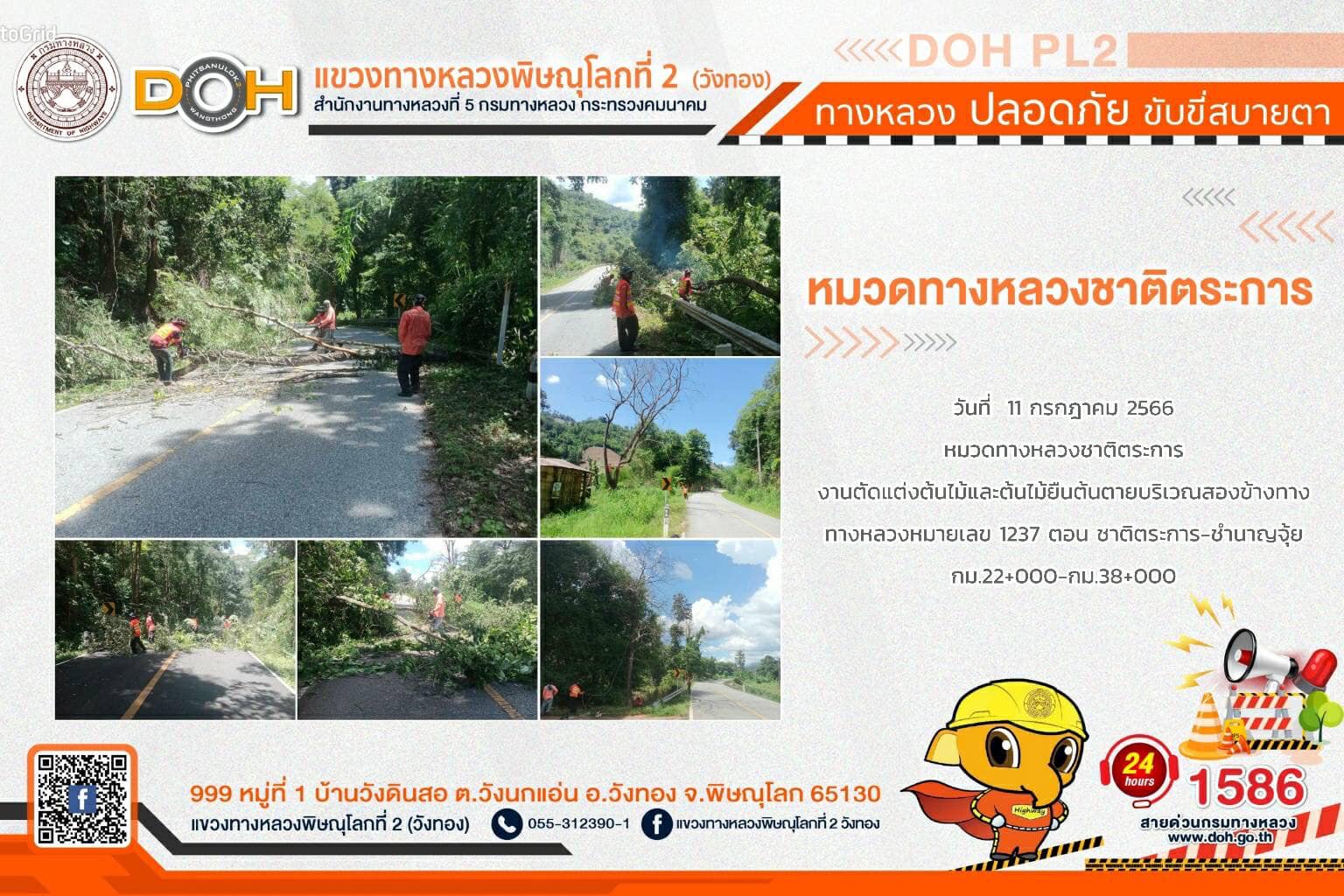 การปฏิบัติงานของ หมวดทางหลวง และ หน่วยงานในสังกัด เพื่ออำนวยความสะดวก และปลอดภัยให้กับประชาชนผู้ใช้เส้นทาง ประจำ วันอังคารที่ 11 กรกฎาคม 2566
