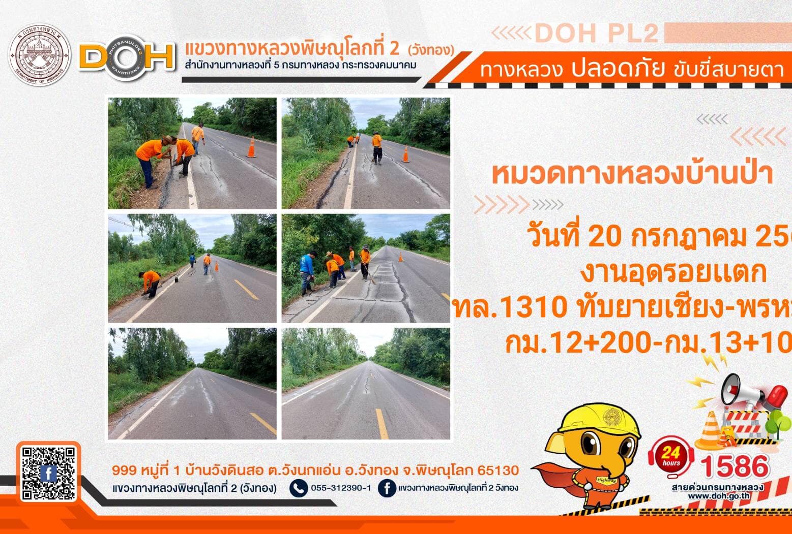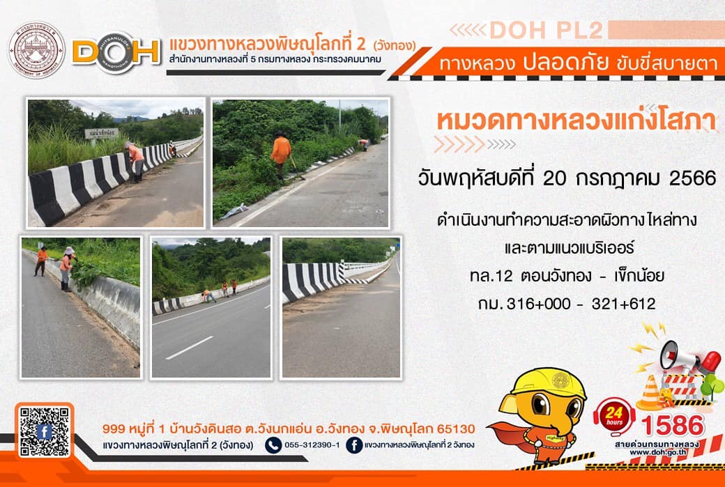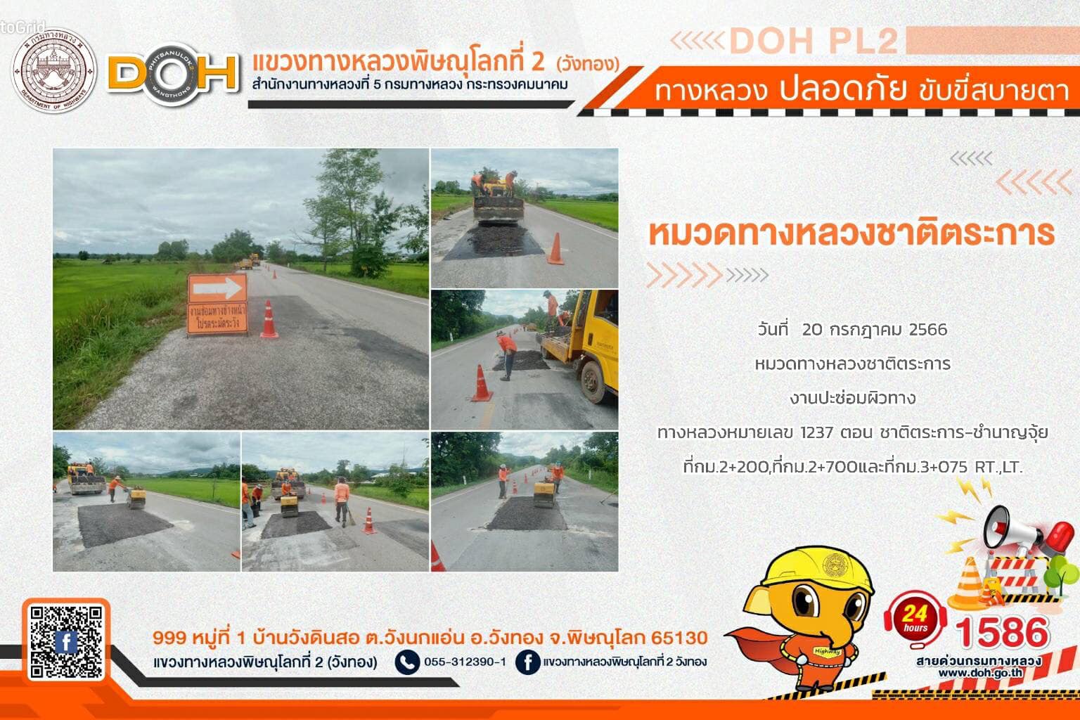 การปฏิบัติงานของ หมวดทางหลวง และ หน่วยงานในสังกัด เพื่ออำนวยความสะดวก และปลอดภัยให้กับประชาชนผู้ใช้เส้นทาง ประจำ วันพฤหัสบดีที่ 20 กรกฎาคม 2566