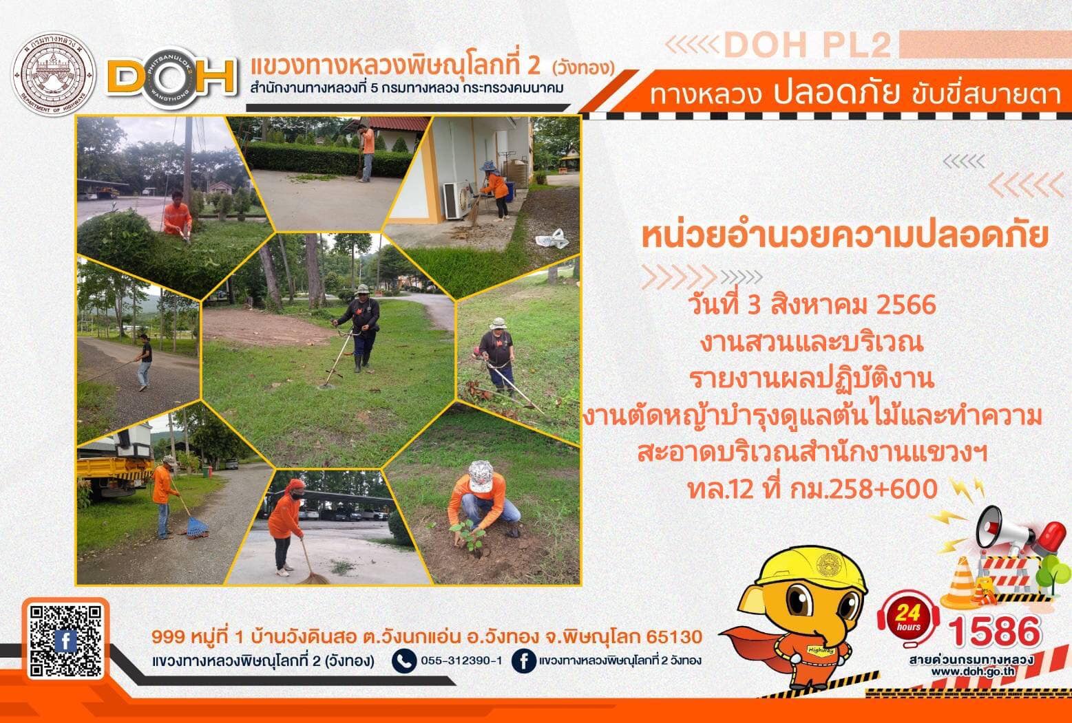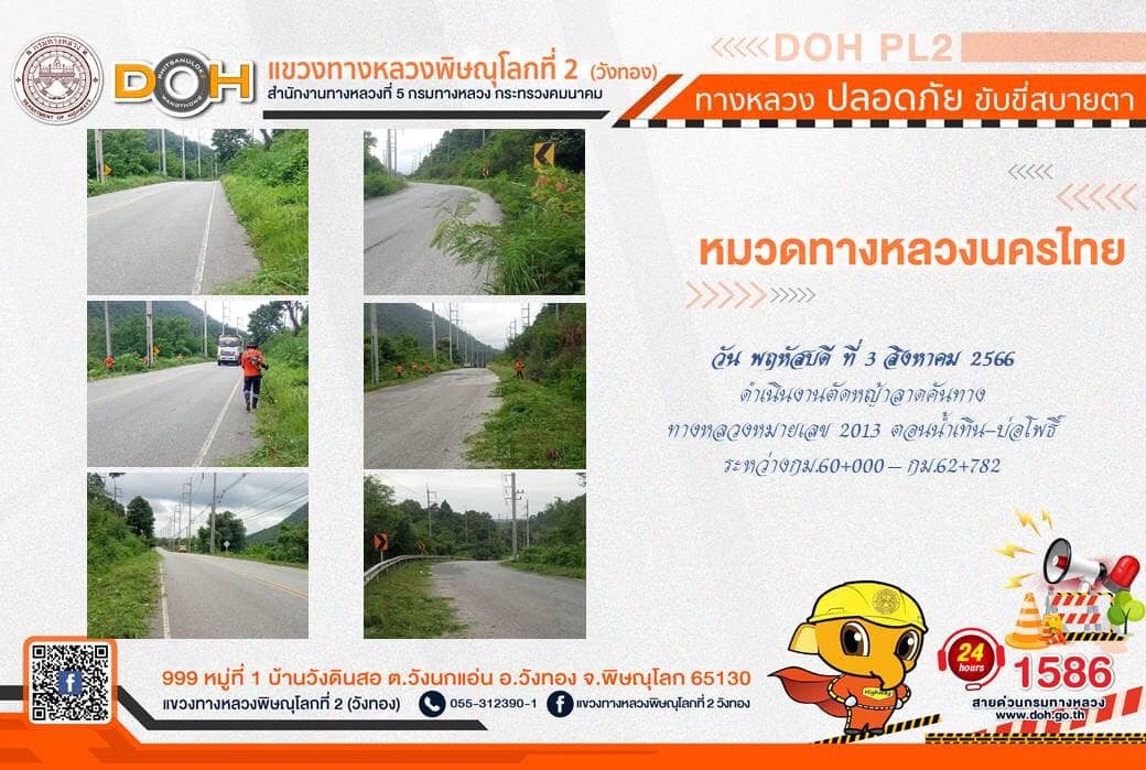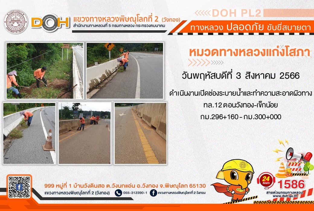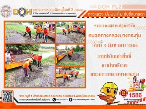 การปฏิบัติงานของ หมวดทางหลวง และ หน่วยงานในสังกัด เพื่ออำนวยความสะดวก และปลอดภัยให้กับประชาชนผู้ใช้เส้นทาง ประจำ วันพฤหัสบดีที่ 3. สิงหาคม 2566