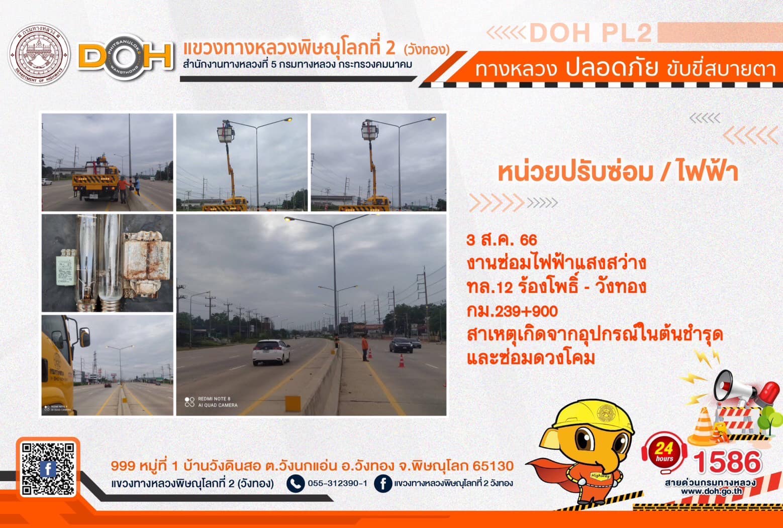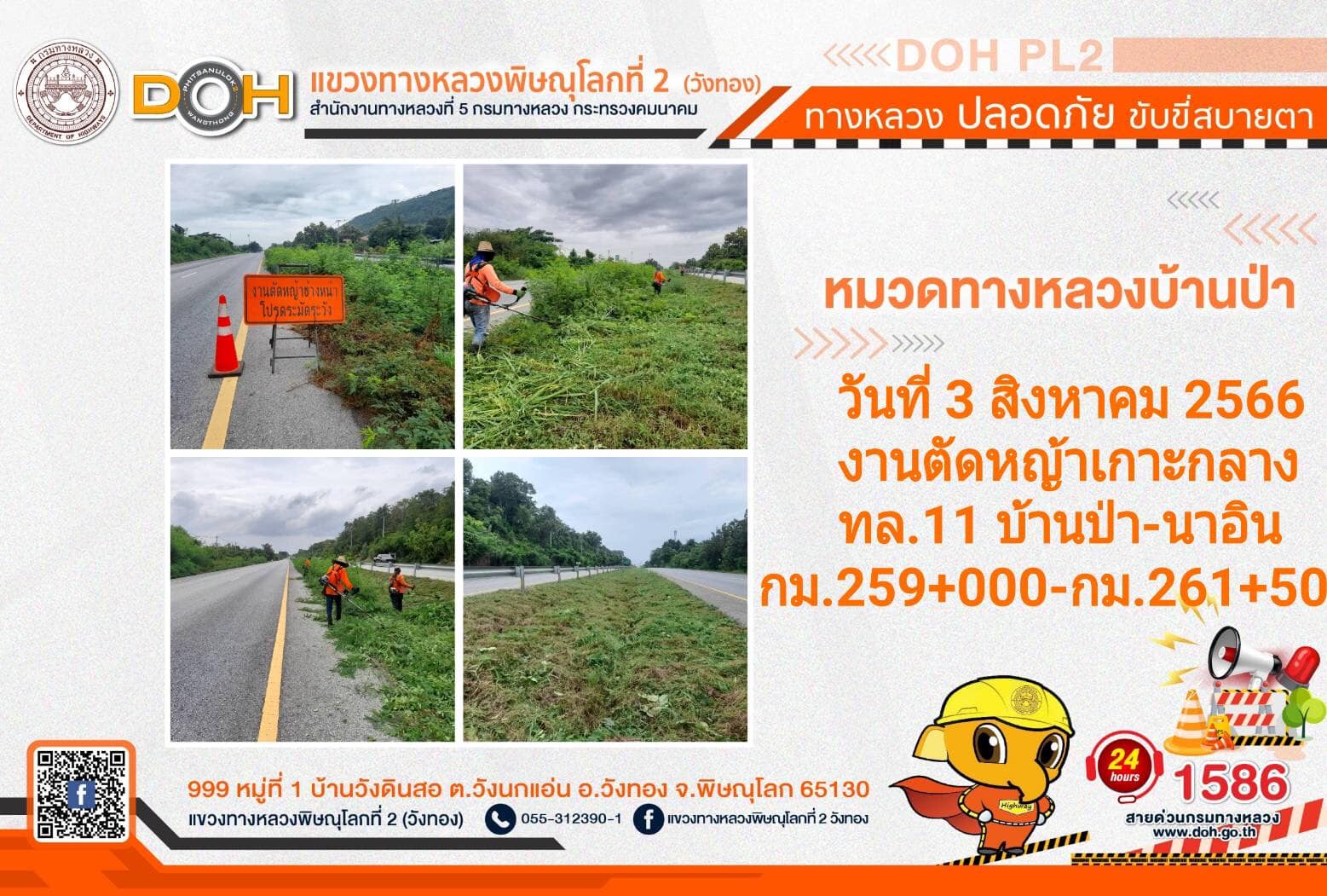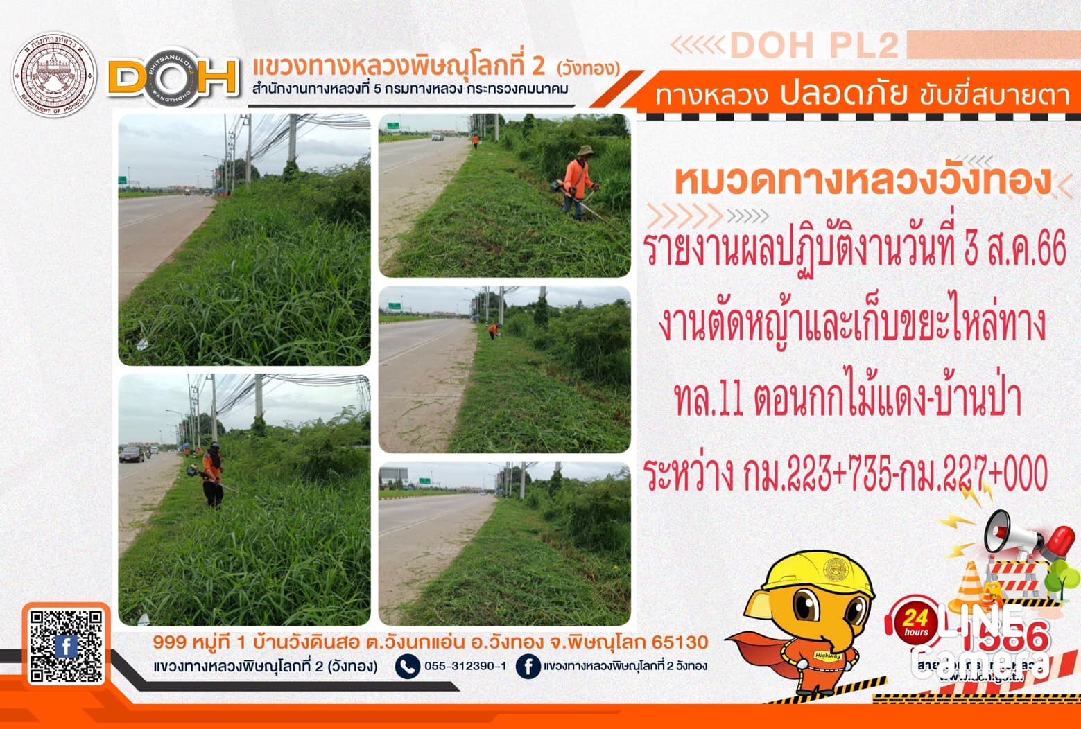 การปฏิบัติงานของ หมวดทางหลวง และ หน่วยงานในสังกัด เพื่ออำนวยความสะดวก และปลอดภัยให้กับประชาชนผู้ใช้เส้นทาง ประจำ วันพฤหัสบดีที่ 3. สิงหาคม 2566