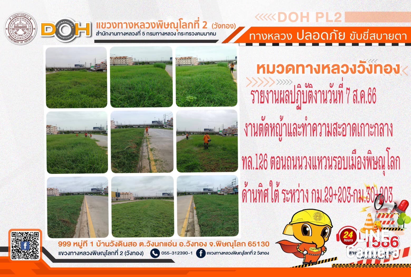 การปฏิบัติงานของ หมวดทางหลวง และ หน่วยงานในสังกัด เพื่ออำนวยความสะดวก และปลอดภัยให้กับประชาชนผู้ใช้เส้นทาง ประจำ วันจันทร์ที่ 7 สิงหาคม 2566