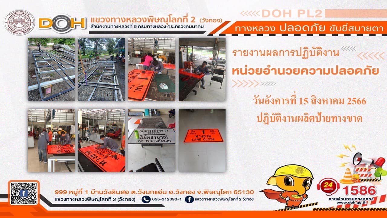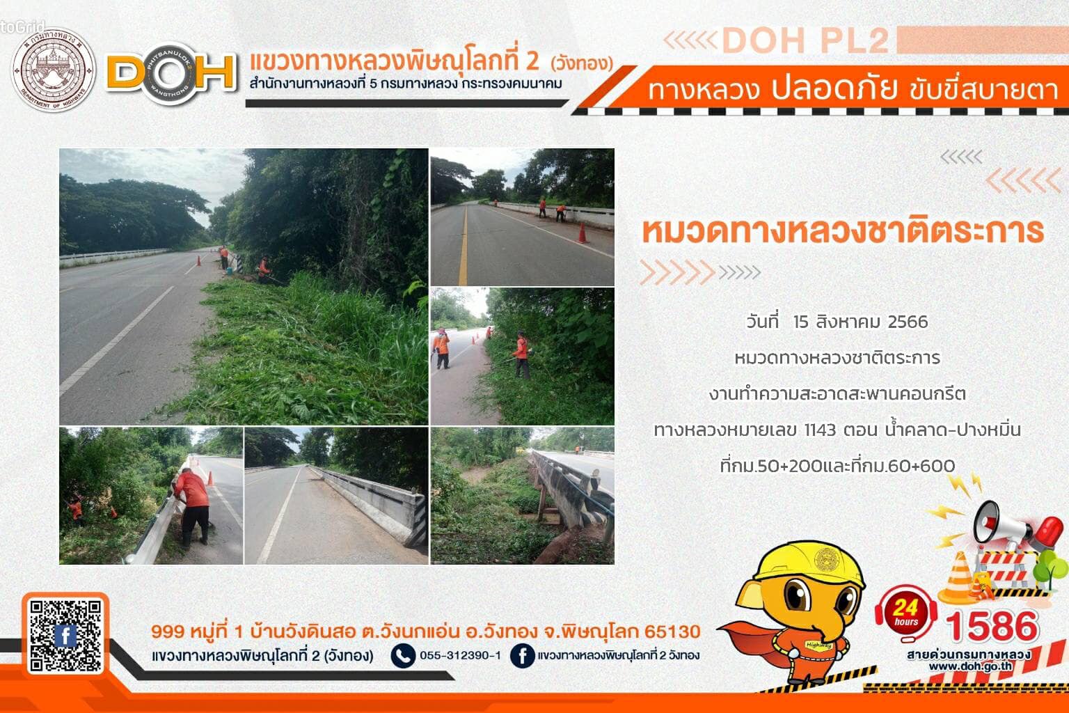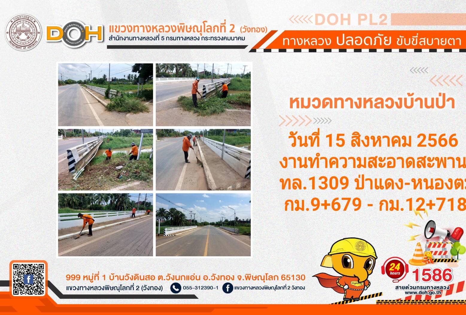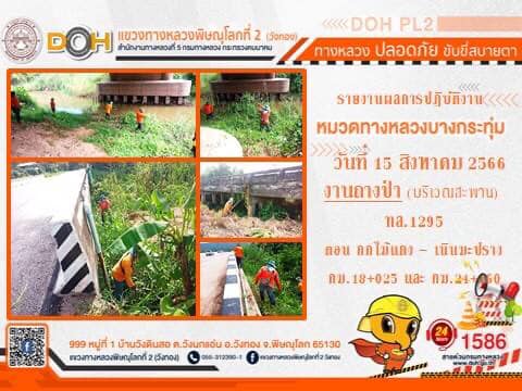การปฏิบัติงานของ หมวดทางหลวง และ หน่วยงานในสังกัด เพื่ออำนวยความสะดวก และปลอดภัยให้กับประชาชนผู้ใช้เส้นทาง ประจำ วันอังคารที่ 15 สิงหาคม 2566
