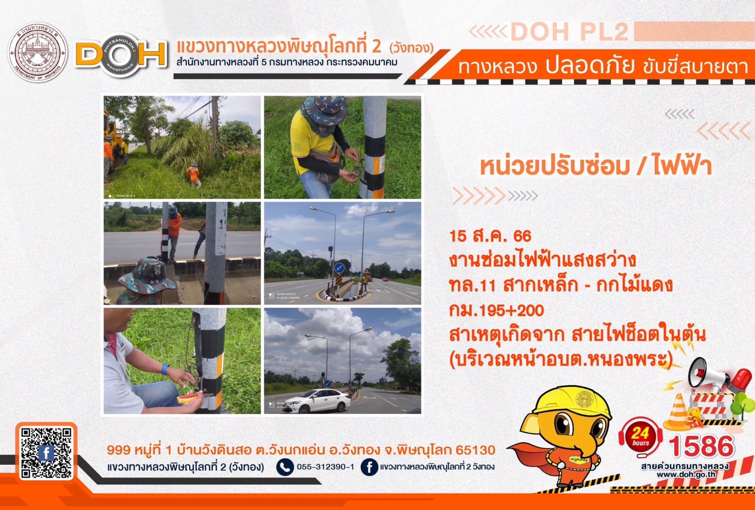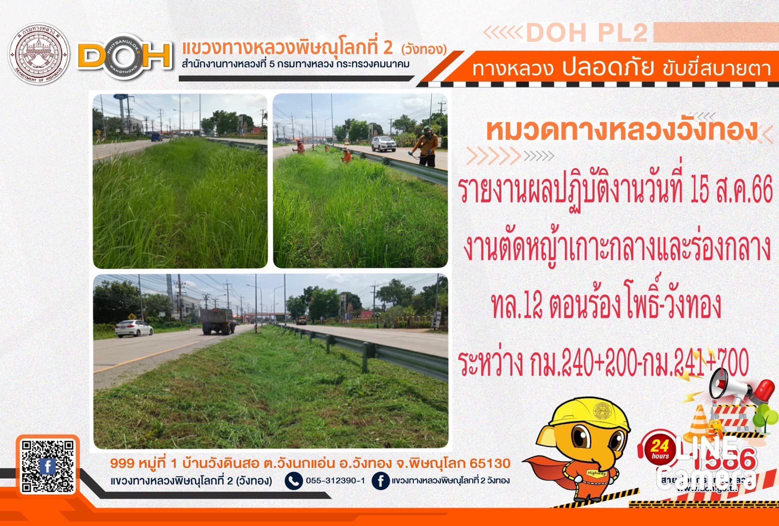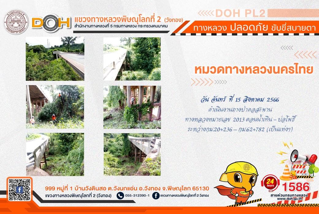 การปฏิบัติงานของ หมวดทางหลวง และ หน่วยงานในสังกัด เพื่ออำนวยความสะดวก และปลอดภัยให้กับประชาชนผู้ใช้เส้นทาง ประจำ วันอังคารที่ 15 สิงหาคม 2566