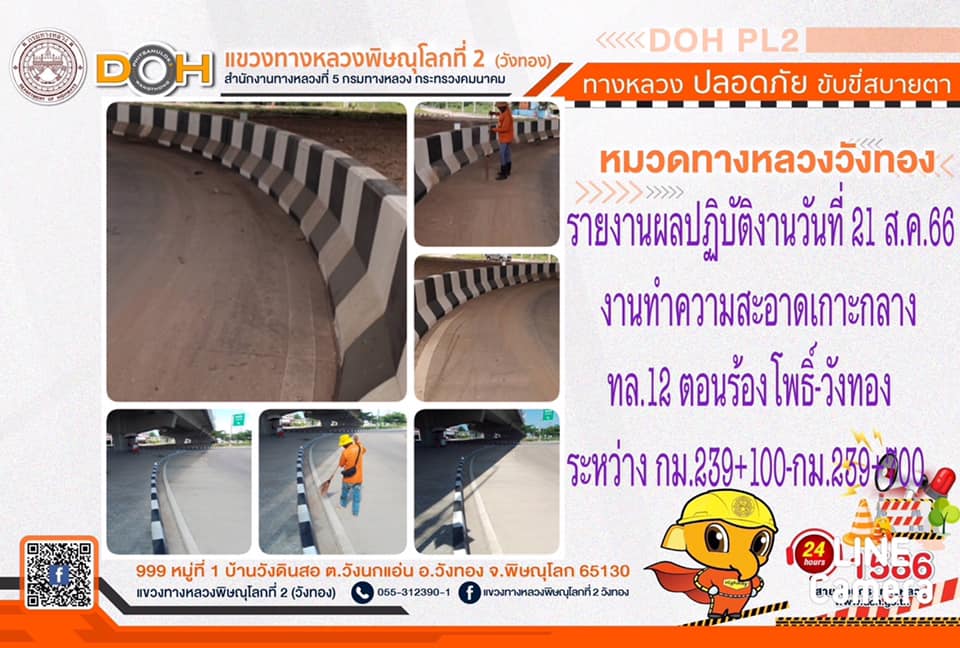 การปฏิบัติงานของ หมวดทางหลวง และ หน่วยงานในสังกัด เพื่ออำนวยความสะดวก และปลอดภัยให้กับประชาชนผู้ใช้เส้นทาง ประจำ วันจันทร์ที่ 21 สิงหาคม 2566