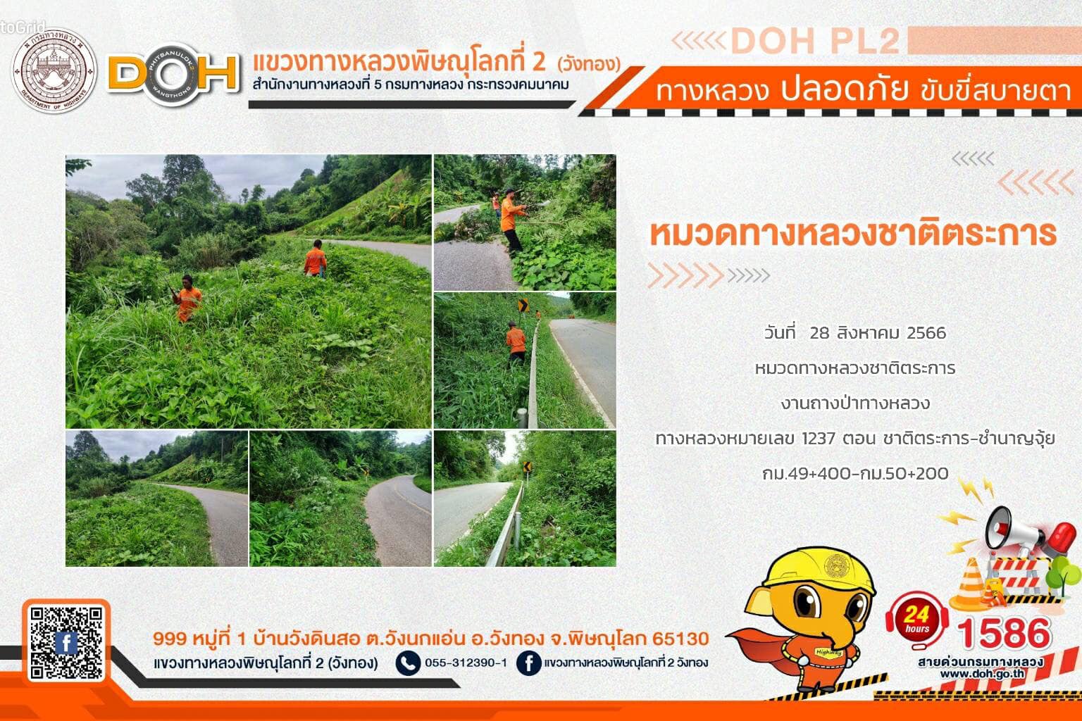 การปฏิบัติงานของ หมวดทางหลวง และ หน่วยงานในสังกัด เพื่ออำนวยความสะดวก และปลอดภัยให้กับประชาชนผู้ใช้เส้นทาง ประจำ วันจันทร์ที่ 28 สิงหาคม 2566
