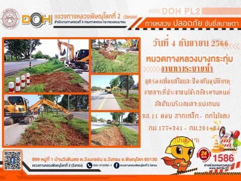 การปฏิบัติงานของ หมวดทางหลวง และ หน่วยงานในสังกัด เพื่ออำนวยความสะดวก และปลอดภัยให้กับประชาชนผู้ใช้เส้นทาง ประจำ วันจันทร์ที่ 4 กันยายน 2566