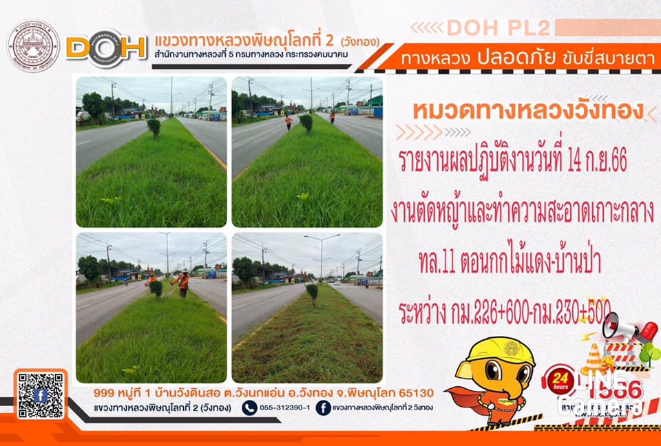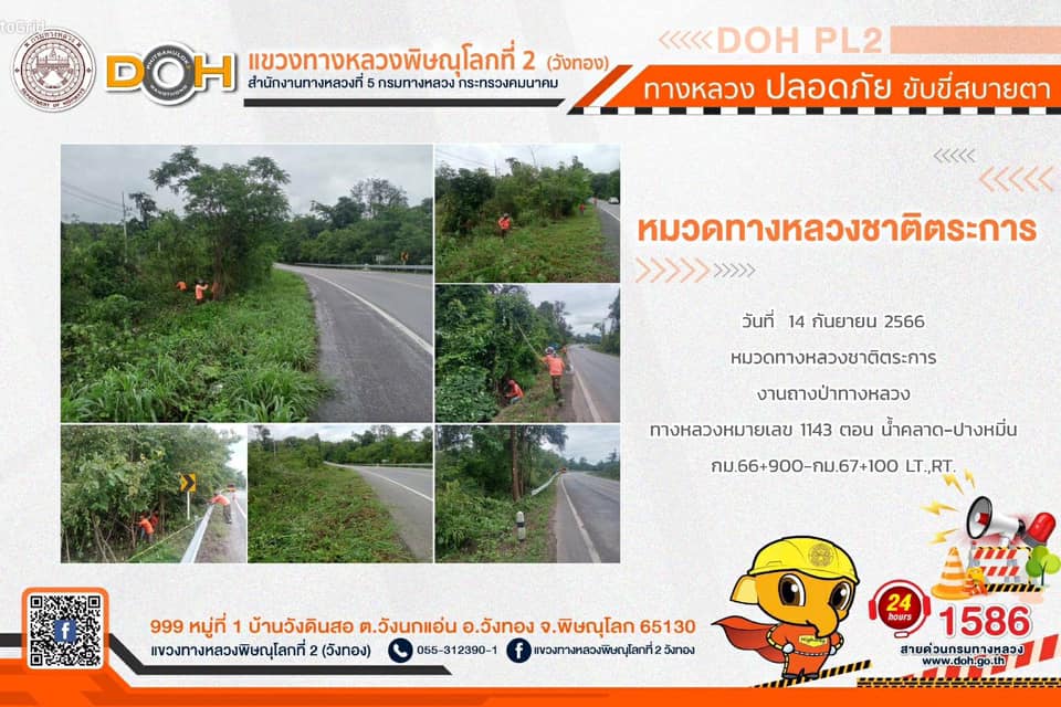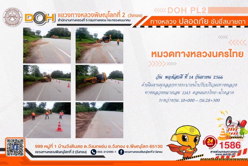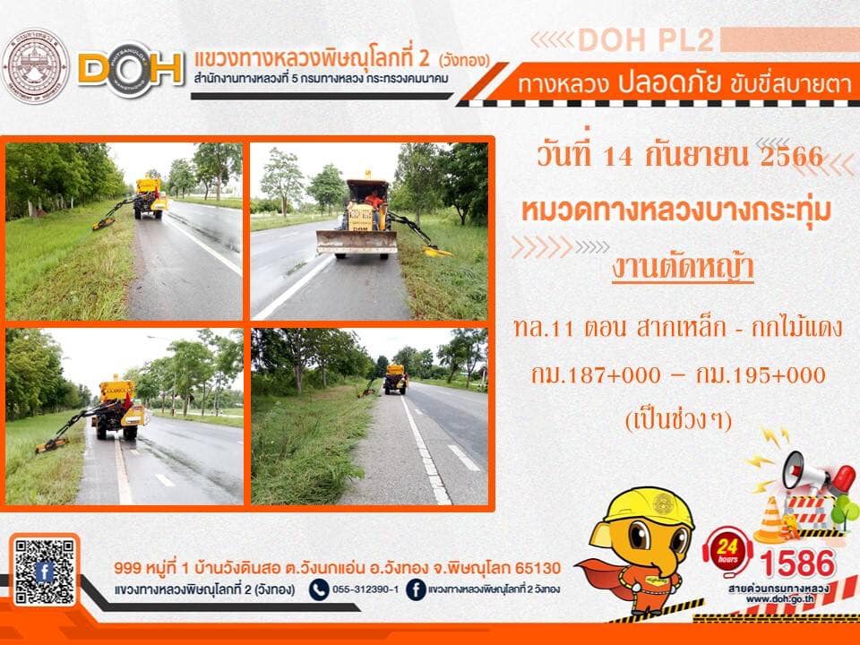 การปฏิบัติงานของ หมวดทางหลวง และ หน่วยงานในสังกัด เพื่ออำนวยความสะดวก และปลอดภัยให้กับประชาชนผู้ใช้เส้นทาง ประจำ วันพฤหัสบดีที่ 14 กันยายน 2566
