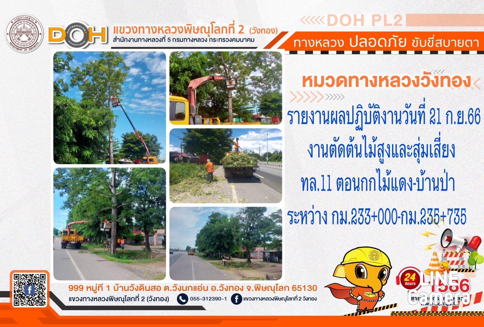 การปฏิบัติงานของ หมวดทางหลวง และ หน่วยงานในสังกัด เพื่ออำนวยความสะดวก และปลอดภัยให้กับประชาชนผู้ใช้เส้นทาง ประจำ วันพฤหัสบดีที่ 21 กันยายน 2566