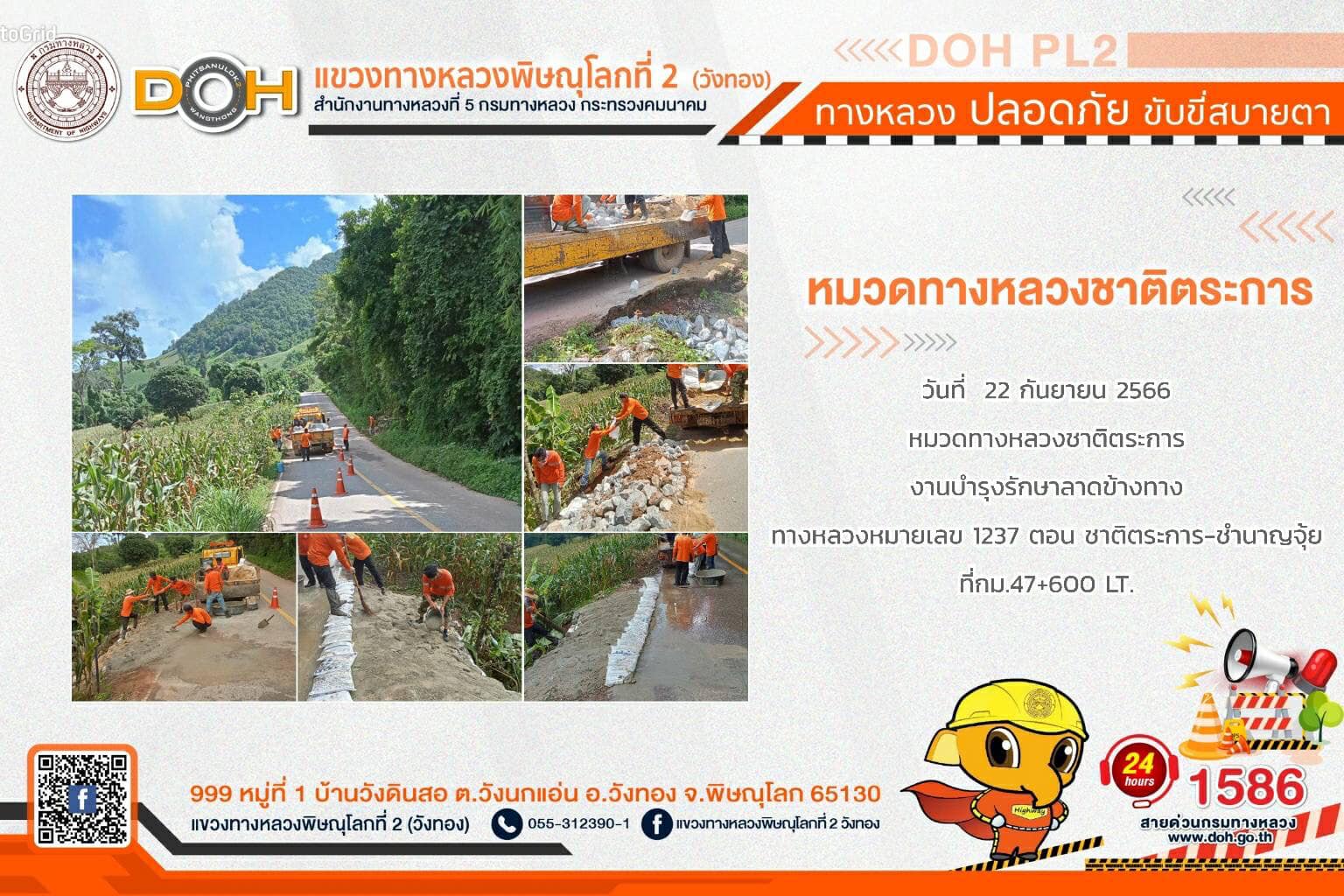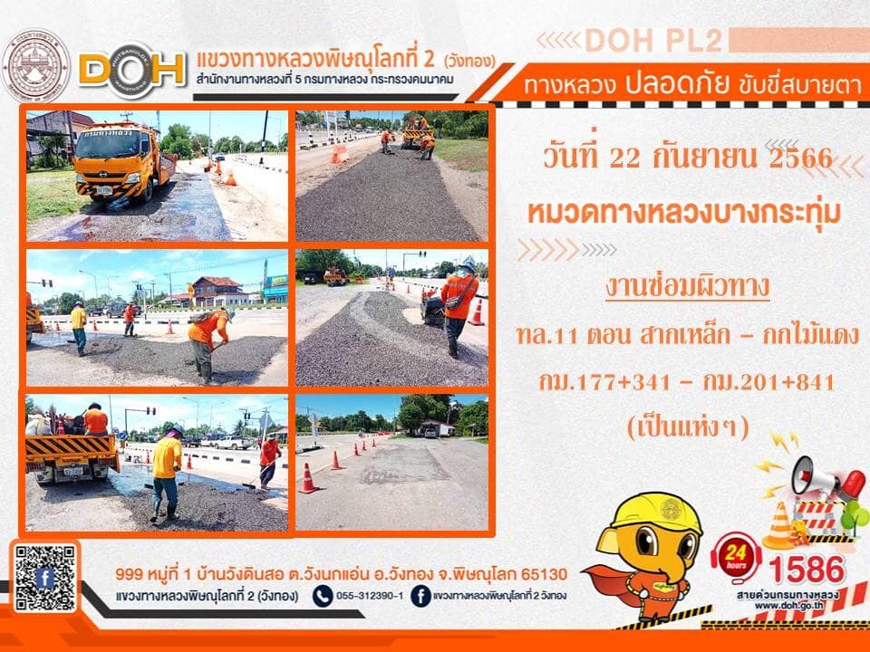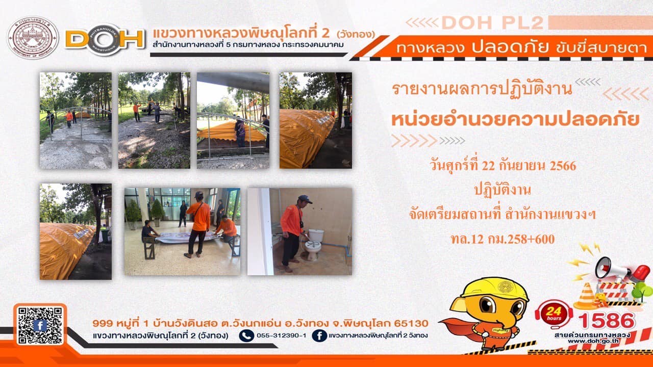 การปฏิบัติงานของ หมวดทางหลวง และ หน่วยงานในสังกัด เพื่ออำนวยความสะดวก และปลอดภัยให้กับประชาชนผู้ใช้เส้นทาง ประจำ วันศุกร์ที่ 22 กันยายน 2566