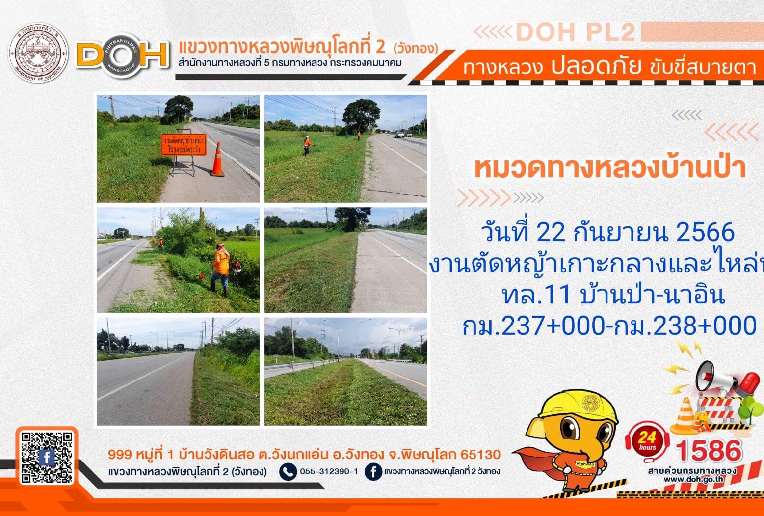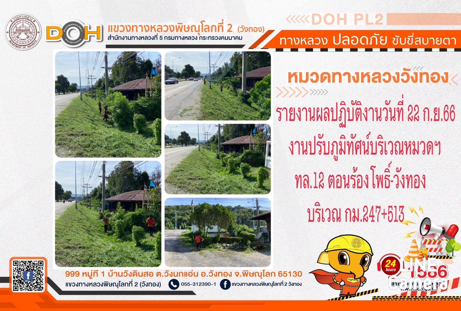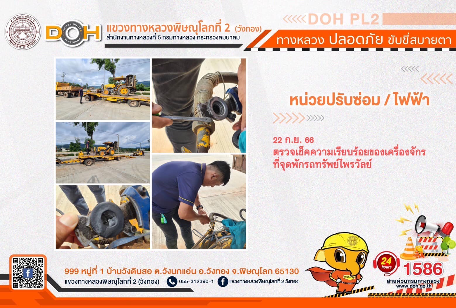 การปฏิบัติงานของ หมวดทางหลวง และ หน่วยงานในสังกัด เพื่ออำนวยความสะดวก และปลอดภัยให้กับประชาชนผู้ใช้เส้นทาง ประจำ วันศุกร์ที่ 22 กันยายน 2566
