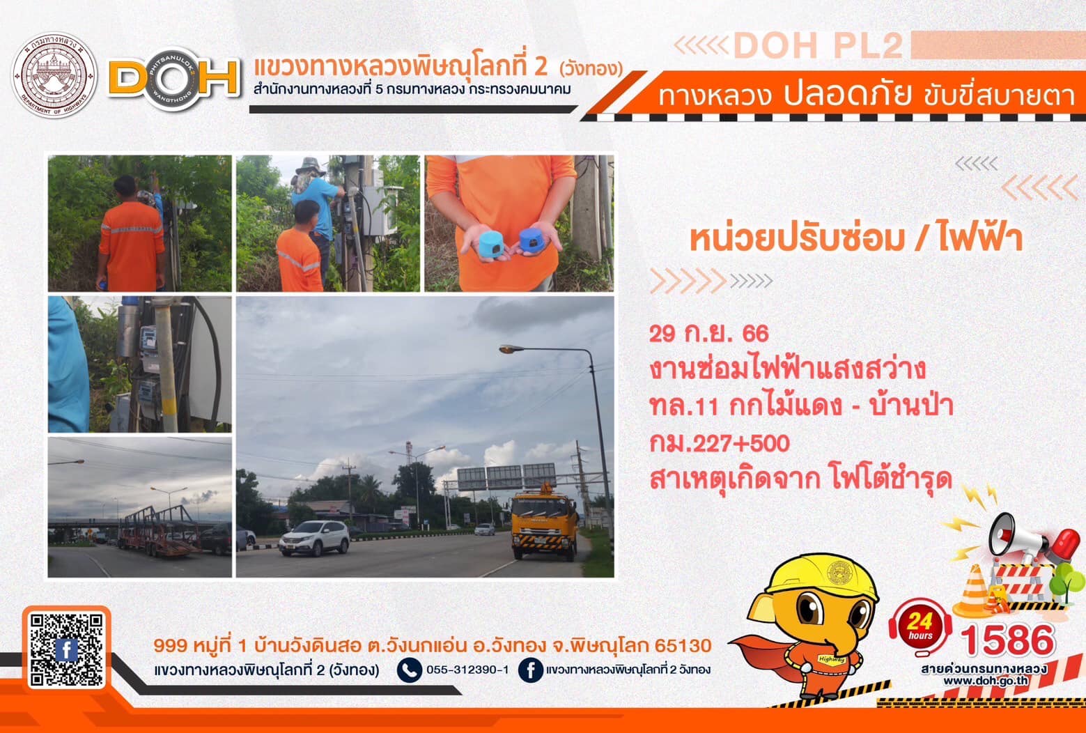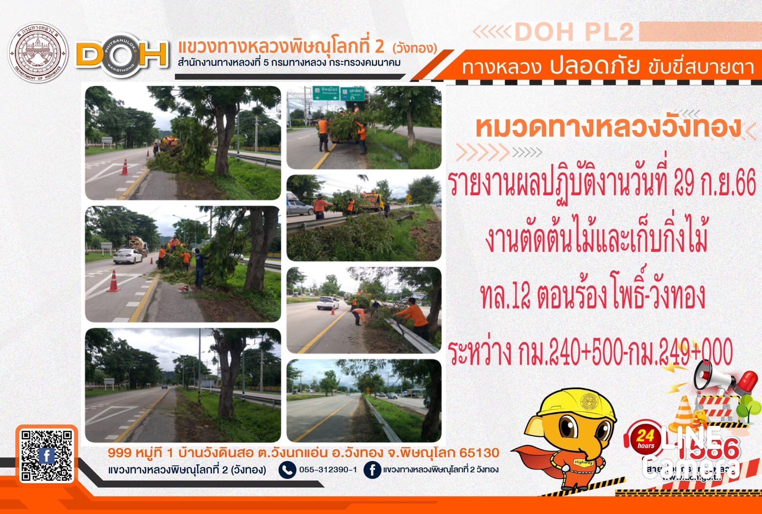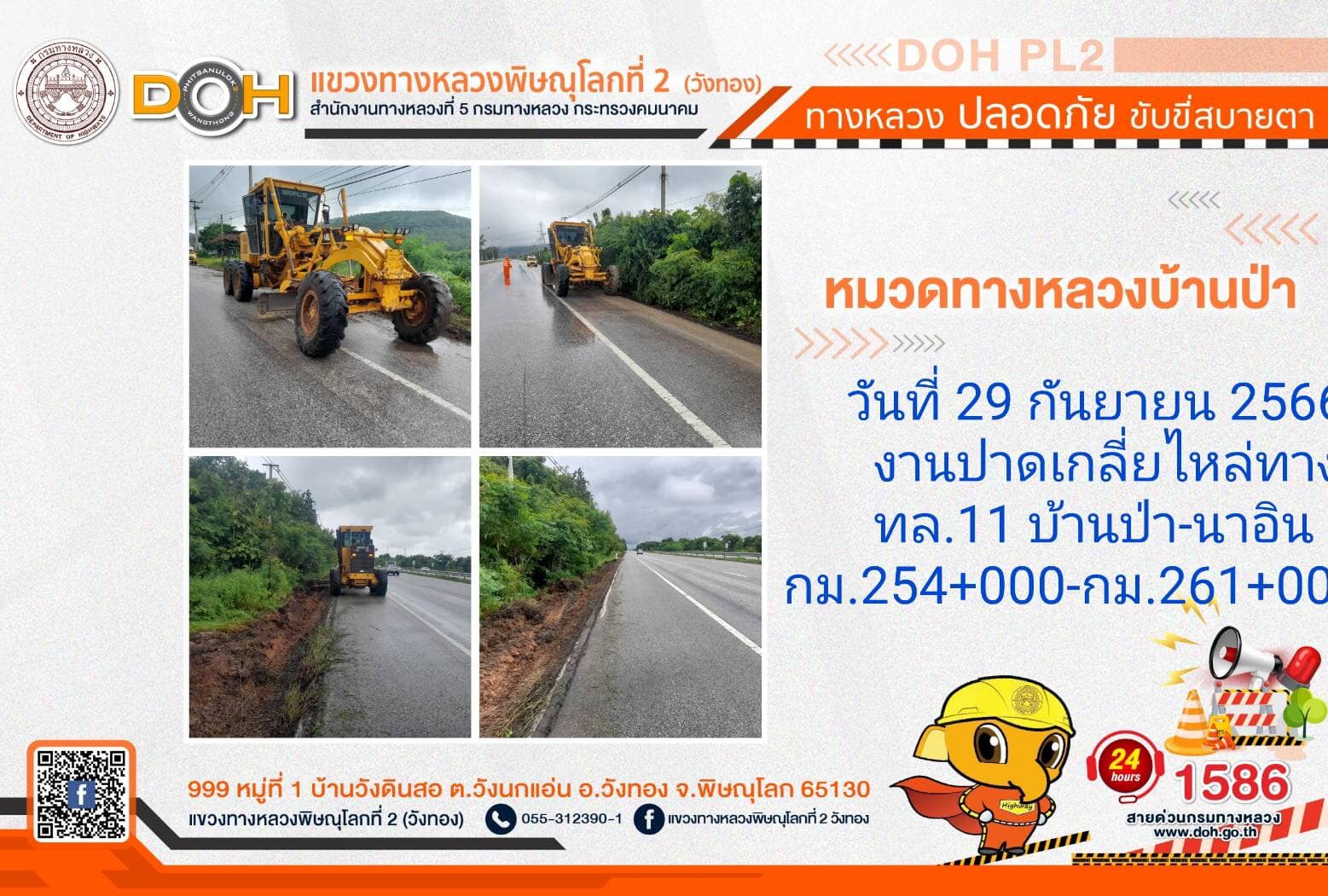 การปฏิบัติงานของ หมวดทางหลวง และ หน่วยงานในสังกัด เพื่ออำนวยความสะดวก และปลอดภัยให้กับประชาชนผู้ใช้เส้นทาง ประจำ วันศุกร์ที่ 29 กันยายน 2566