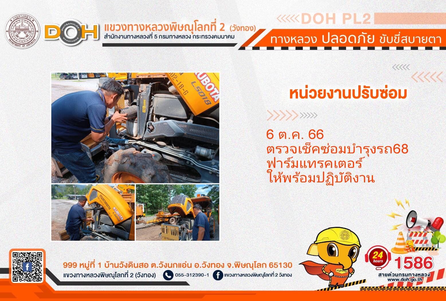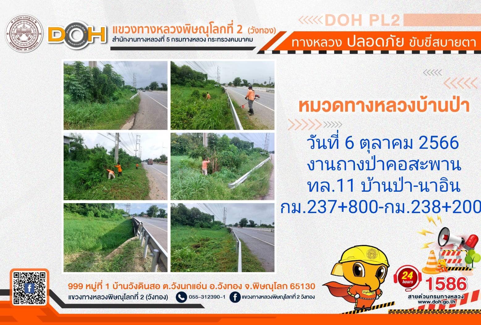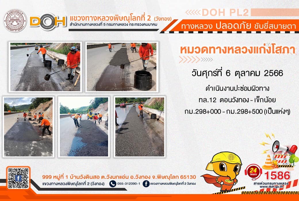 การปฏิบัติงานของ หมวดทางหลวง และ หน่วยงานในสังกัด เพื่ออำนวยความสะดวก และปลอดภัยให้กับประชาชนผู้ใช้เส้นทาง ประจำ วันศุกรืที่ 6 ตุลาคม 2566