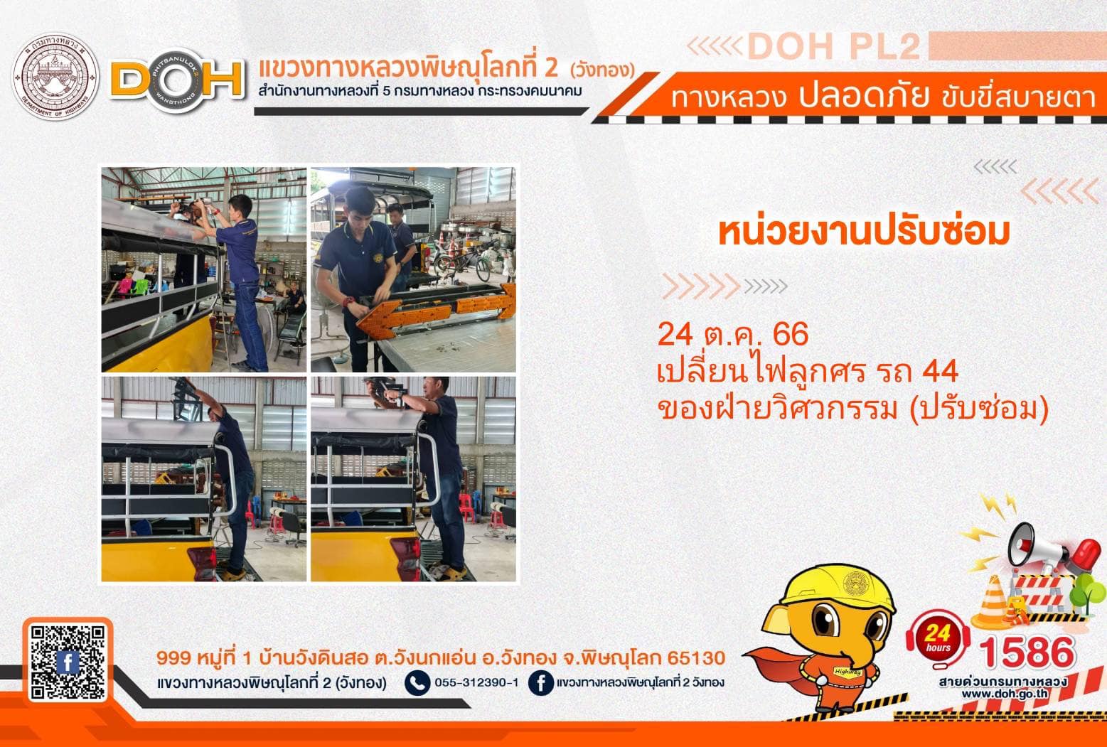 การปฏิบัติงานของ หมวดทางหลวง และ หน่วยงานในสังกัด เพื่ออำนวยความสะดวก และปลอดภัยให้กับประชาชนผู้ใช้เส้นทาง ประจำ วันอังคารที่ 24 ตุลาคม 2566