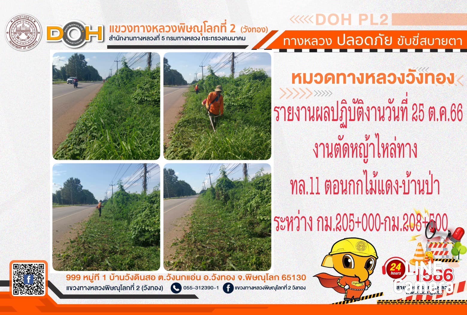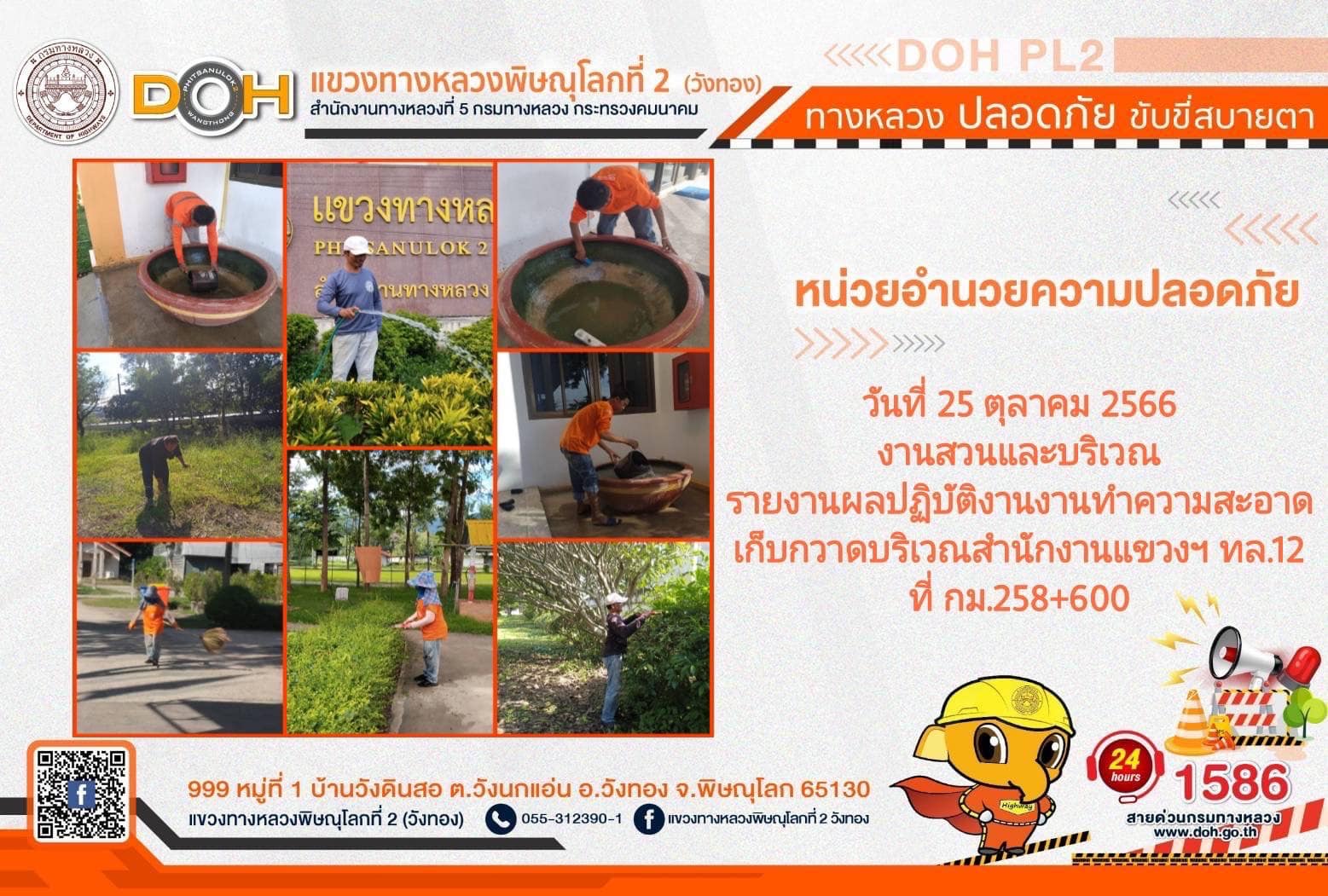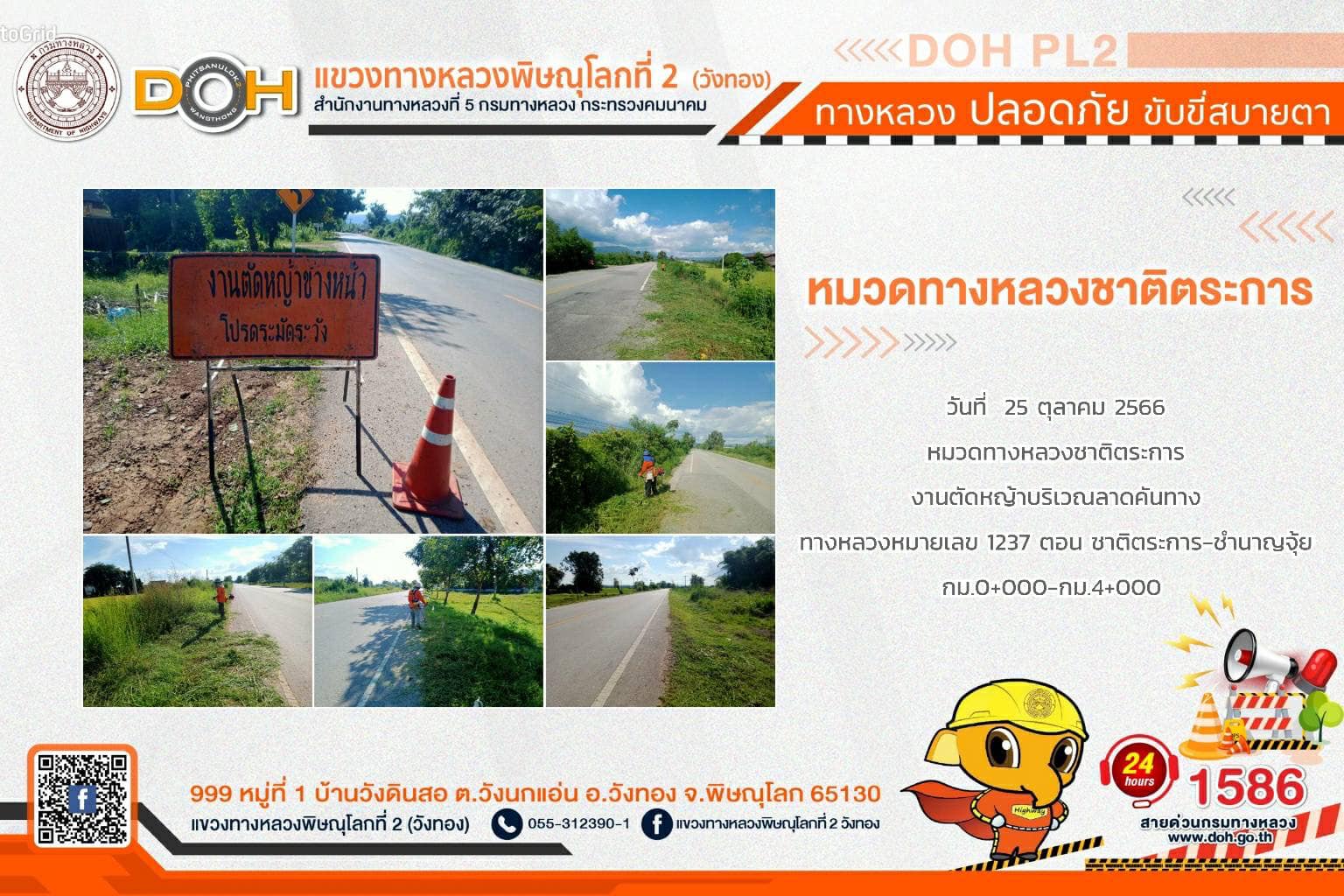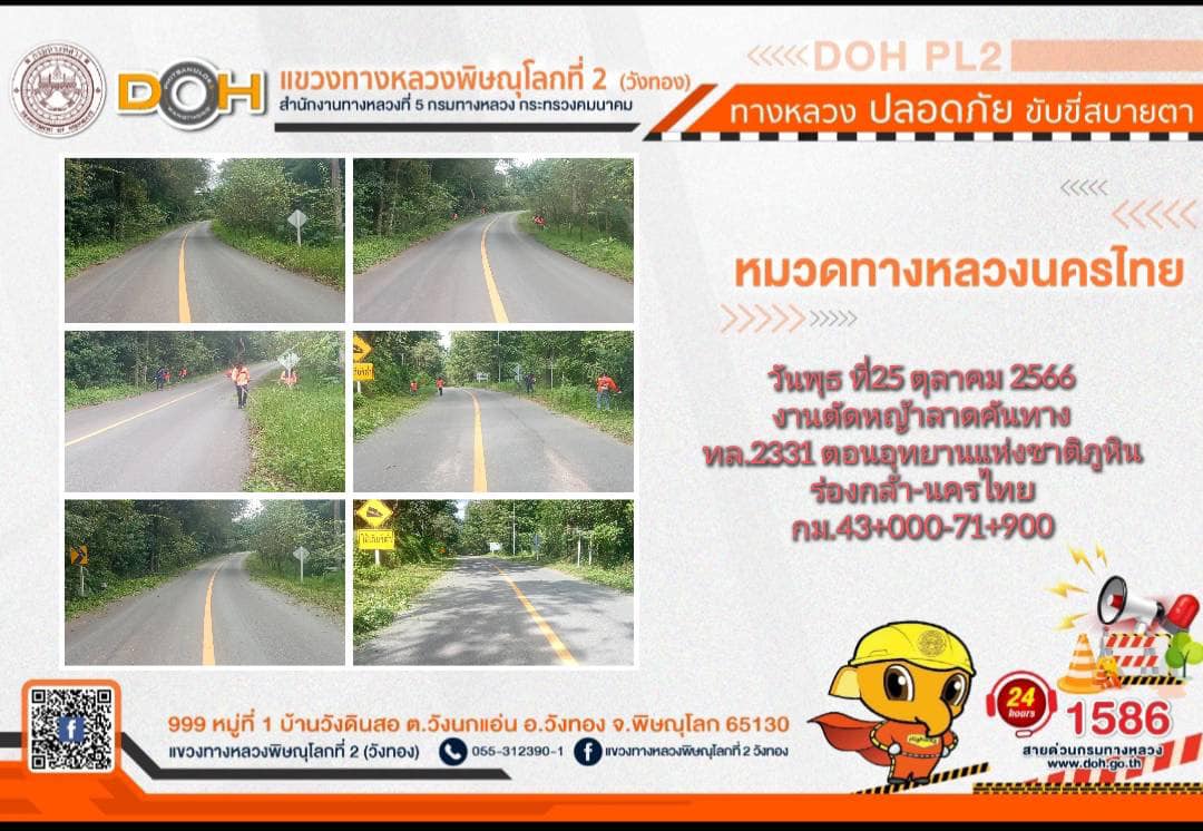 การปฏิบัติงานของ หมวดทางหลวง และ หน่วยงานในสังกัด เพื่ออำนวยความสะดวก และปลอดภัยให้กับประชาชนผู้ใช้เส้นทาง ประจำ วันพุธที่ 25 ตุลาคม 2566