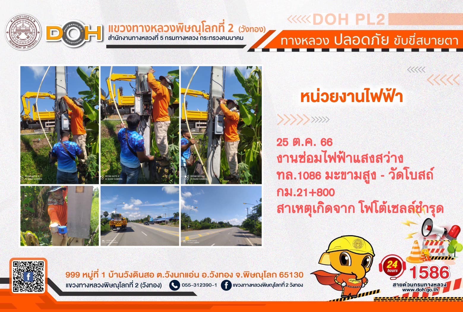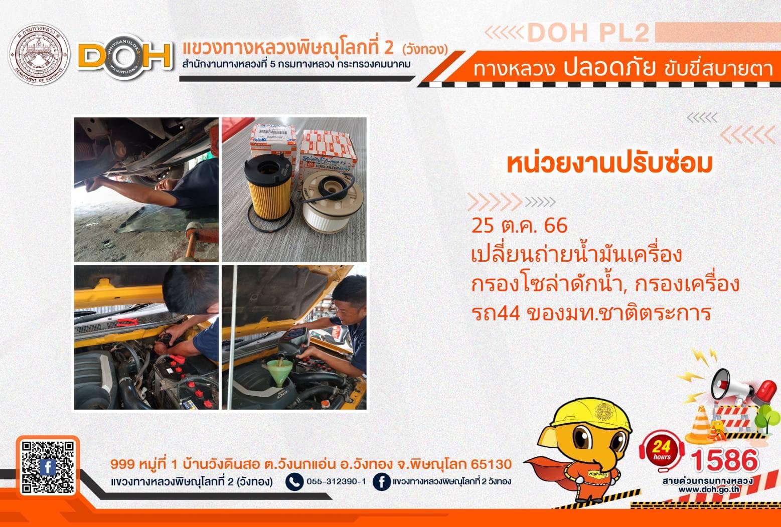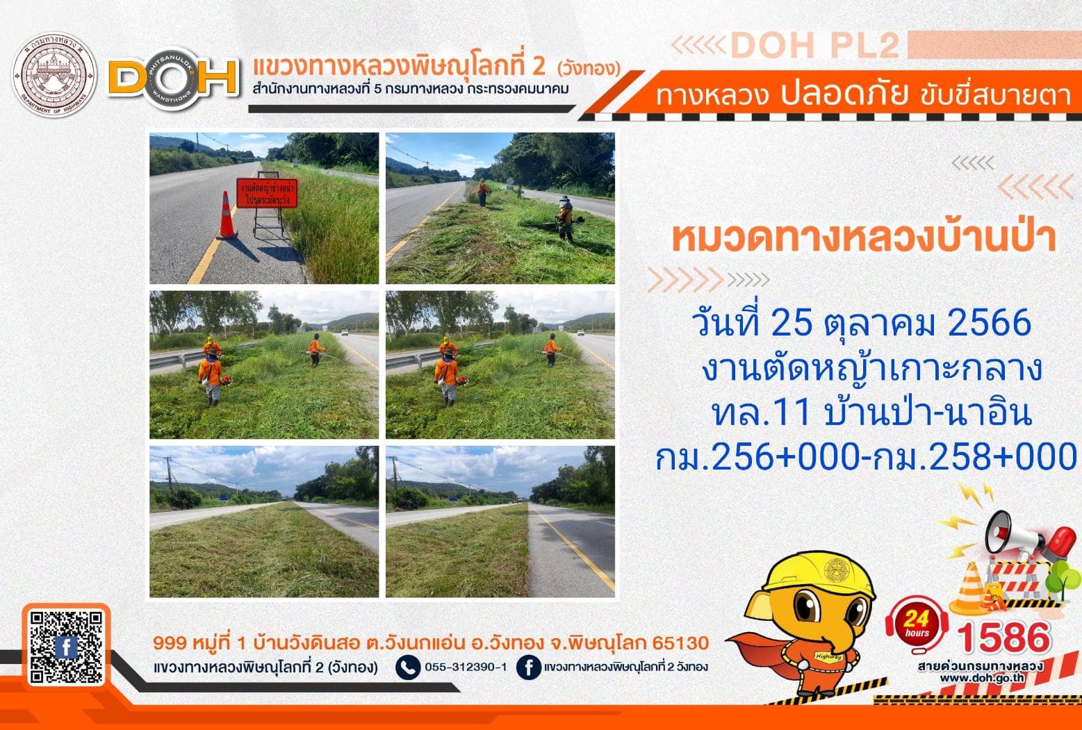 การปฏิบัติงานของ หมวดทางหลวง และ หน่วยงานในสังกัด เพื่ออำนวยความสะดวก และปลอดภัยให้กับประชาชนผู้ใช้เส้นทาง ประจำ วันพุธที่ 25 ตุลาคม 2566