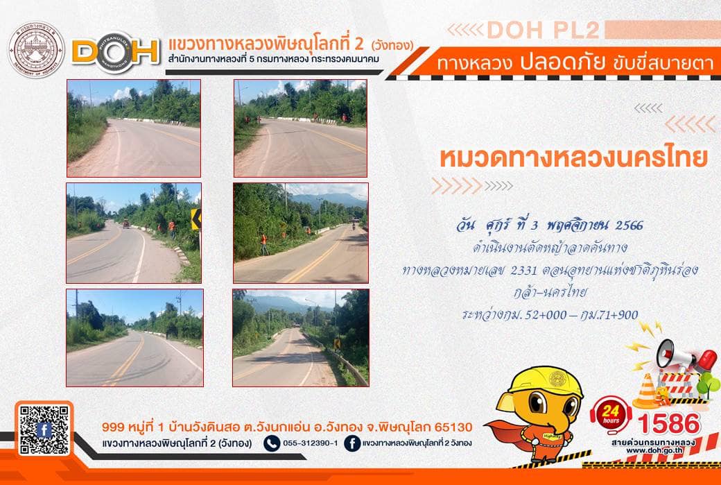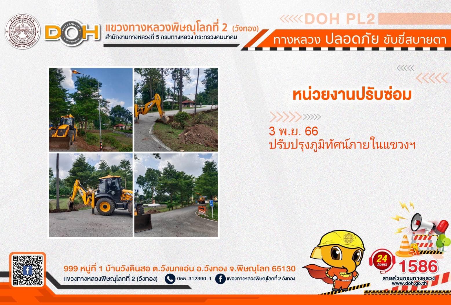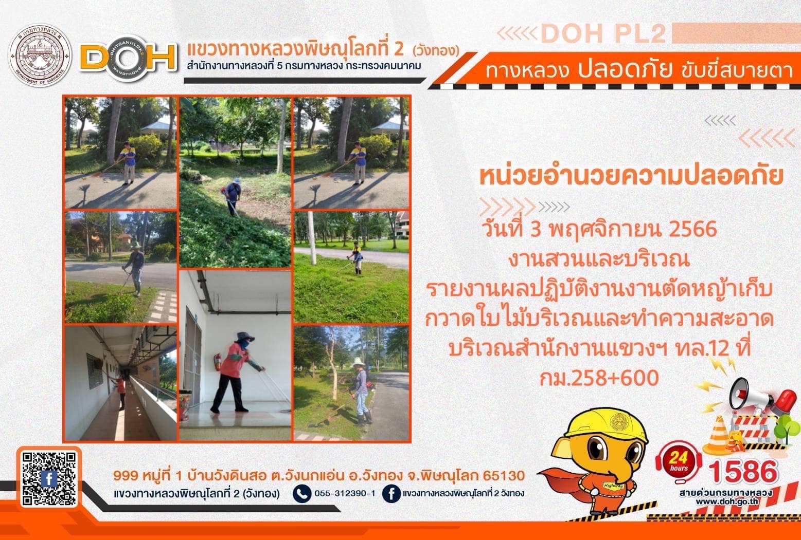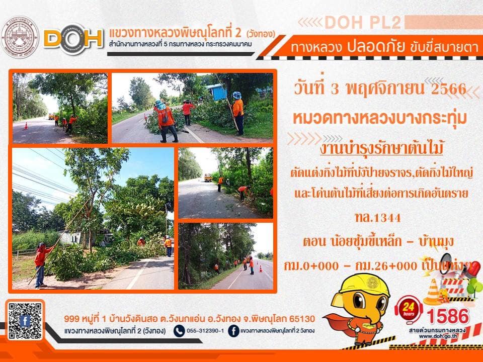 การปฏิบัติงานของ หมวดทางหลวง และ หน่วยงานในสังกัด เพื่ออำนวยความสะดวก และปลอดภัยให้กับประชาชนผู้ใช้เส้นทาง ประจำ วันศุกร์ที่ 3 พฤศจิกายน 2566