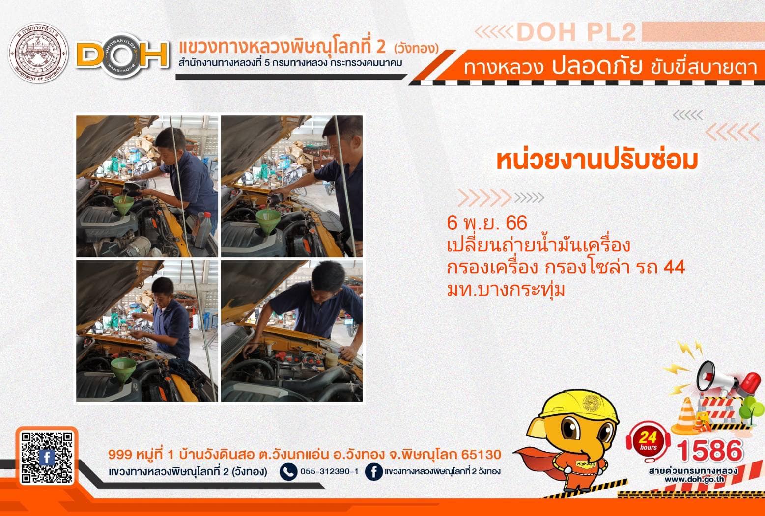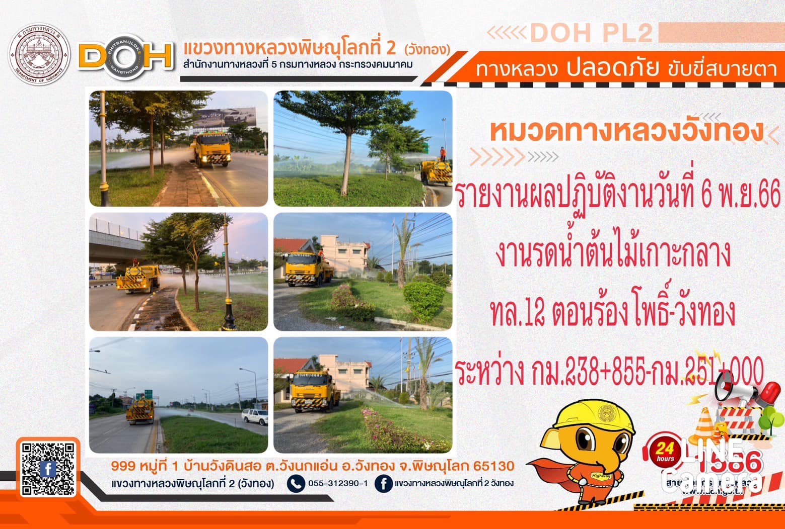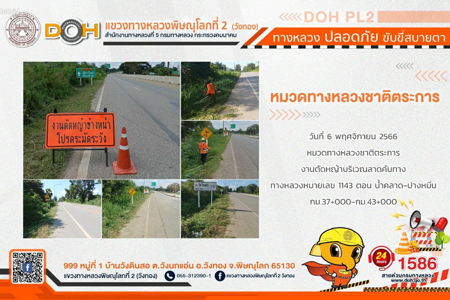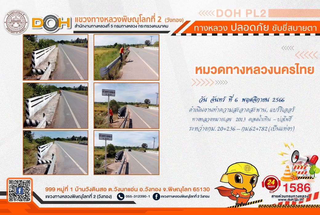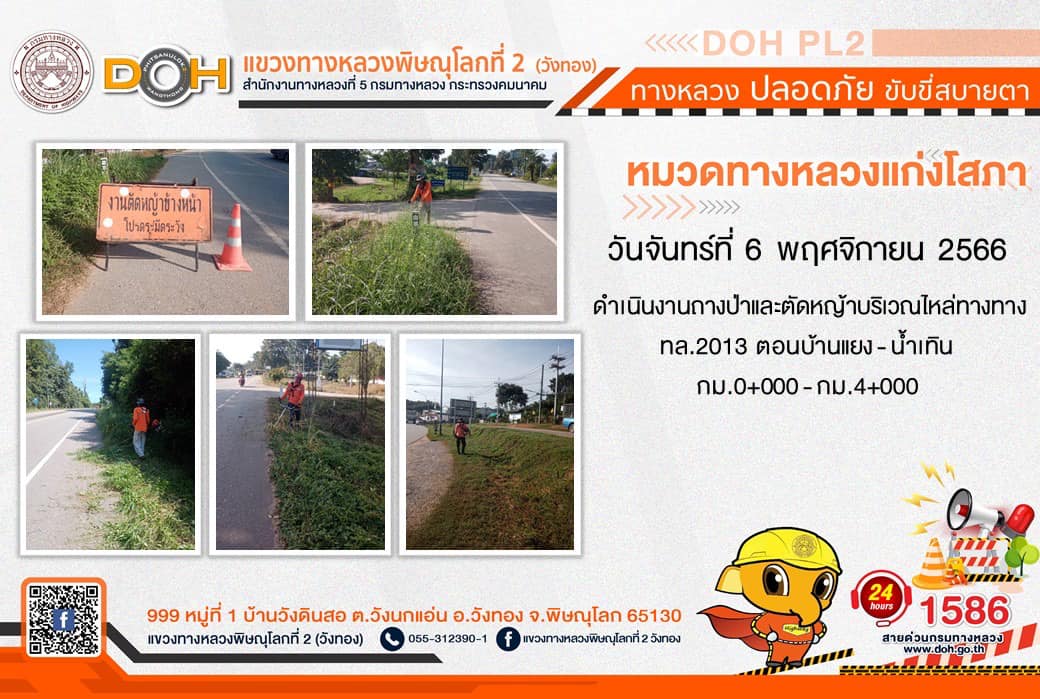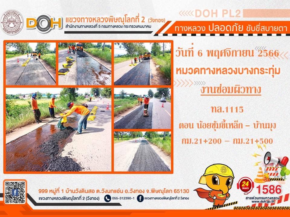 การปฏิบัติงานของ หมวดทางหลวง และ หน่วยงานในสังกัด เพื่ออำนวยความสะดวก และปลอดภัยให้กับประชาชนผู้ใช้เส้นทาง ประจำ วันจันทร์ที่ 6 พฤศจิกายน 2566