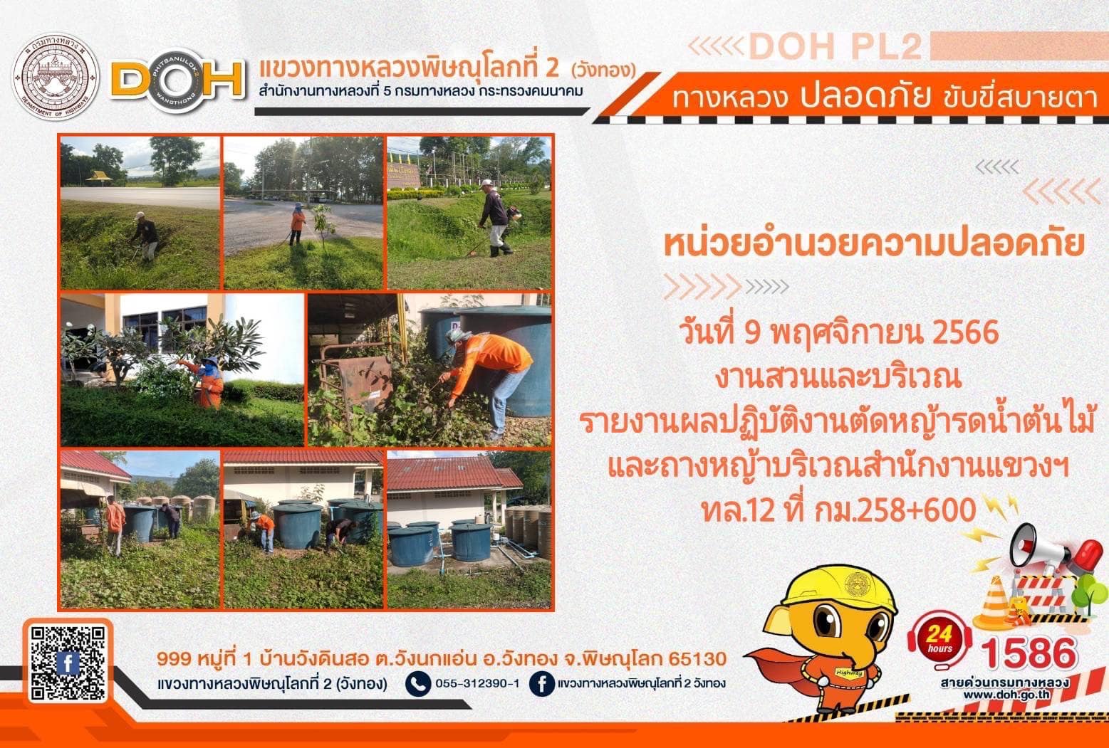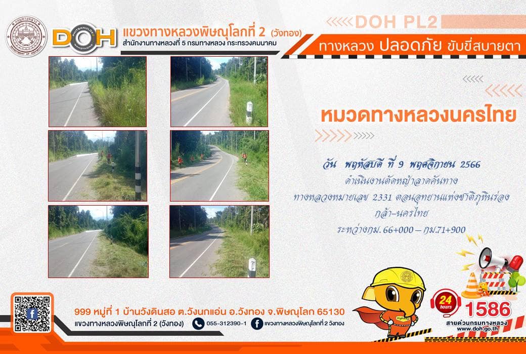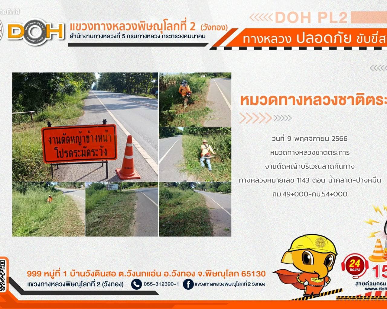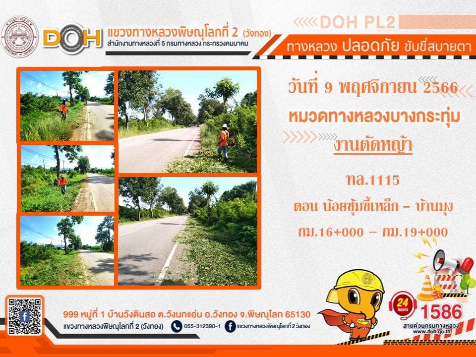 การปฏิบัติงานของ หมวดทางหลวง และ หน่วยงานในสังกัด เพื่ออำนวยความสะดวก และปลอดภัยให้กับประชาชนผู้ใช้เส้นทาง ประจำ วันพฤหัสบดีที่ 9 พฤศจิกายน 2566