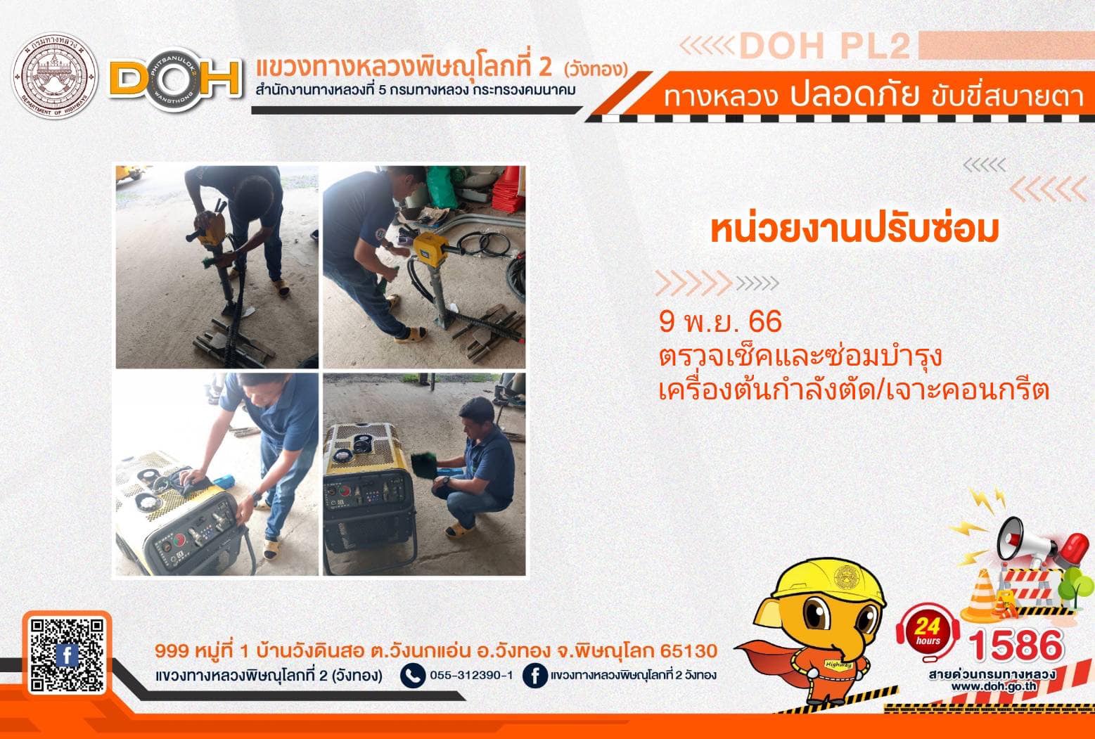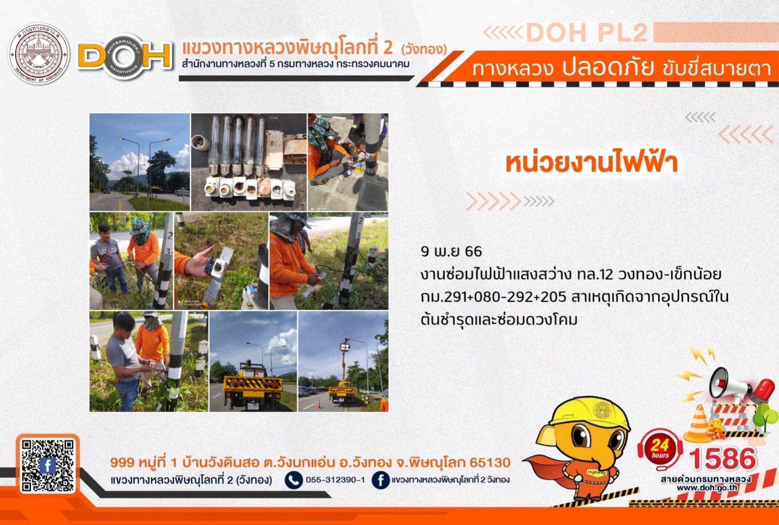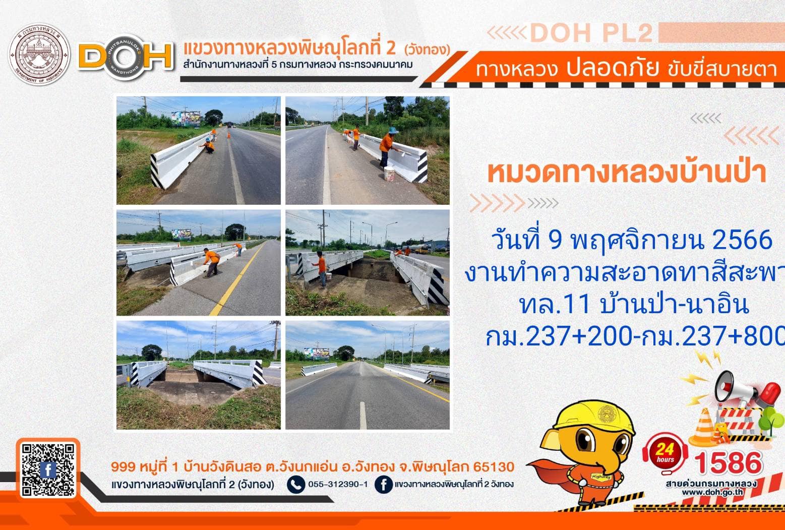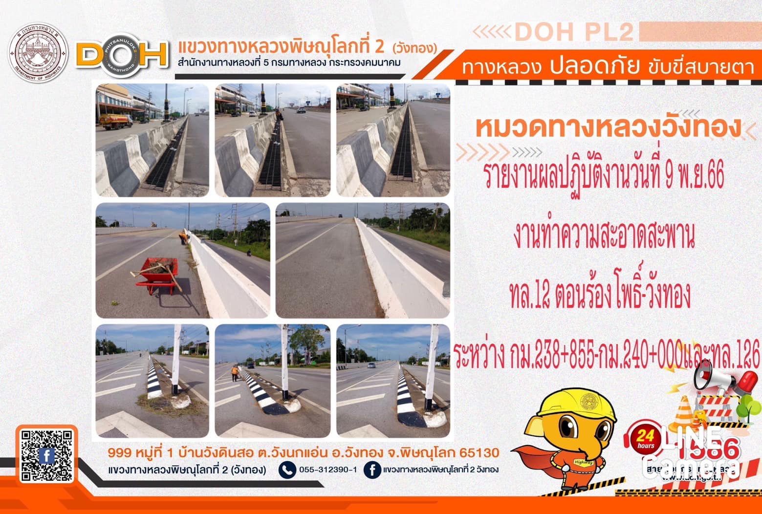 การปฏิบัติงานของ หมวดทางหลวง และ หน่วยงานในสังกัด เพื่ออำนวยความสะดวก และปลอดภัยให้กับประชาชนผู้ใช้เส้นทาง ประจำ วันพฤหัสบดีที่ 9 พฤศจิกายน 2566