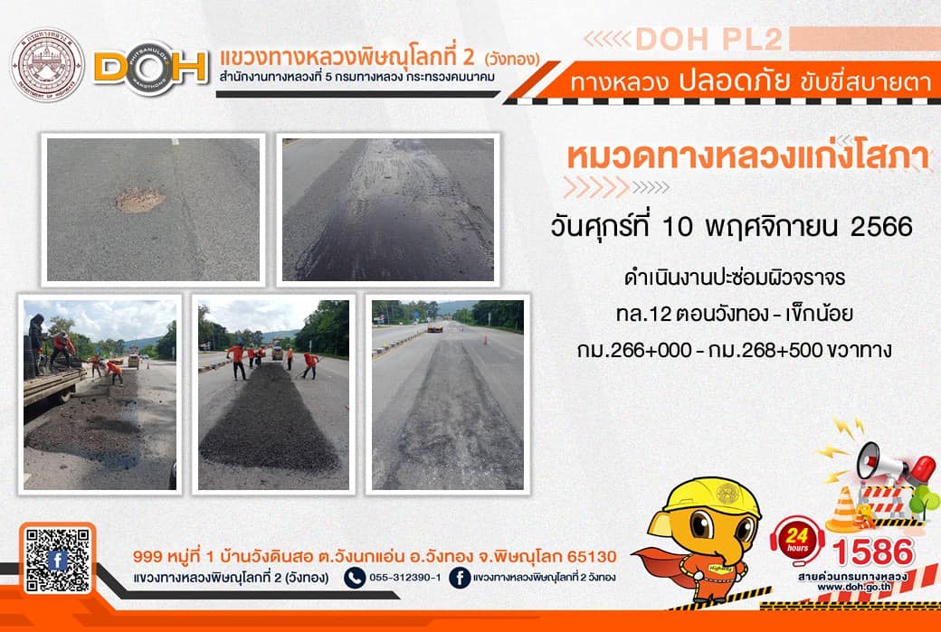 การปฏิบัติงานของ หมวดทางหลวง และ หน่วยงานในสังกัด เพื่ออำนวยความสะดวก และปลอดภัยให้กับประชาชนผู้ใช้เส้นทาง ประจำ วันศุกร์ที่ 10 พฤศจิกายน 2566
