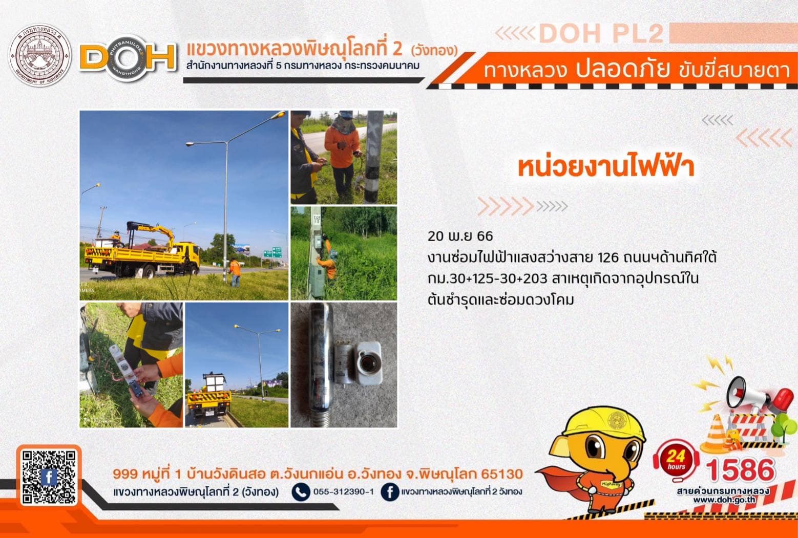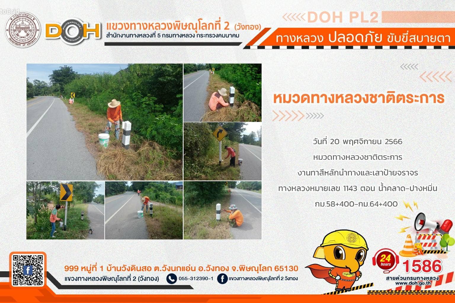 การปฏิบัติงานของ หมวดทางหลวง และ หน่วยงานในสังกัด เพื่ออำนวยความสะดวก และปลอดภัยให้กับประชาชนผู้ใช้เส้นทาง ประจำ วันจันทร์ที่ 20 พฤศจิกายน 2566