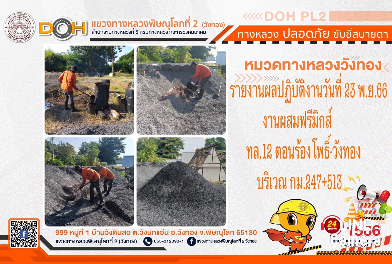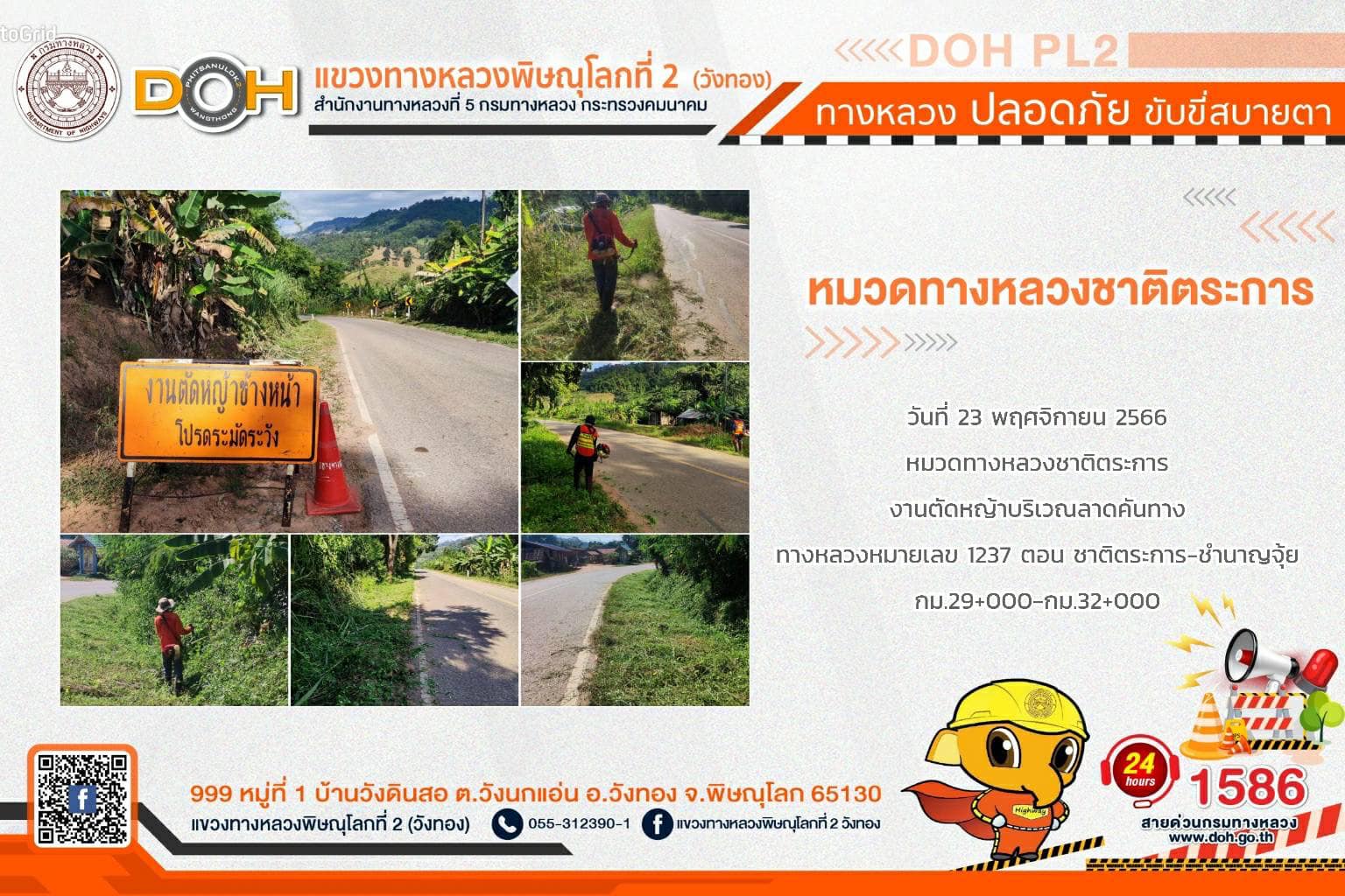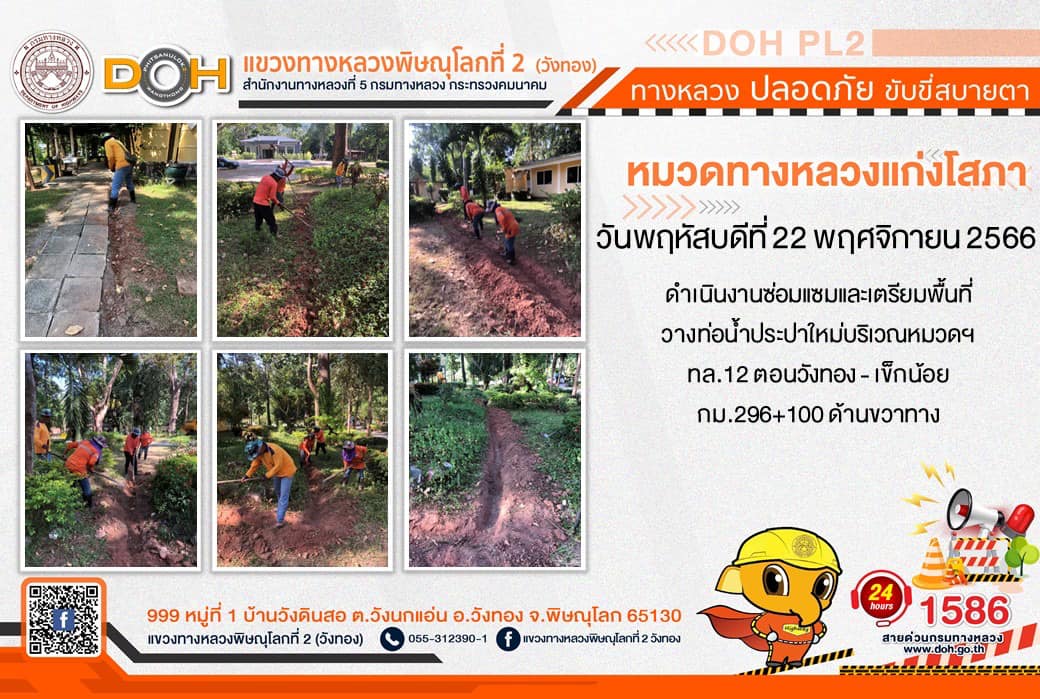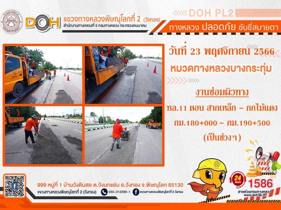 การปฏิบัติงานของ หมวดทางหลวง และ หน่วยงานในสังกัด เพื่ออำนวยความสะดวก และปลอดภัยให้กับประชาชนผู้ใช้เส้นทาง ประจำ วันพฤหัสบดีที่ 23 พฤศจิกายน 2566