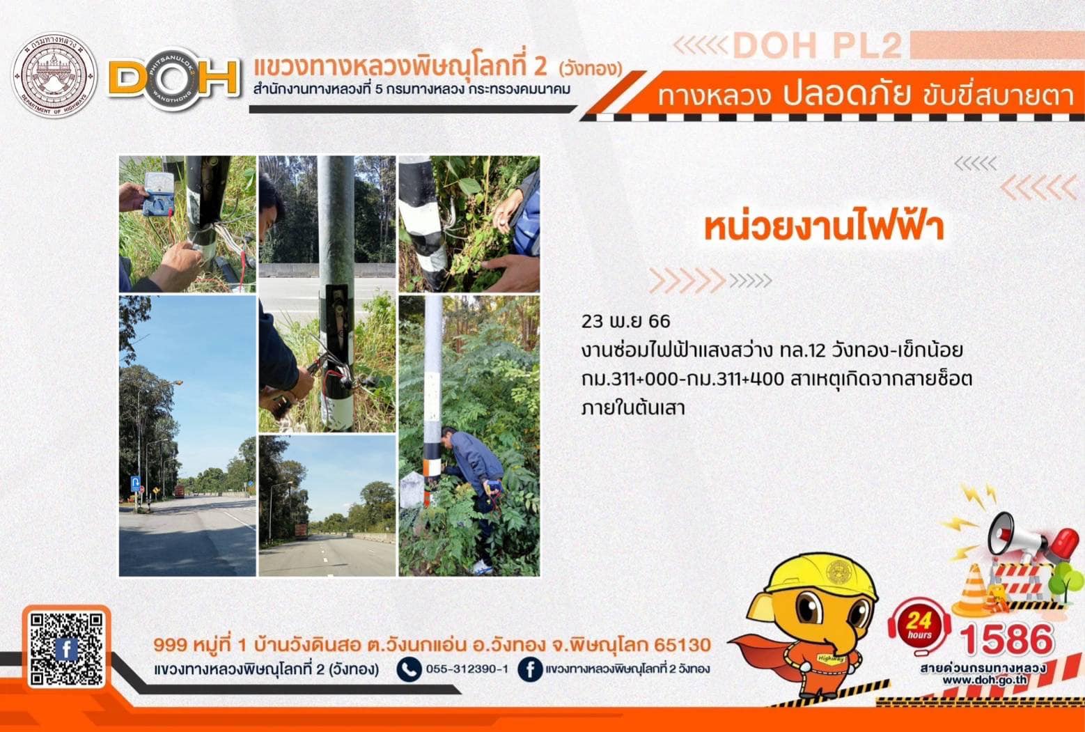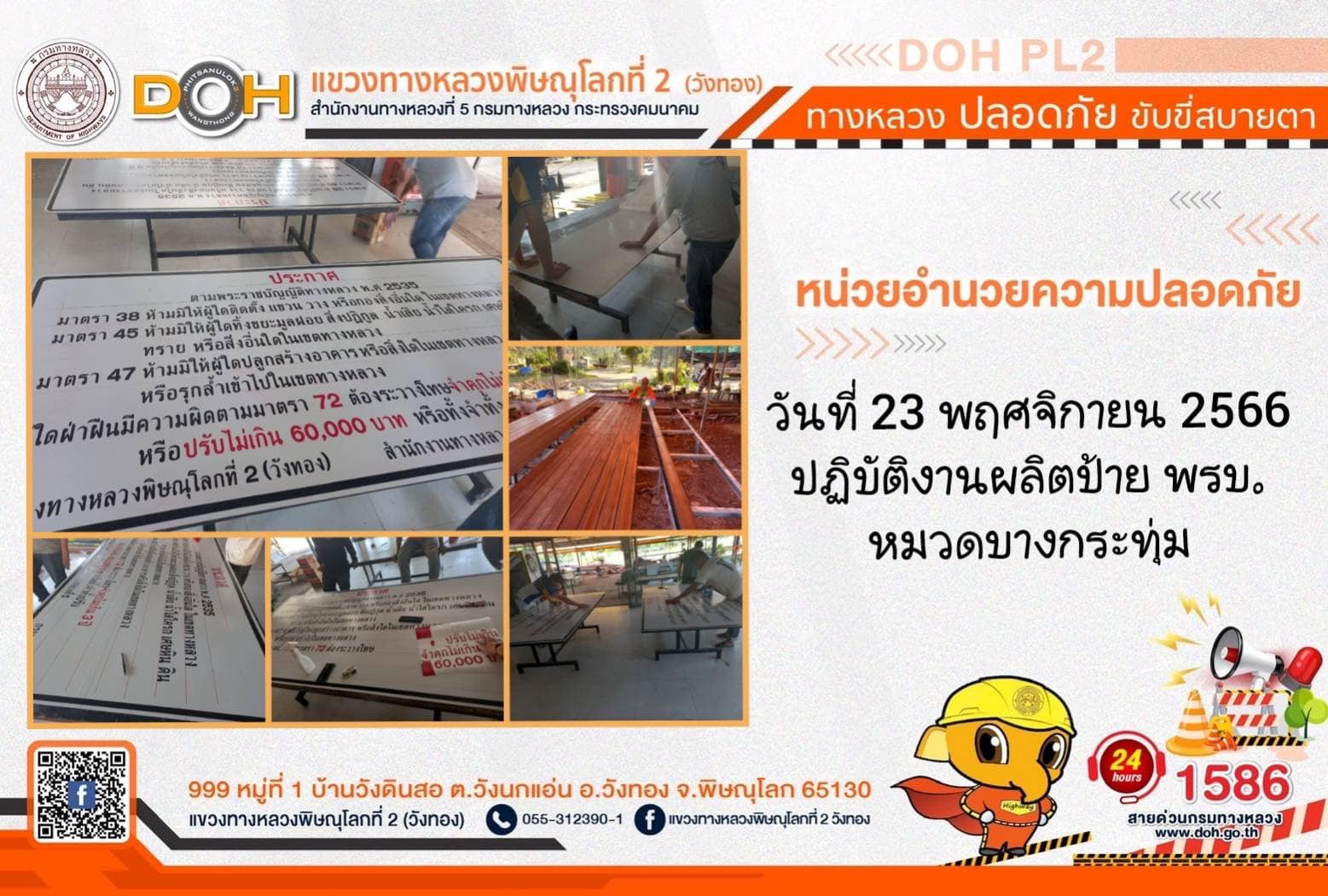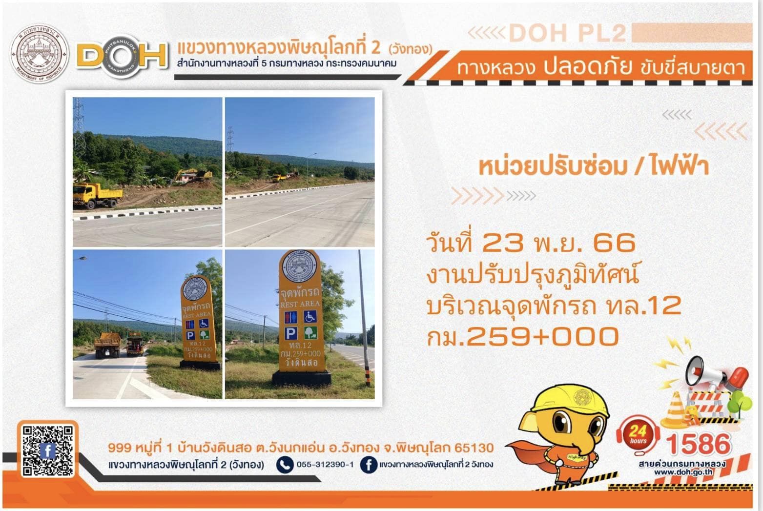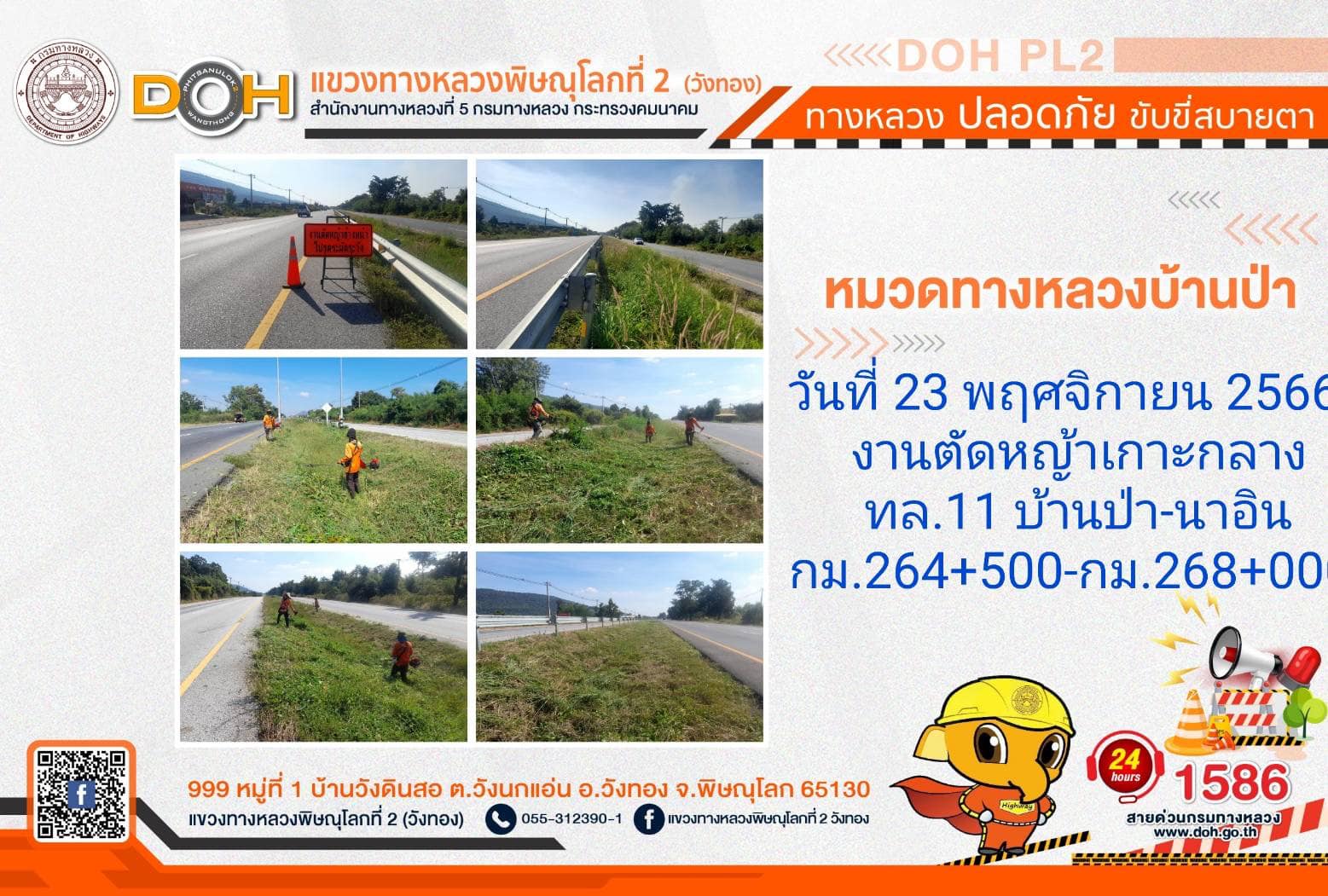 การปฏิบัติงานของ หมวดทางหลวง และ หน่วยงานในสังกัด เพื่ออำนวยความสะดวก และปลอดภัยให้กับประชาชนผู้ใช้เส้นทาง ประจำ วันพฤหัสบดีที่ 23 พฤศจิกายน 2566