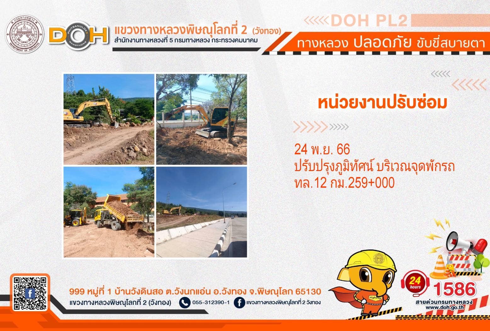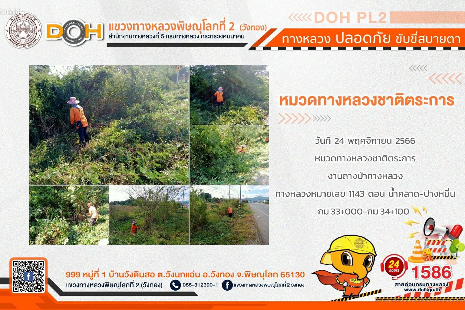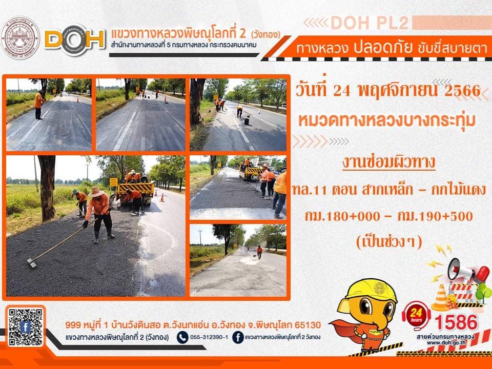 การปฏิบัติงานของ หมวดทางหลวง และ หน่วยงานในสังกัด เพื่ออำนวยความสะดวก และปลอดภัยให้กับประชาชนผู้ใช้เส้นทาง ประจำ วันศุกร์ที่ 24 พฤศจิกายน 2566
