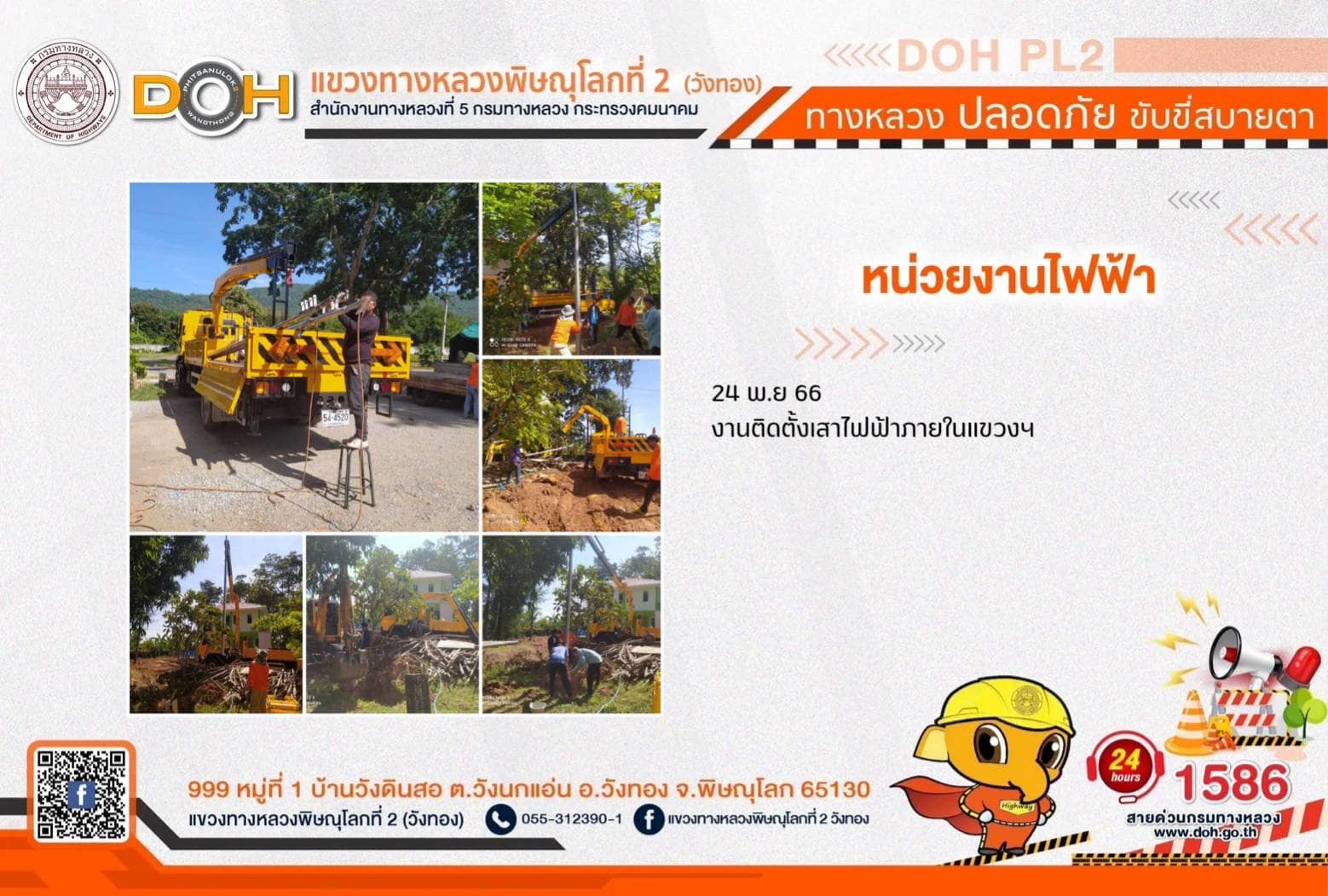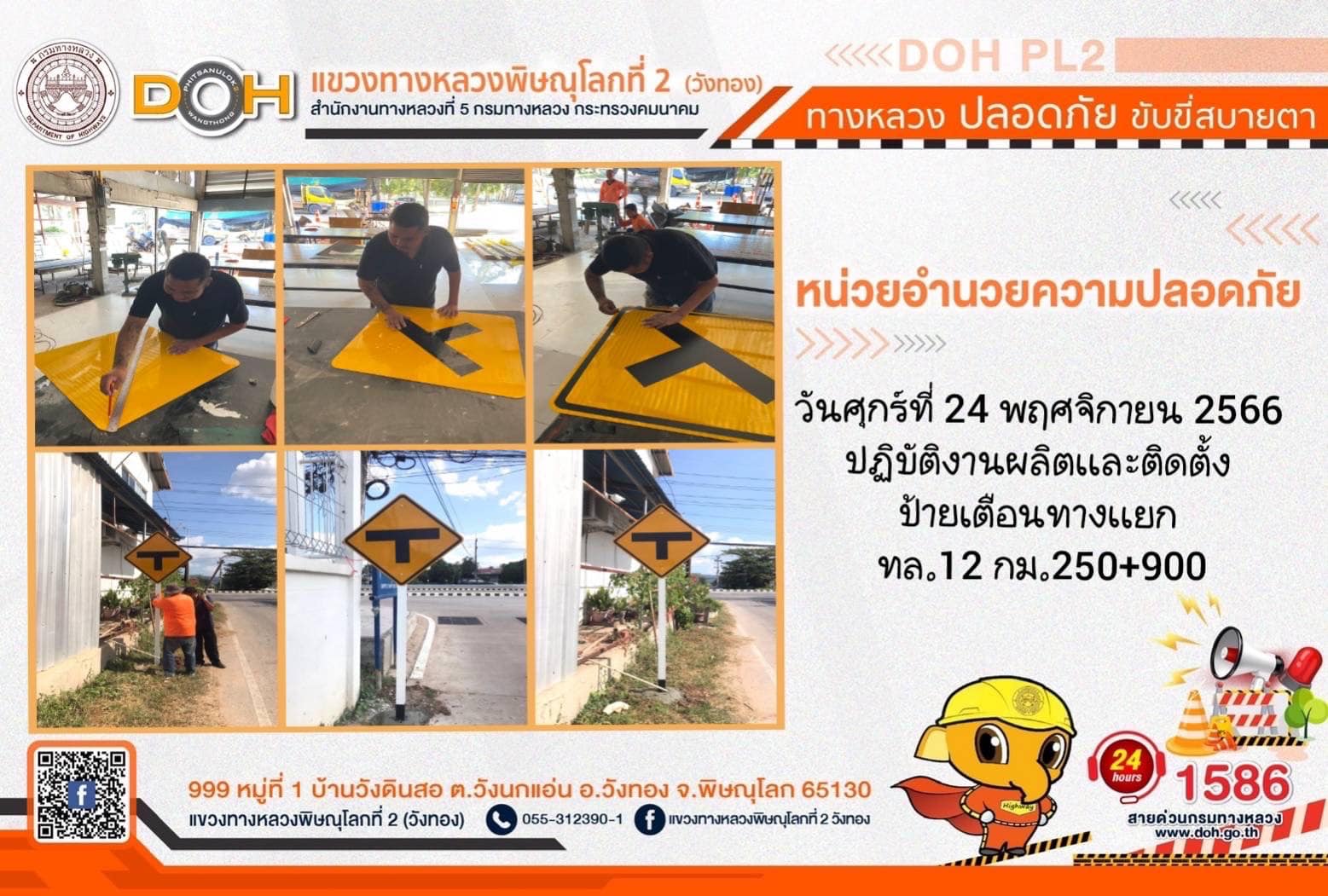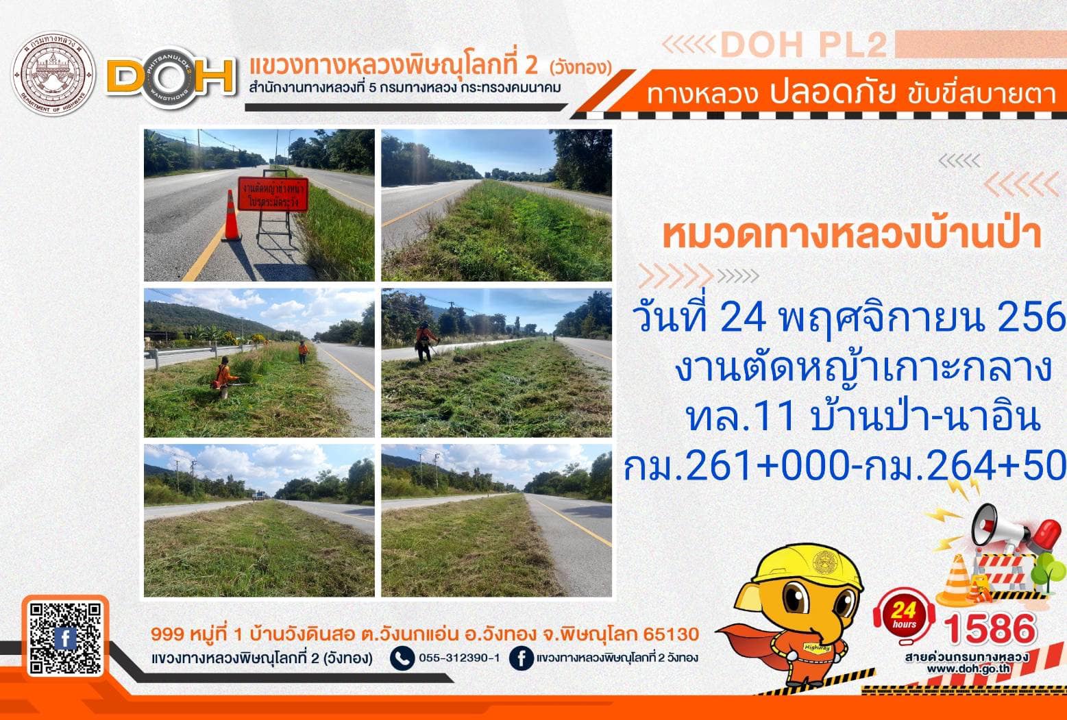 การปฏิบัติงานของ หมวดทางหลวง และ หน่วยงานในสังกัด เพื่ออำนวยความสะดวก และปลอดภัยให้กับประชาชนผู้ใช้เส้นทาง ประจำ วันศุกร์ที่ 24 พฤศจิกายน 2566