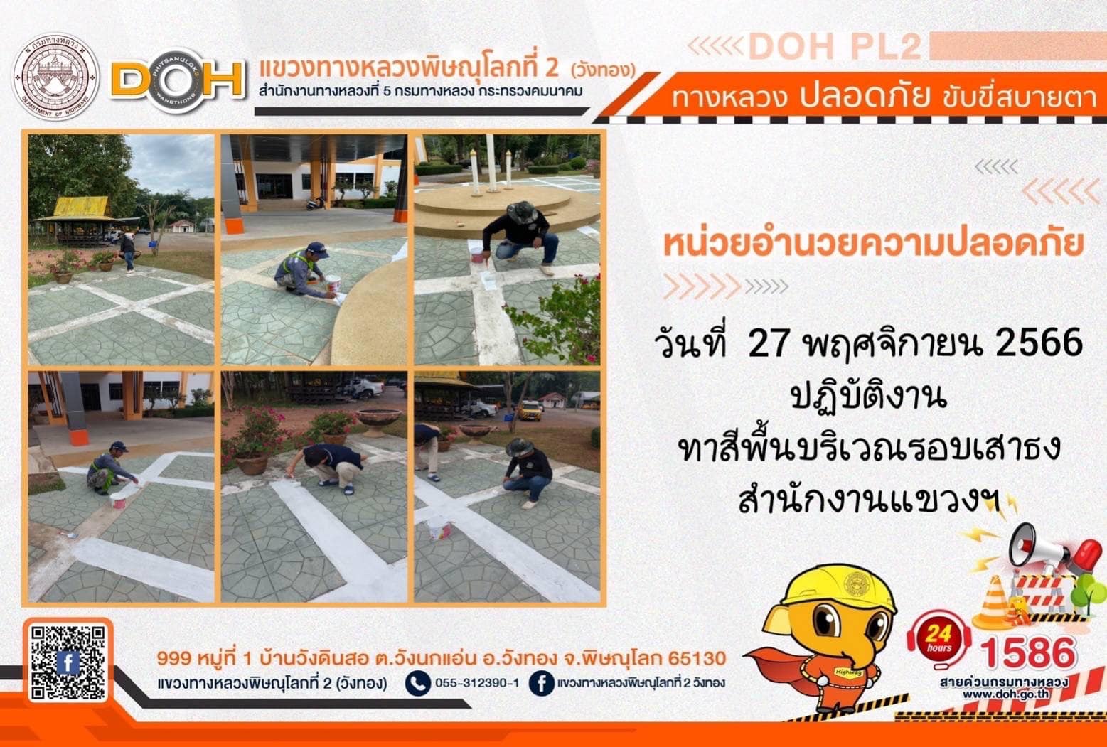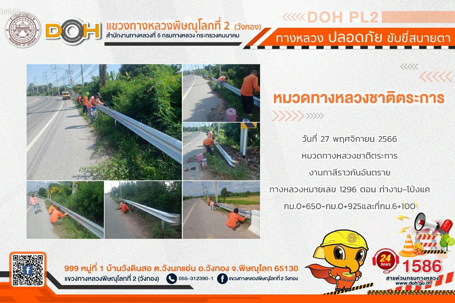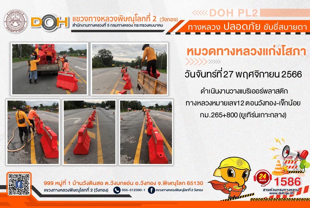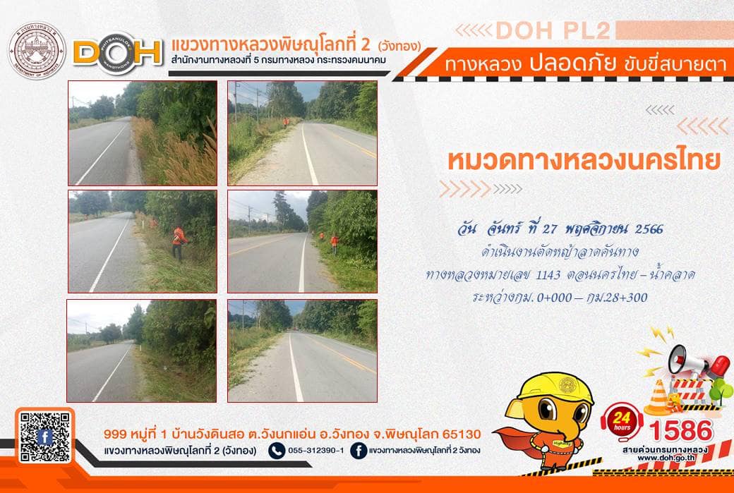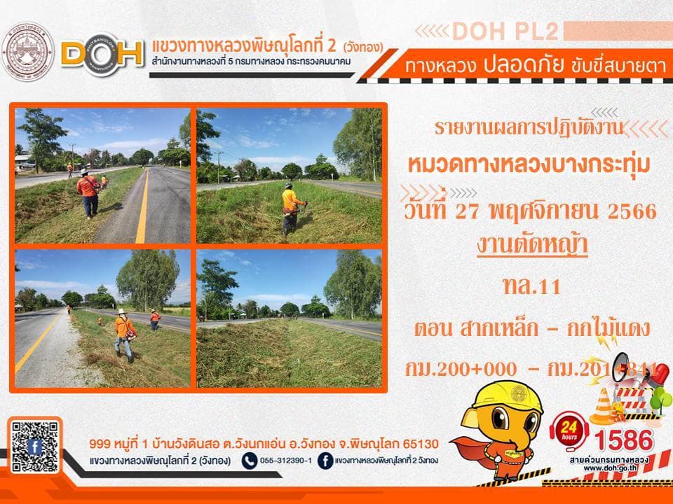 การปฏิบัติงานของ หมวดทางหลวง และ หน่วยงานในสังกัด เพื่ออำนวยความสะดวก และปลอดภัยให้กับประชาชนผู้ใช้เส้นทาง ประจำ วันจันทร์ที่ 27 พฤศจิกายน 2566