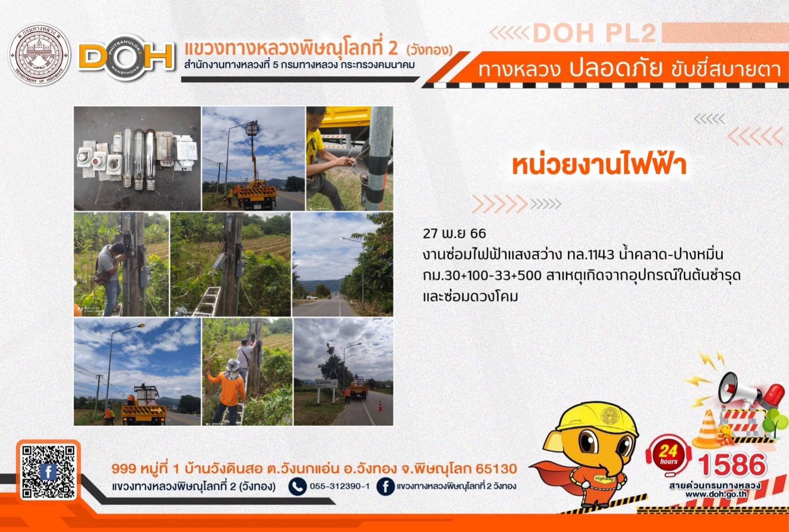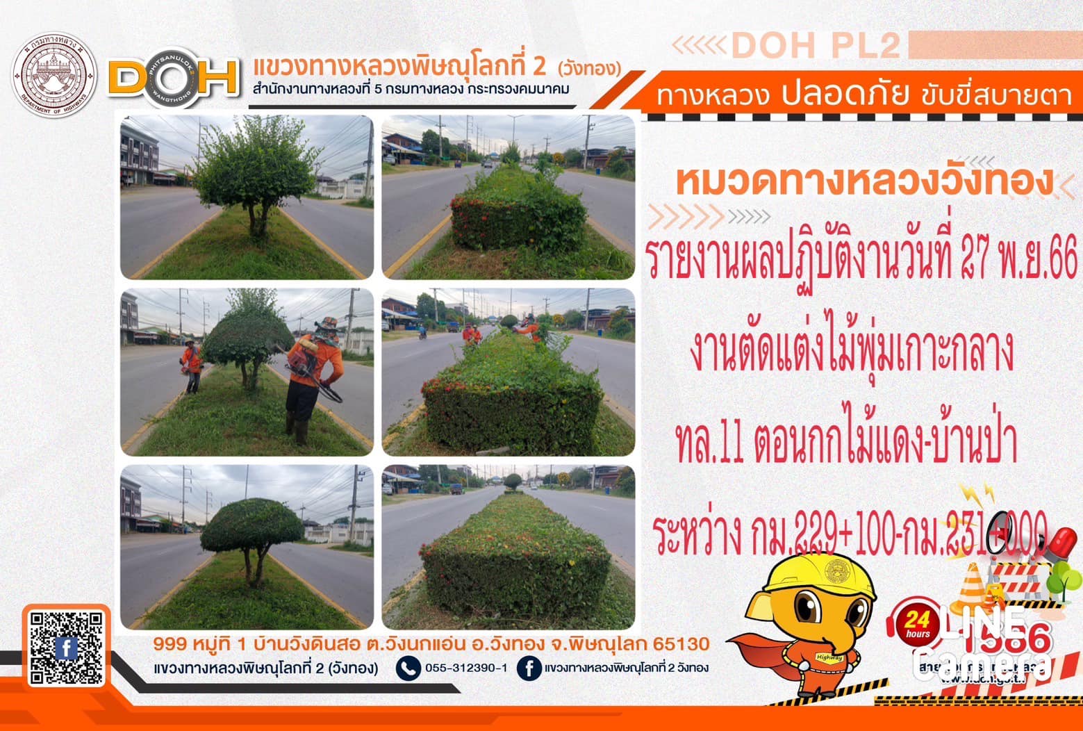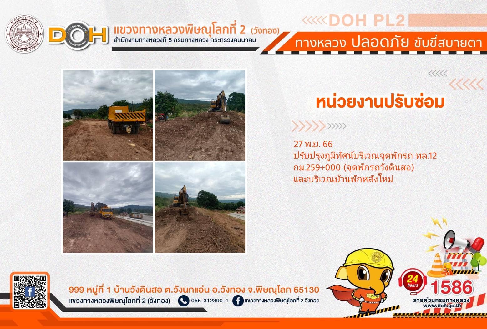 การปฏิบัติงานของ หมวดทางหลวง และ หน่วยงานในสังกัด เพื่ออำนวยความสะดวก และปลอดภัยให้กับประชาชนผู้ใช้เส้นทาง ประจำ วันจันทร์ที่ 27 พฤศจิกายน 2566