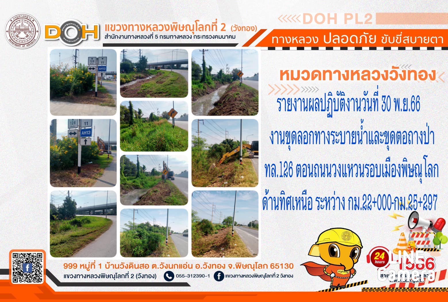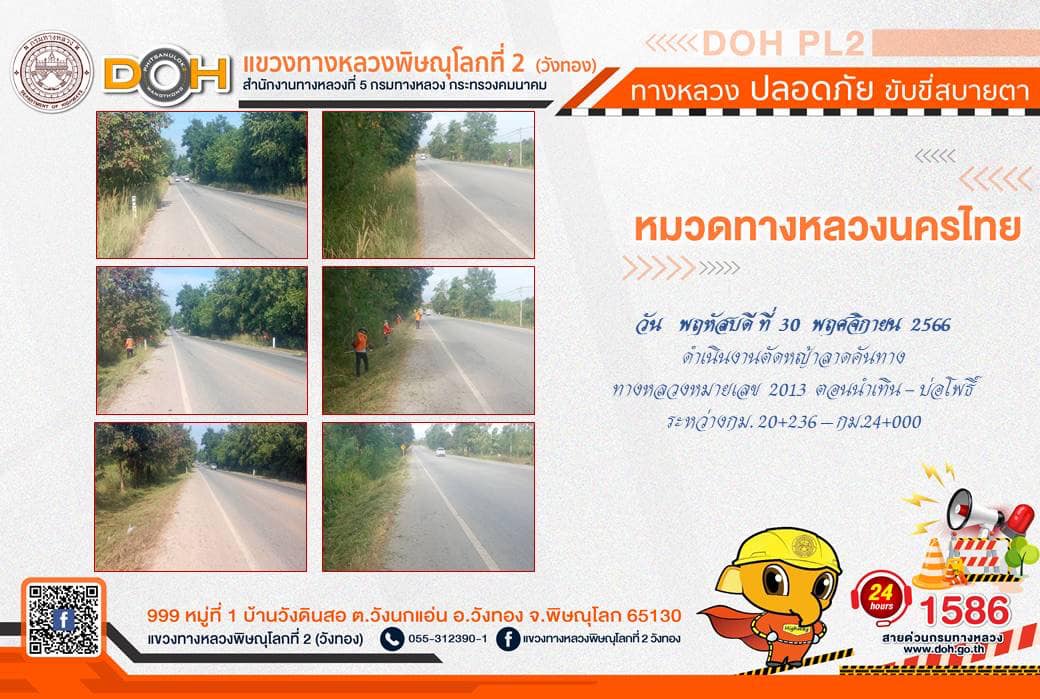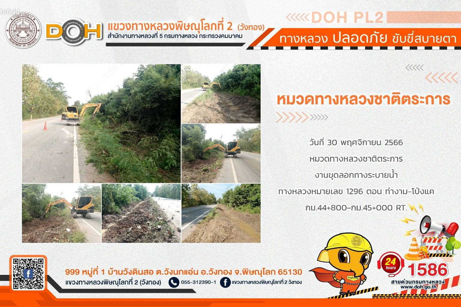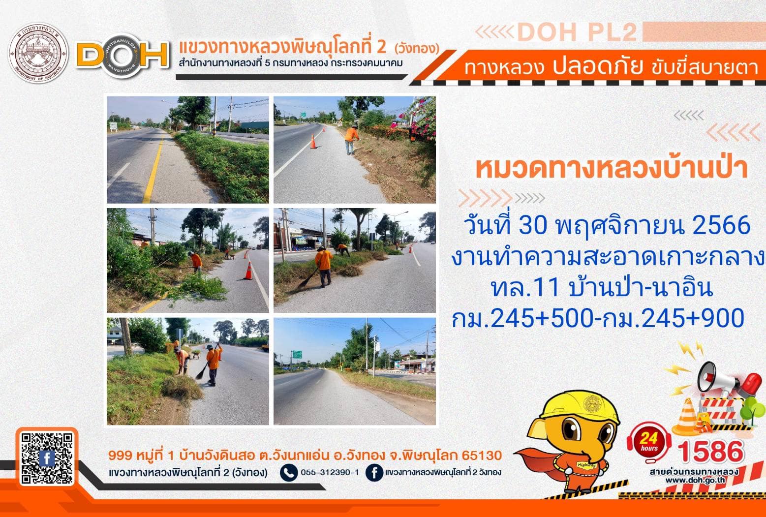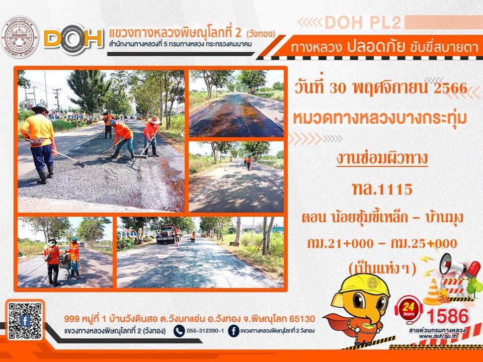 การปฏิบัติงานของ หมวดทางหลวง และ หน่วยงานในสังกัด เพื่ออำนวยความสะดวก และปลอดภัยให้กับประชาชนผู้ใช้เส้นทาง ประจำ วันพฤหัสบดีที่ 30 พฤศจิกายน 2566
