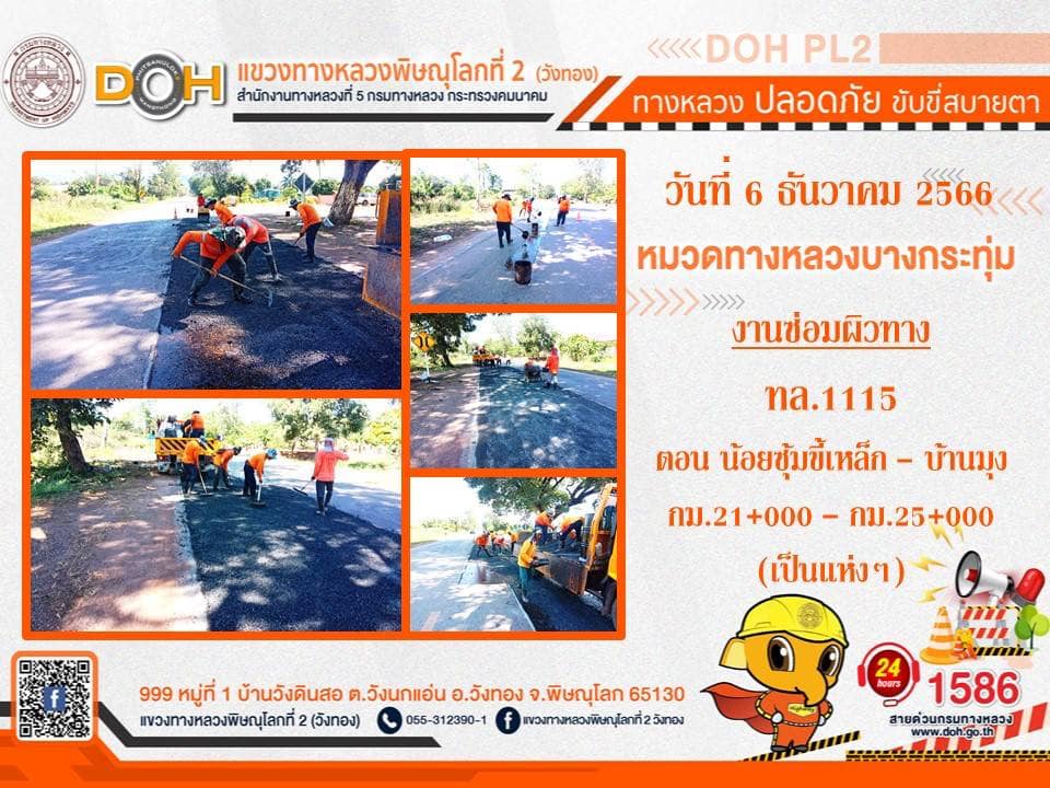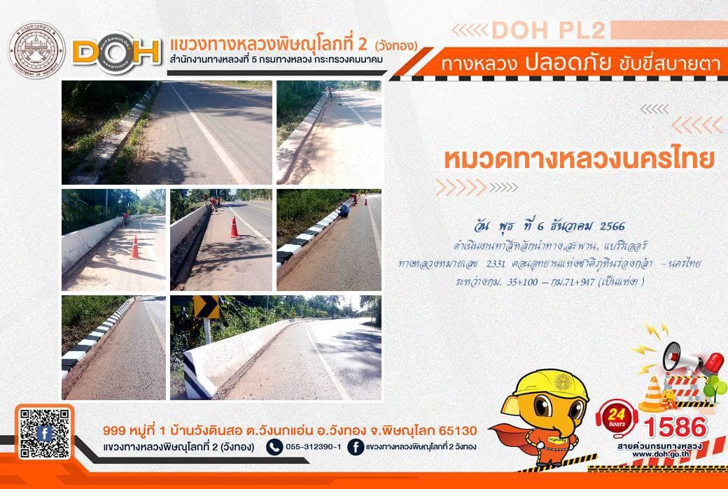 การปฏิบัติงานของ หมวดทางหลวง และ หน่วยงานในสังกัด เพื่ออำนวยความสะดวก และปลอดภัยให้กับประชาชนผู้ใช้เส้นทาง ประจำ วันพุธที่ 6 ธันวาคม 2566