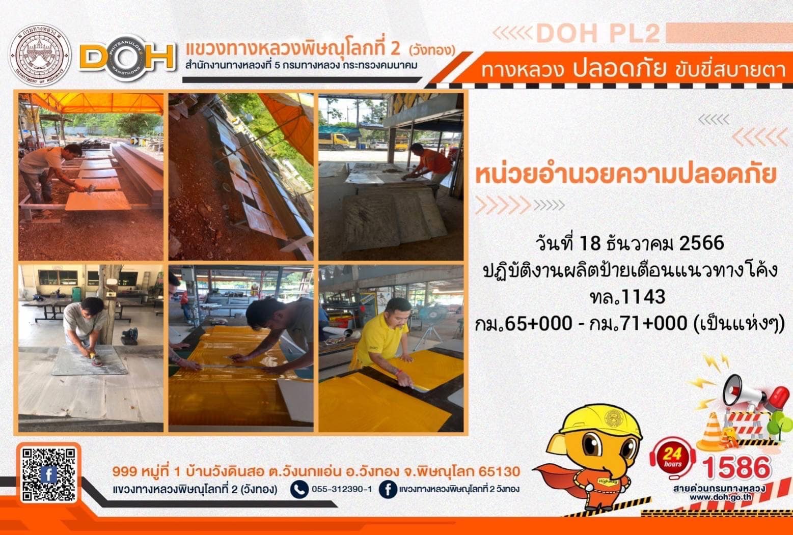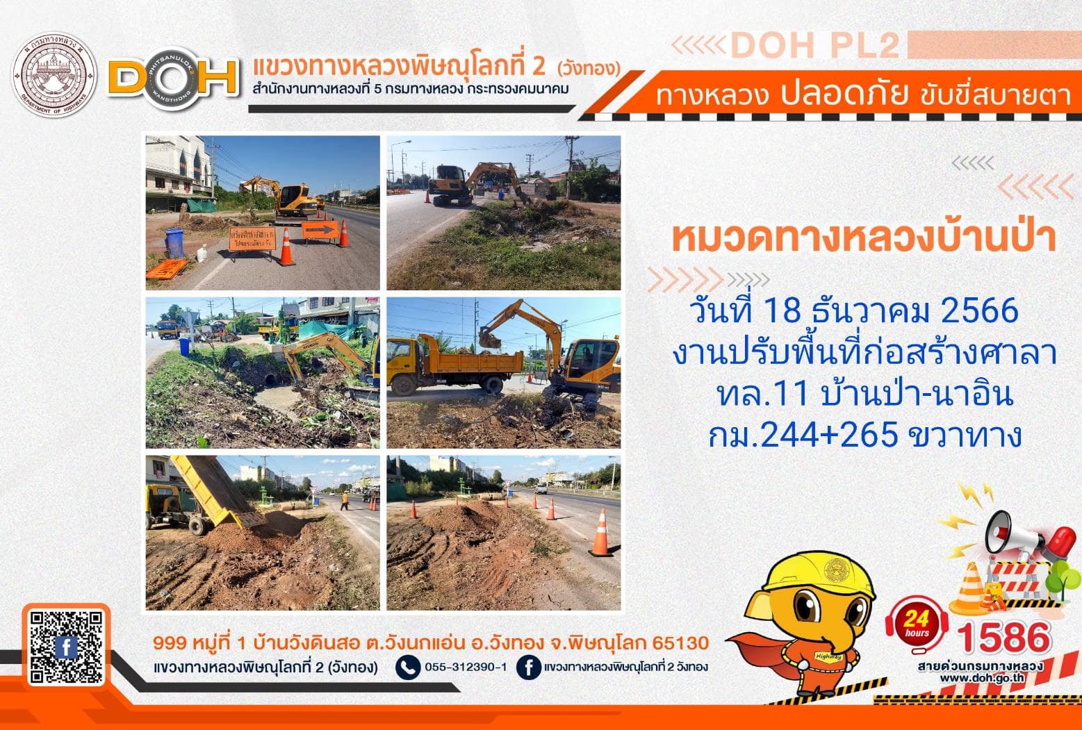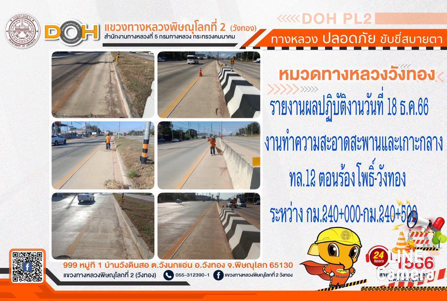การปฏิบัติงานของ หมวดทางหลวง และ หน่วยงานในสังกัด เพื่ออำนวยความสะดวก และปลอดภัยให้กับประชาชนผู้ใช้เส้นทาง ประจำ วันจันทร์ที่ 18 ธันวาคม 2566
